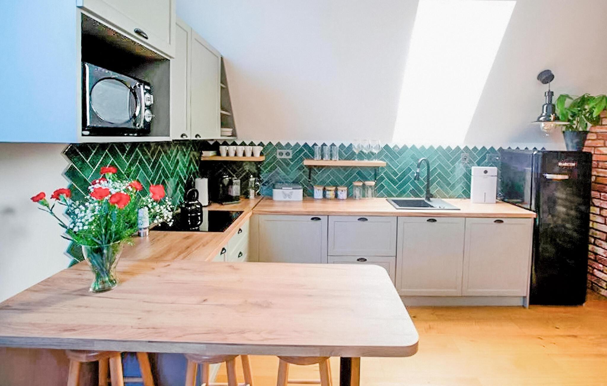 Willkommen in dieser stilvollen und schönen Ferienwohnung, die in einem charmanten Holzhaus untergebracht ist. Die moderne und ausgewählte Einrichtung sorgt dafür, dass Sie sich sofort wohlfühlen. Genießen Sie entspannte Stunden auf dem Sofa sowie beim gemeinsamen Kochen oder verweilen Sie auf der gemeinsamen Terrasse im familienfreundlichen Garten. Während Sie sich zurücklehnen, können Ihre Kinder im Garten Fußball spielen und die Natur genießen – ein perfekter Ort für Erholung und Familienzeit.