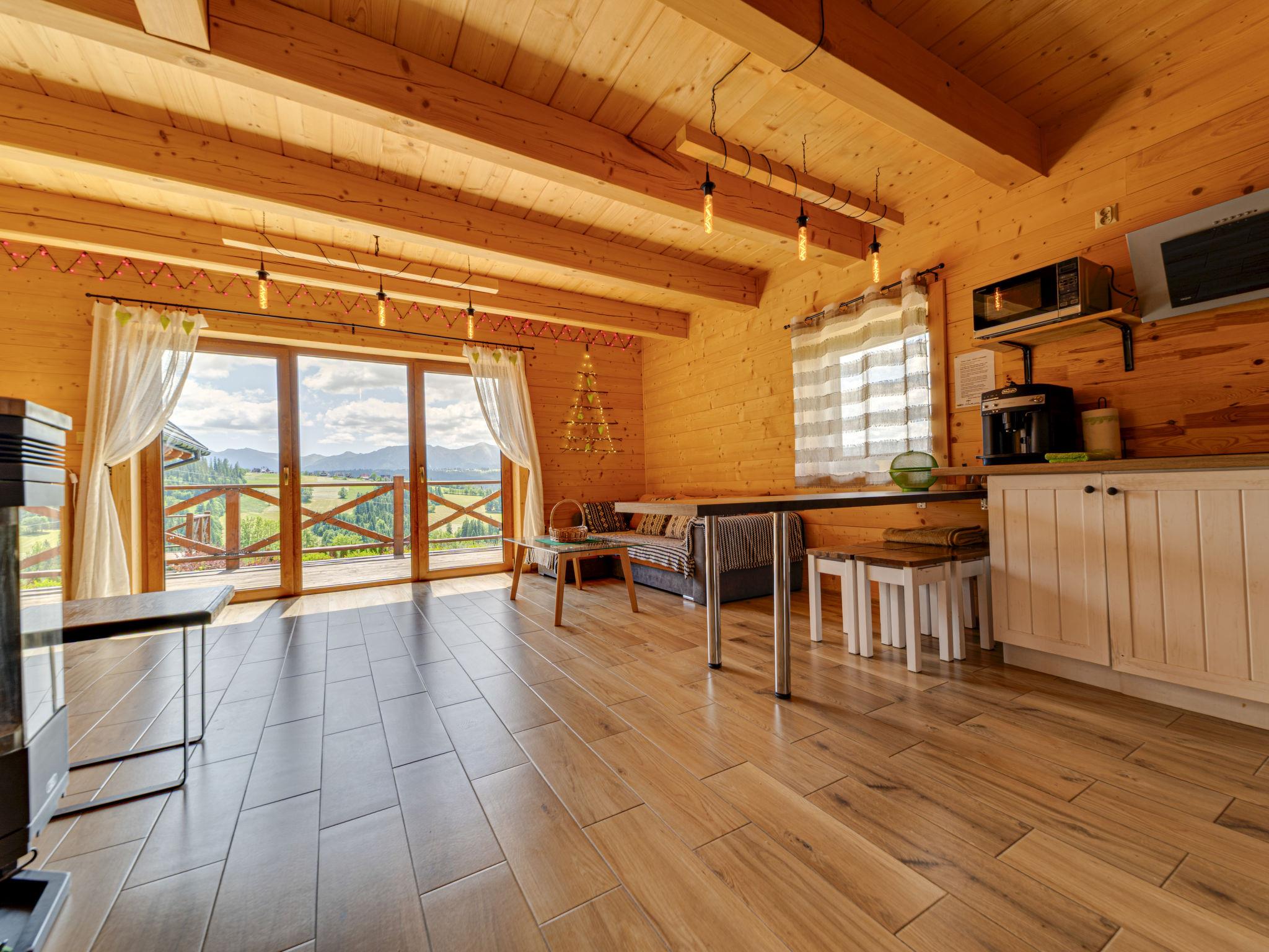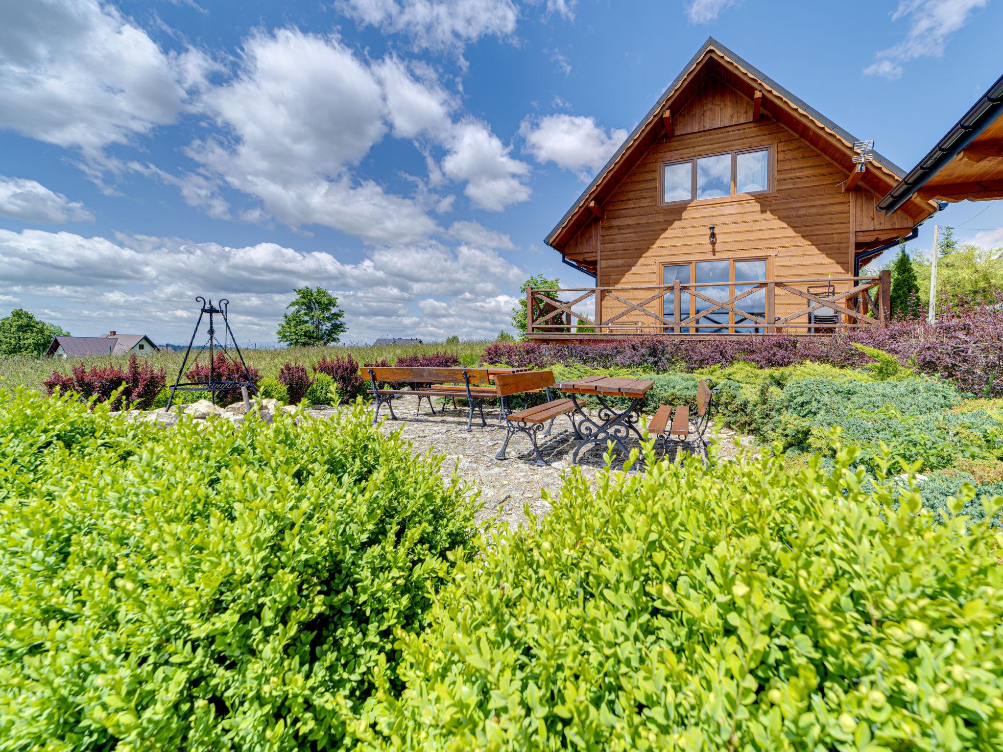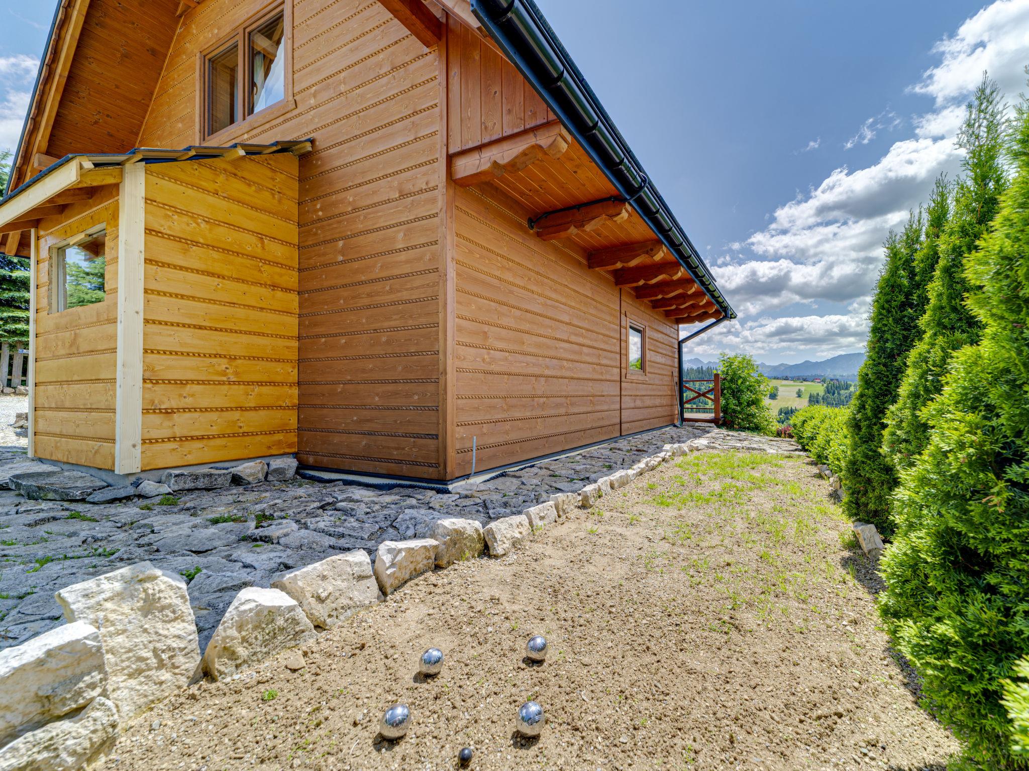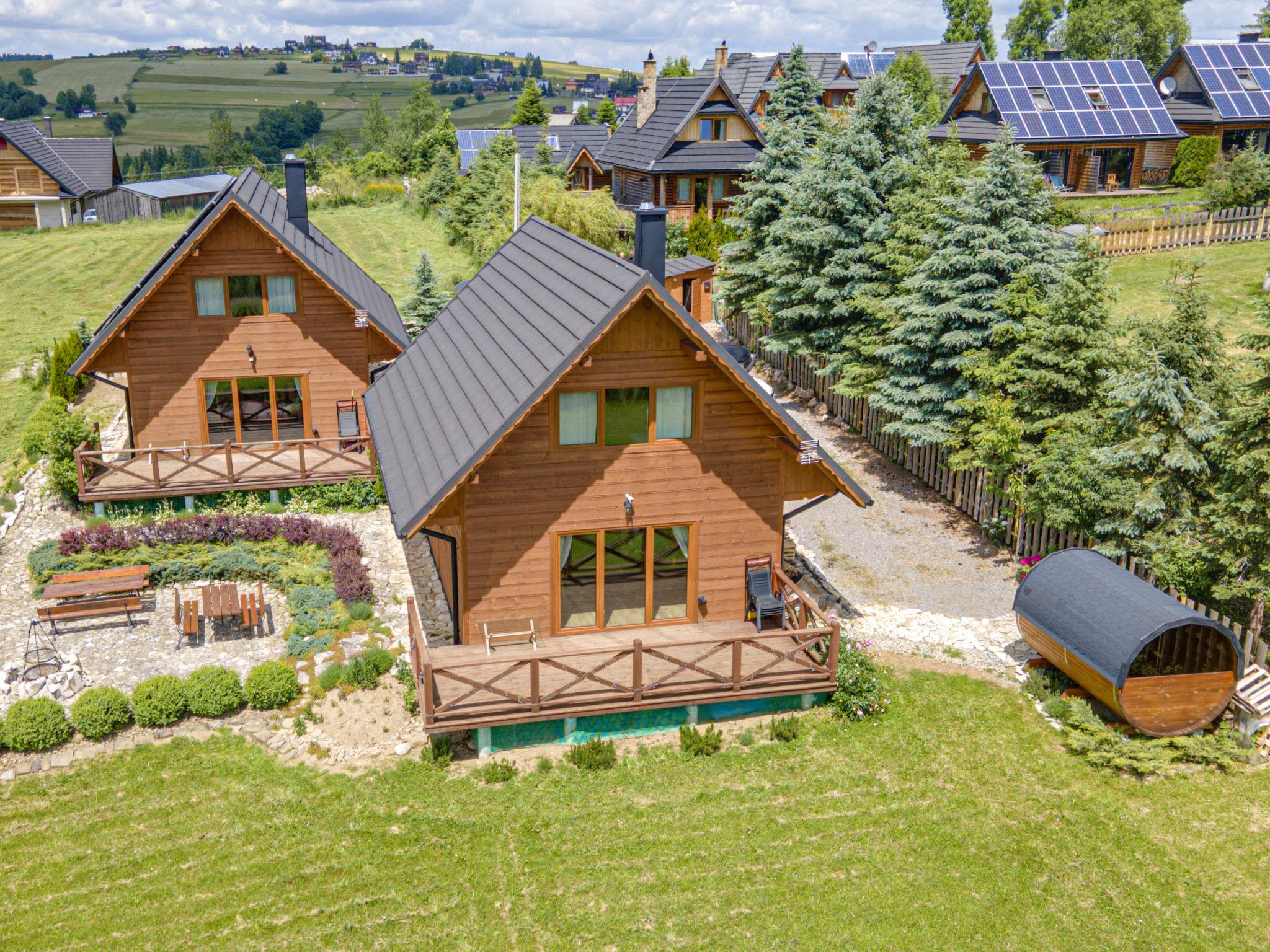 Gemütliches, komfortables Chalet, Baujahr 2020. 2 Häuser im Ferienresort. Am Ortsrand, sonnige, erhöhte Lage, im Grünen. Zur Mitbenutzung: Grundstück, Wiese. Grill. Im Hause: Wireless LAN, Sauna, Waschmaschine, Wäschetrockner. Parkplatz beim Haus. Lebensmittelgeschäft 300 m, Supermarkt 2.5 km, Restaurant 1 km, Bushaltestelle 300 m, Bahnstation 5 km, Hallenbad 1.5 km, Strandbad 8 km. Reitstall 3 km. Nahe gelegene Sehenswürdigkeiten: Szlak Rowerowy Wokól Tatr, Suche 6 km, Zakopane 12 km. Bekannte Skigebiete sind gut erreichbar: Czerwienne SKI 2.5 km, Zab 3 km, Harenda 5.5 km. Bitte beachten: In dieser Anlage zusätzlich mietbar: 2 Häuser.