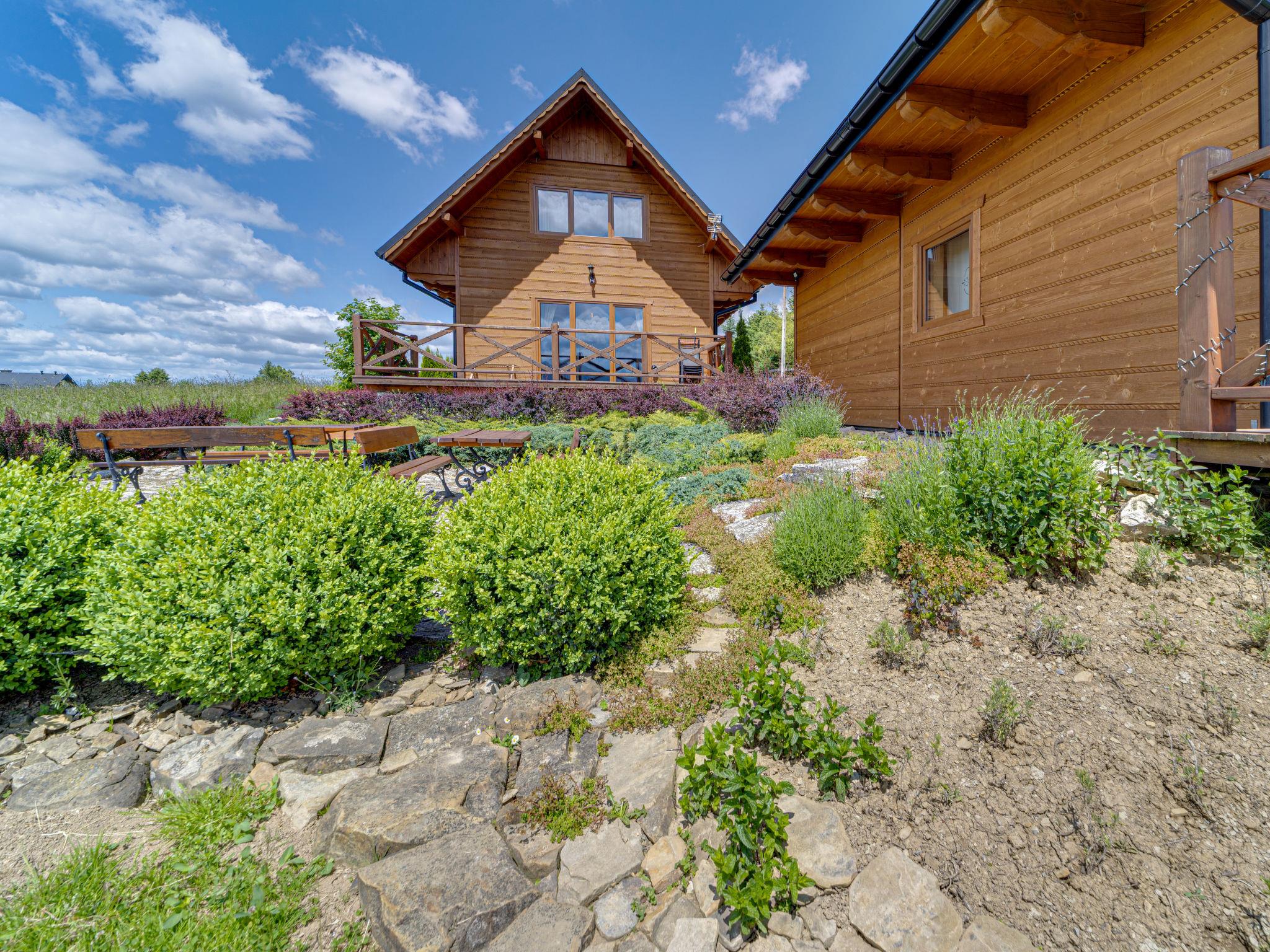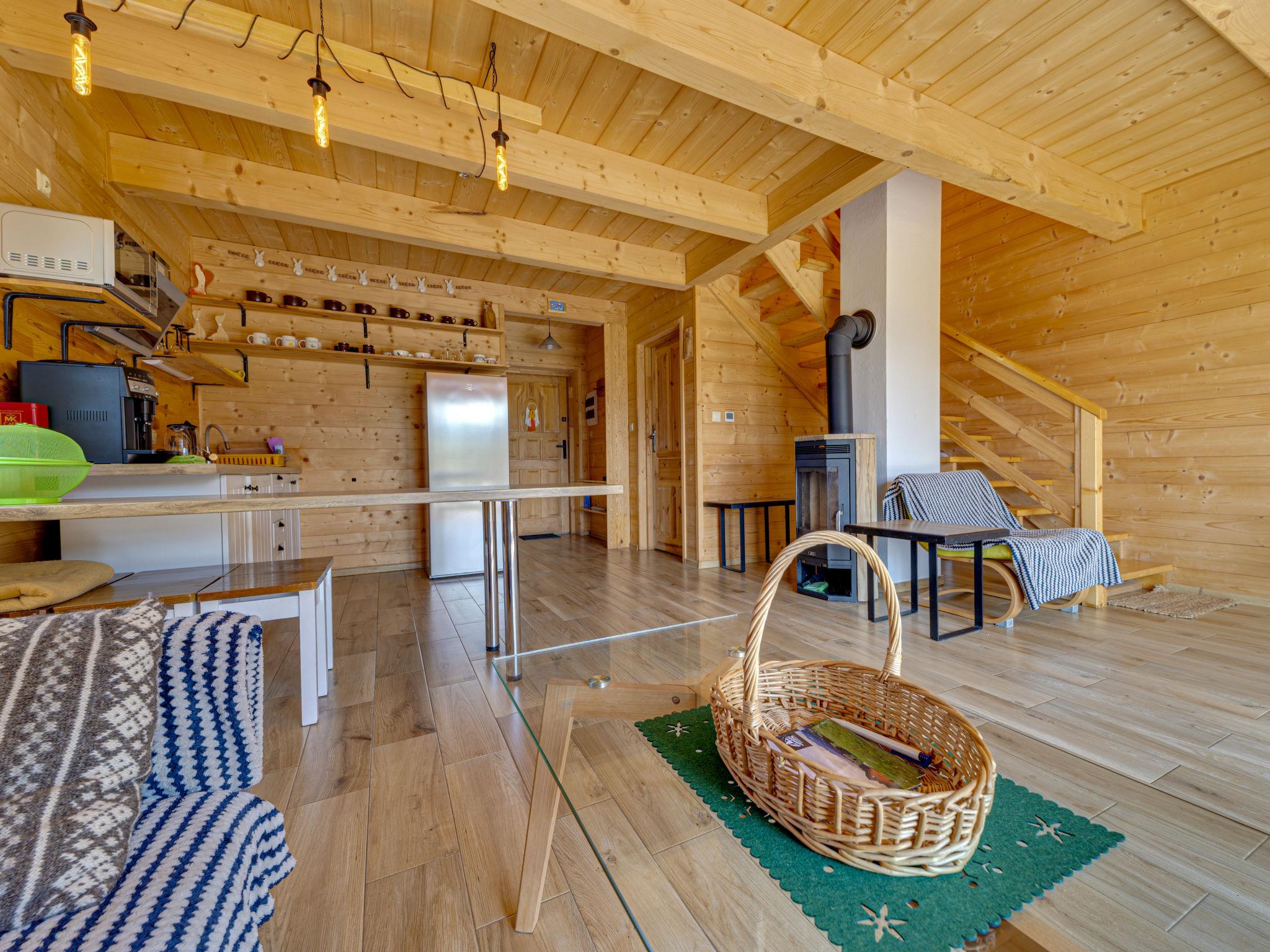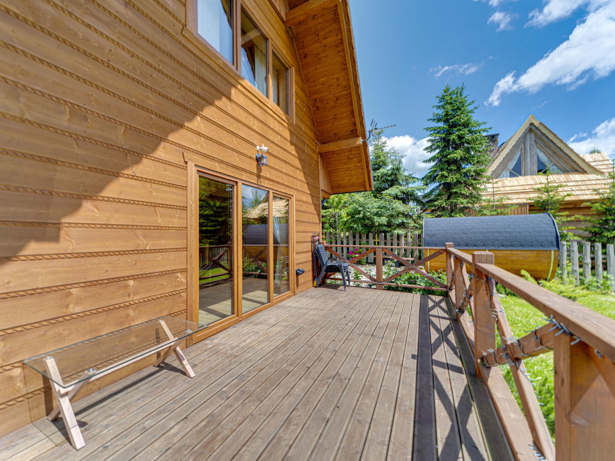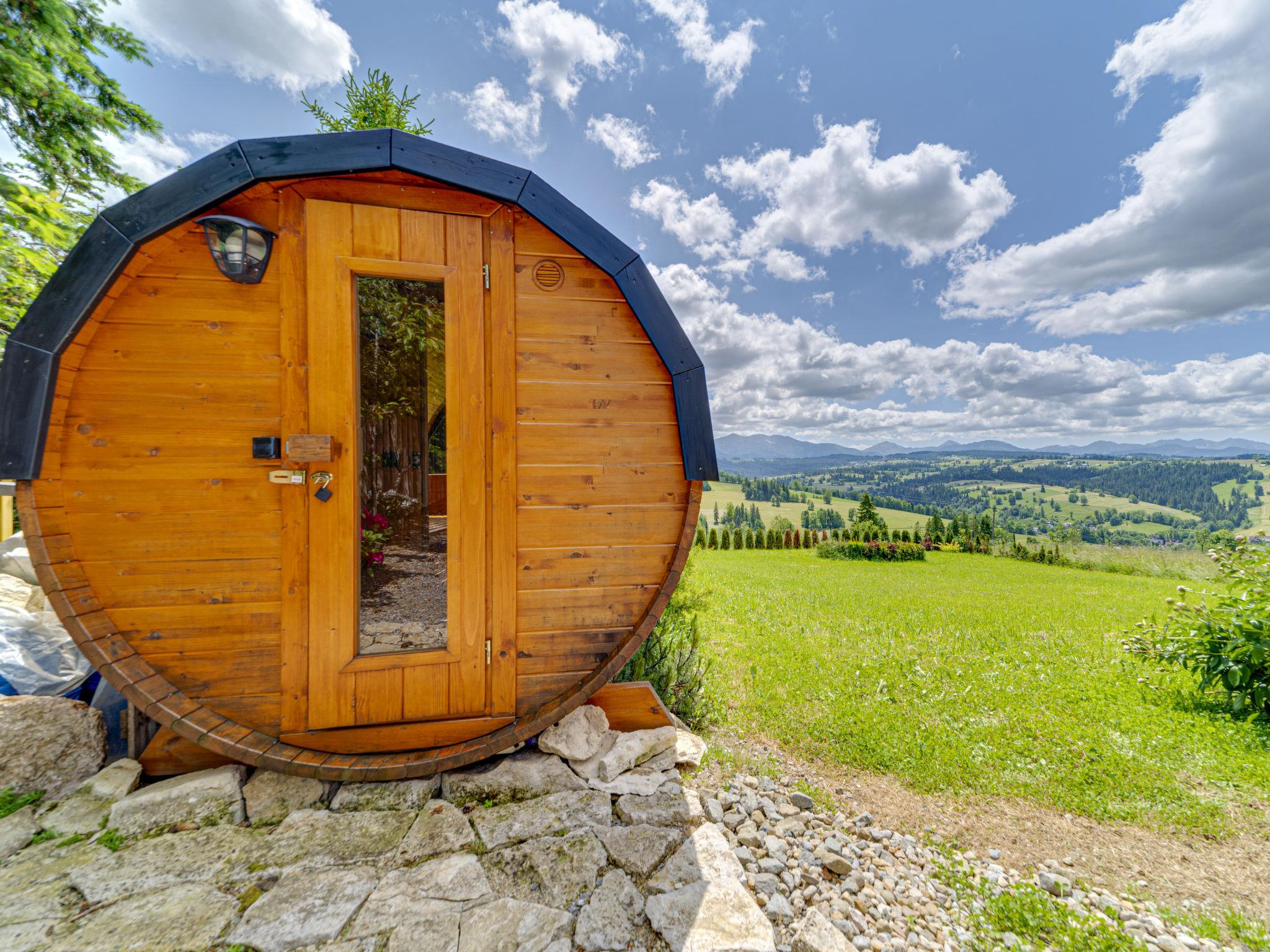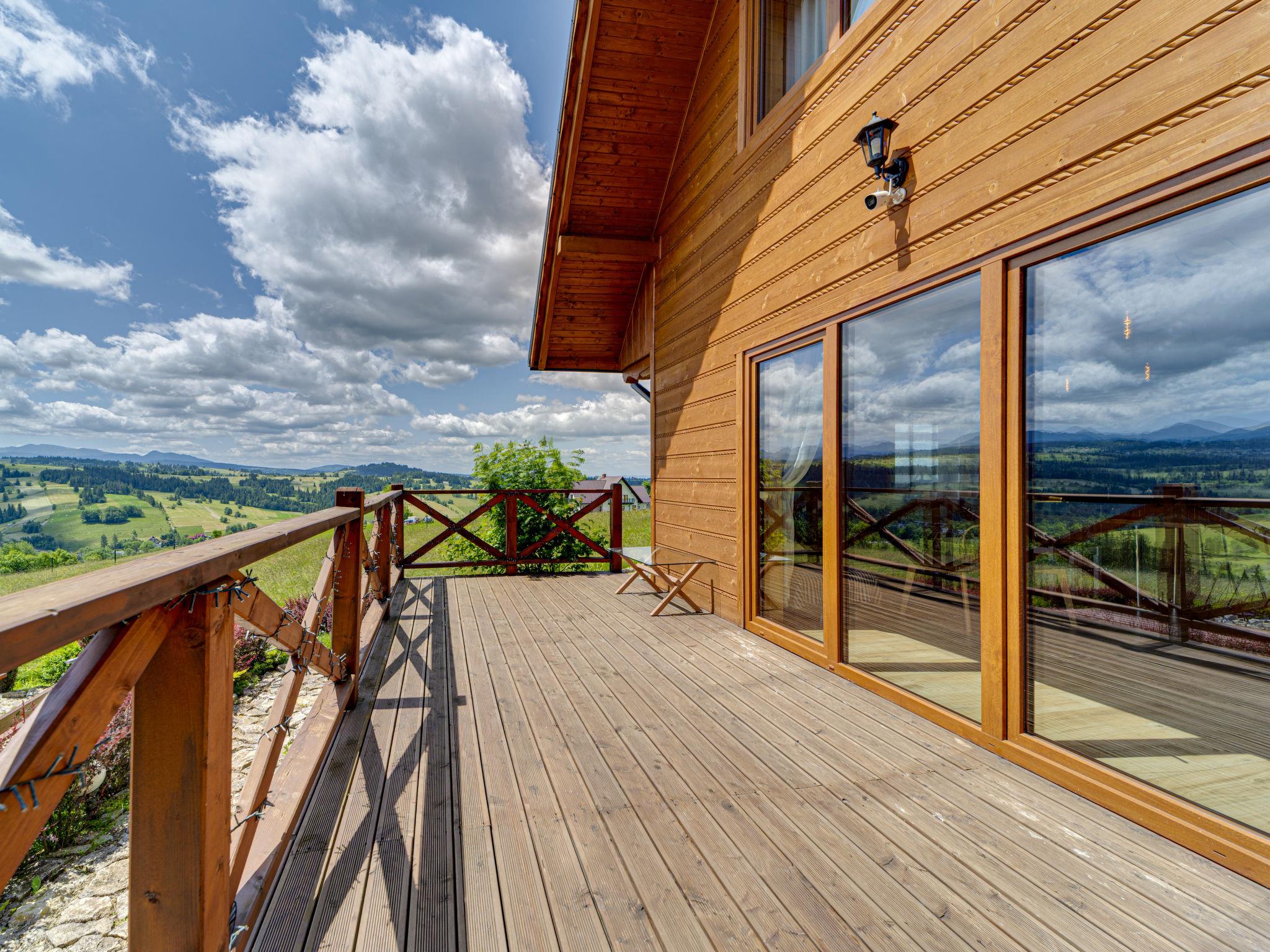Gemütliches, komfortables Chalet, Baujahr 2020. 2 Häuser im Ferienresort. Am Ortsrand, sonnige, erhöhte Lage, im Grünen. Zur Mitbenutzung: Grundstück, Wiese. Grill. Im Hause: Wireless LAN, Sauna, Waschmaschine, Wäschetrockner. Parkplatz beim Haus. Lebensmittelgeschäft 300 m, Supermarkt 2.5 km, Restaurant 1 km, Bushaltestelle 300 m, Bahnstation 5 km, Hallenbad 1.5 km, Strandbad 8 km. Reitstall 3 km. Nahe gelegene Sehenswürdigkeiten: Szlak Rowerowy Wokól Tatr, Suche 6 km, Zakopane 12 km. Bekannte Skigebiete sind gut erreichbar: Czerwienne SKI 2.5 km, Zab 3 km, Harenda 5.5 km. Bitte beachten: In dieser Anlage zusätzlich mietbar: 2 Häuser.