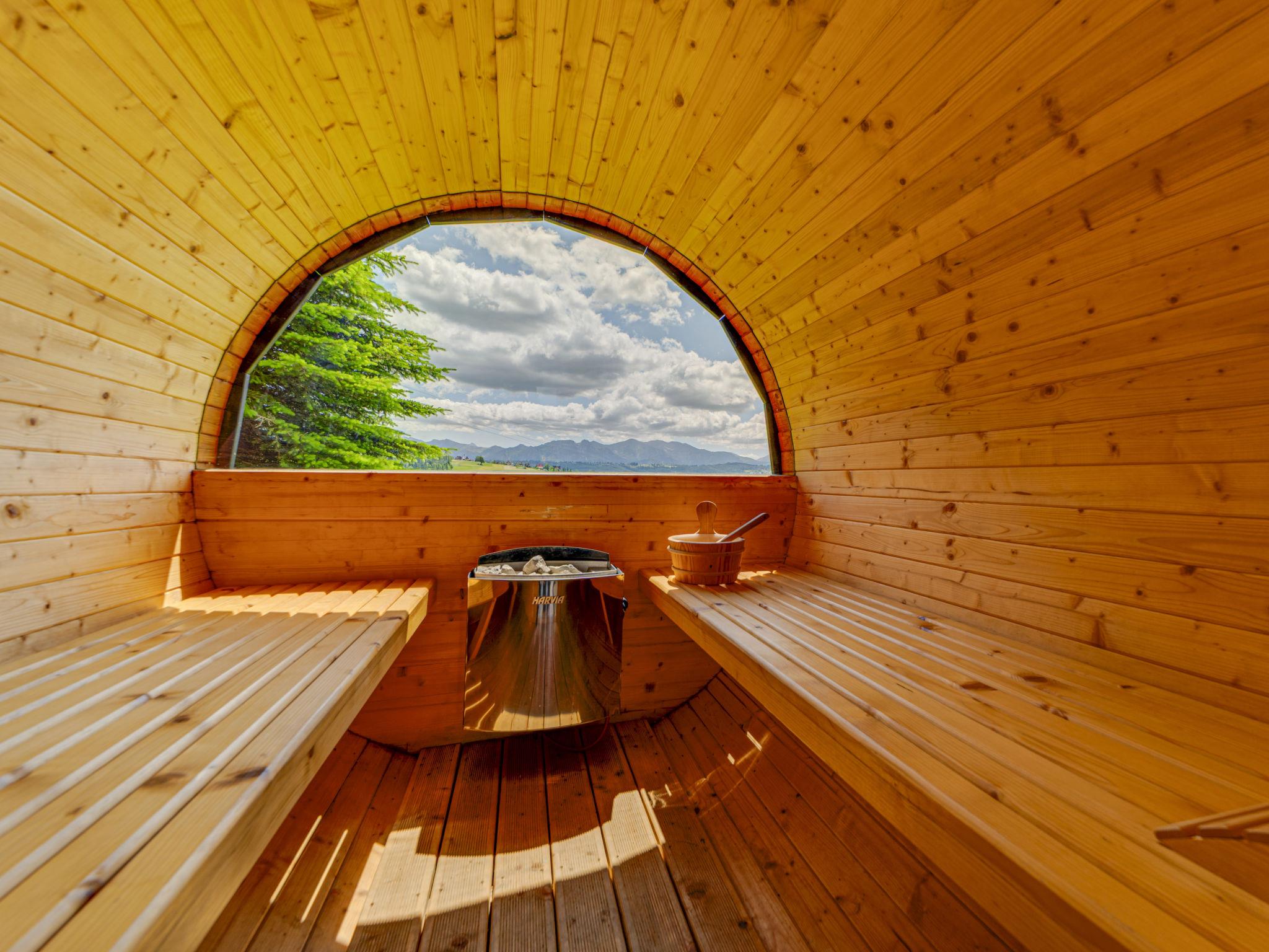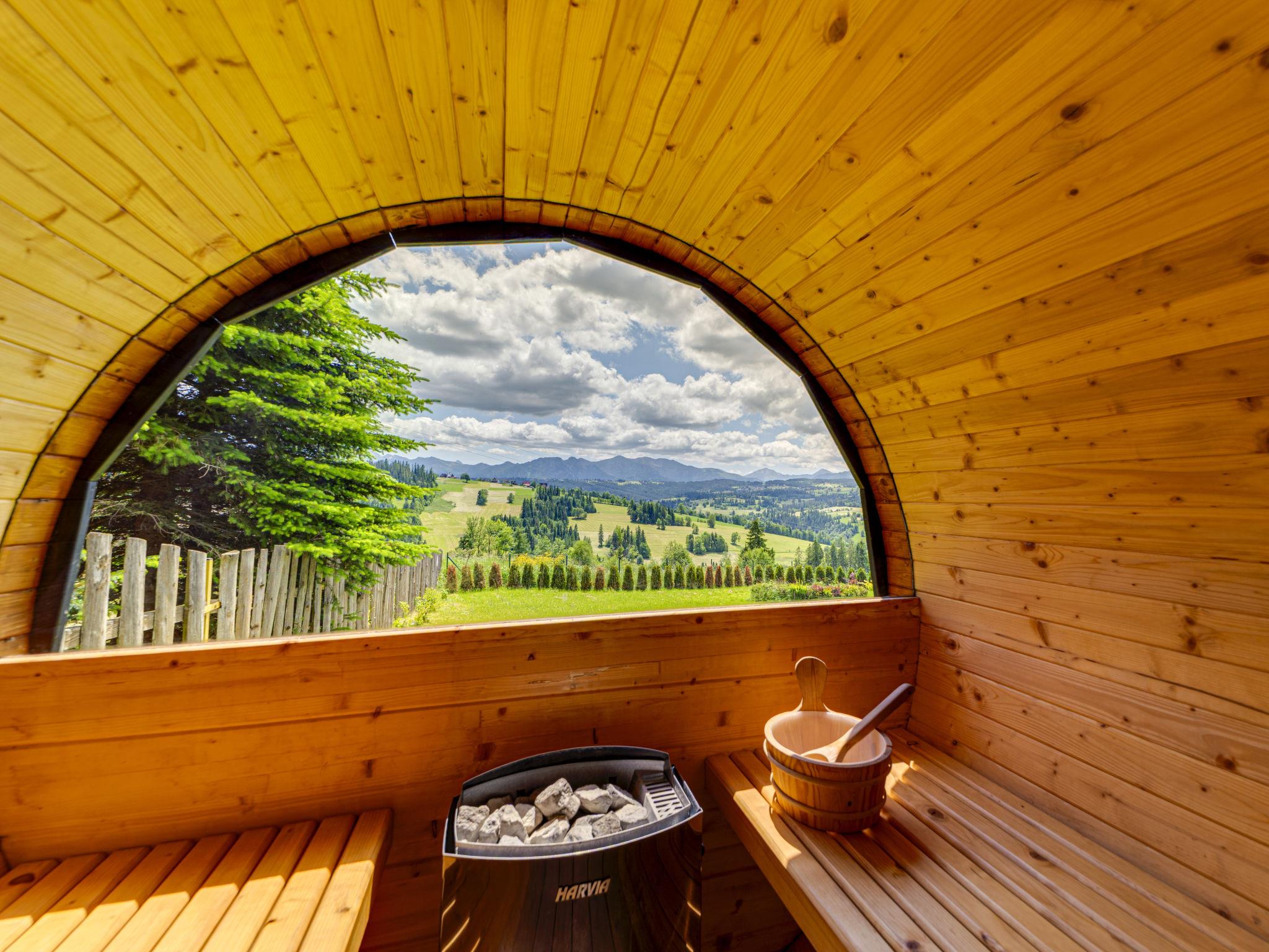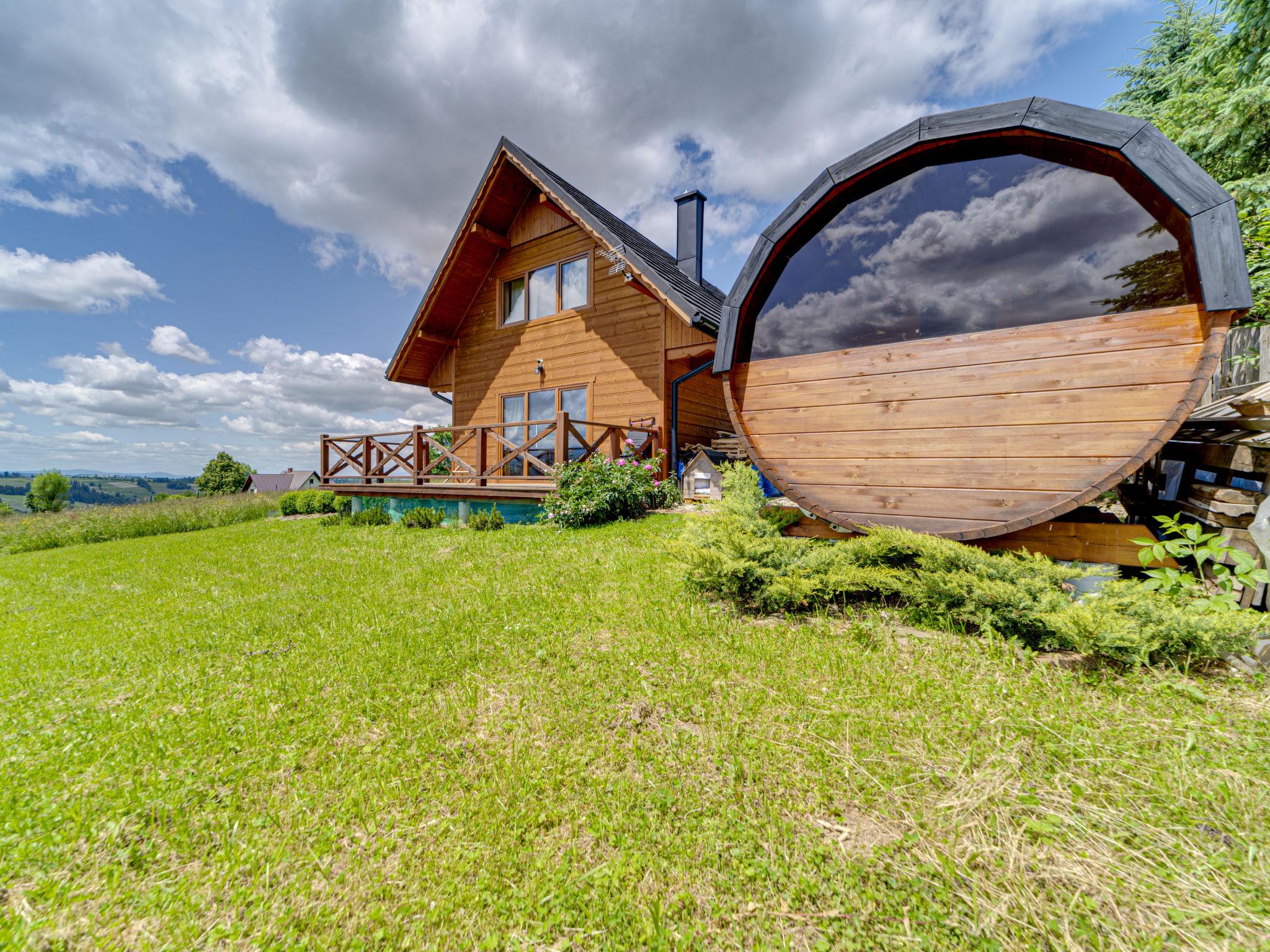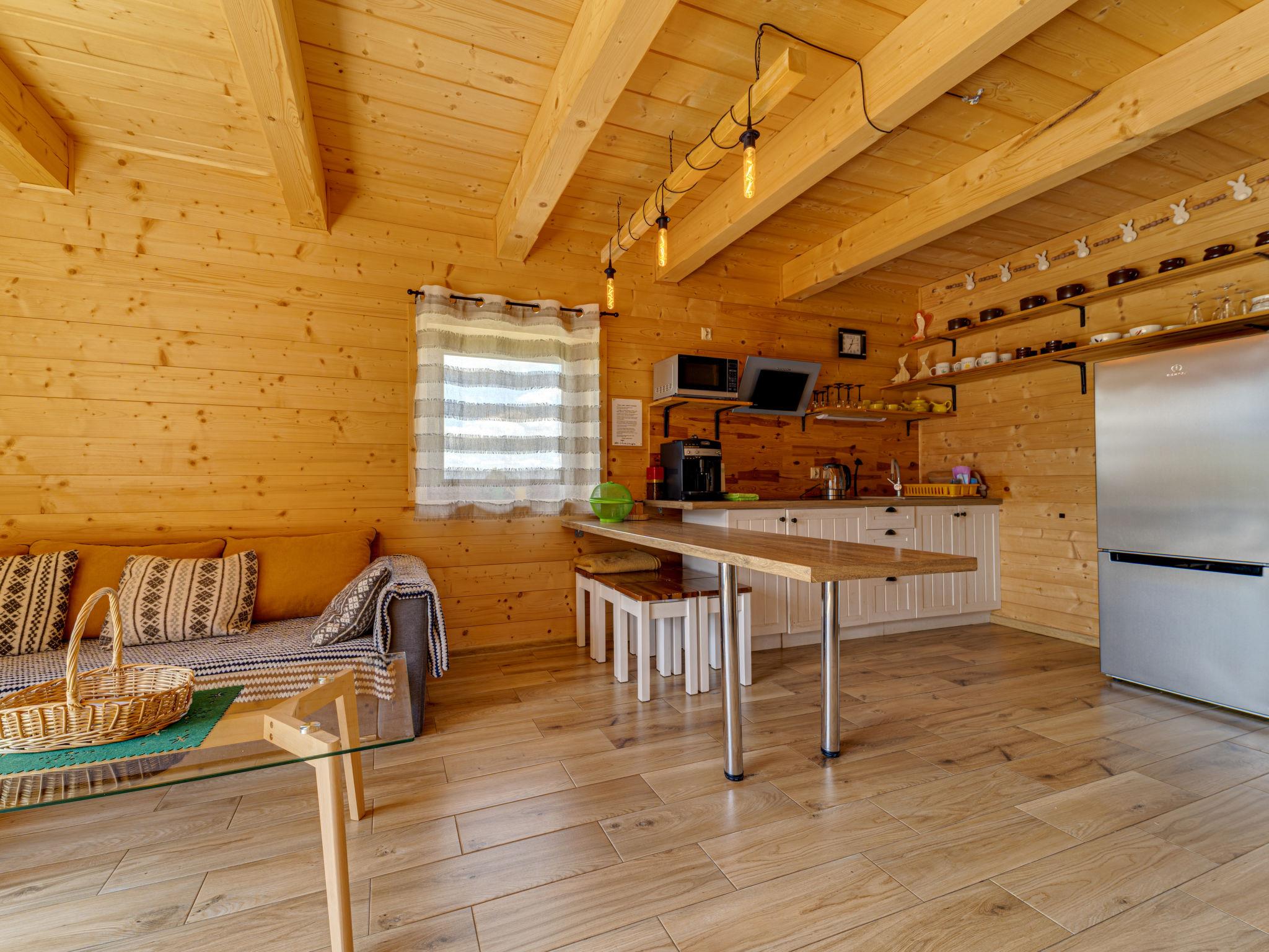 Gemütliches, komfortables Chalet, Baujahr 2020. 2 Häuser im Ferienresort. Am Ortsrand, sonnige, erhöhte Lage, im Grünen. Zur Mitbenutzung: Grundstück, Wiese. Grill. Im Hause: Wireless LAN, Sauna, Waschmaschine, Wäschetrockner. Parkplatz beim Haus. Lebensmittelgeschäft 300 m, Supermarkt 2.5 km, Restaurant 1 km, Bushaltestelle 300 m, Bahnstation 5 km, Hallenbad 1.5 km, Strandbad 8 km. Reitstall 3 km. Nahe gelegene Sehenswürdigkeiten: Szlak Rowerowy Wokól Tatr, Suche 6 km, Zakopane 12 km. Bekannte Skigebiete sind gut erreichbar: Czerwienne SKI 2.5 km, Zab 3 km, Harenda 5.5 km. Bitte beachten: In dieser Anlage zusätzlich mietbar: 2 Häuser.