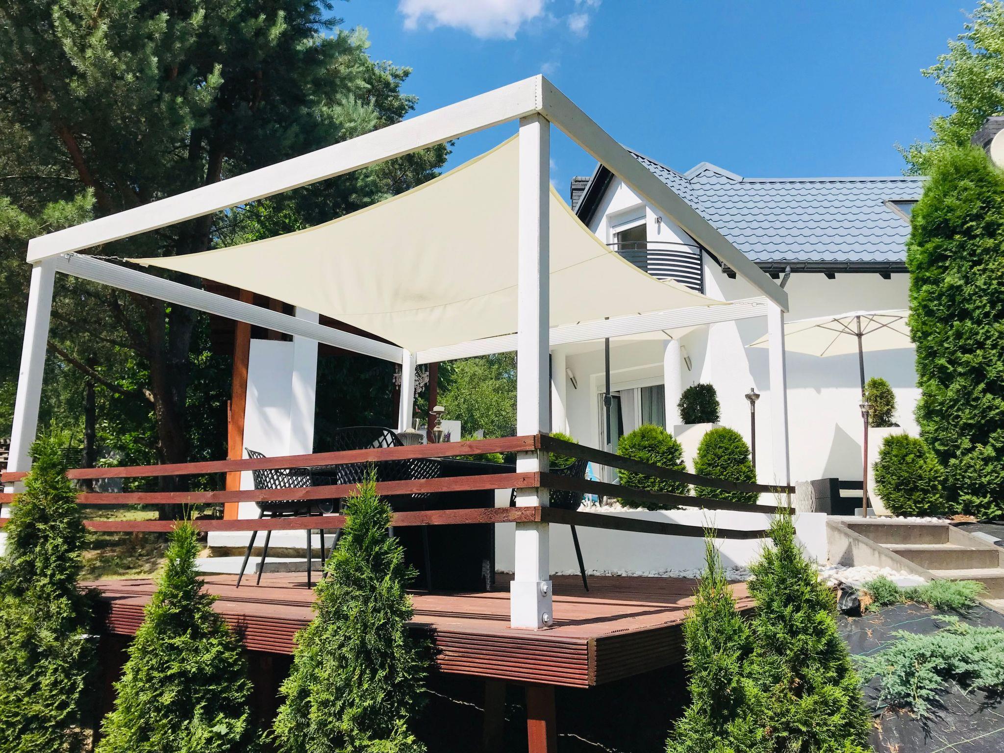 Der Außenbereich lässt keine Wünsche offen. Eine großzügige Terrasse von über 30qm bietet sich perfekt zum Entspannen und Sonnenbaden an. Auf dem 1300qm großen Grundstück findet jeder Platz für seine Lieblingsfreizeitaktivitäten. Abends sorgt eine stimmungsvolle Innen- und Außenbeleuchtung für die richtige Atmosphäre. Der direkte Zugang zum Wald ermutigt zu Spaziergängen, bei denen Sie vielleicht auf Heidelbeeren und Pilze stoßen.