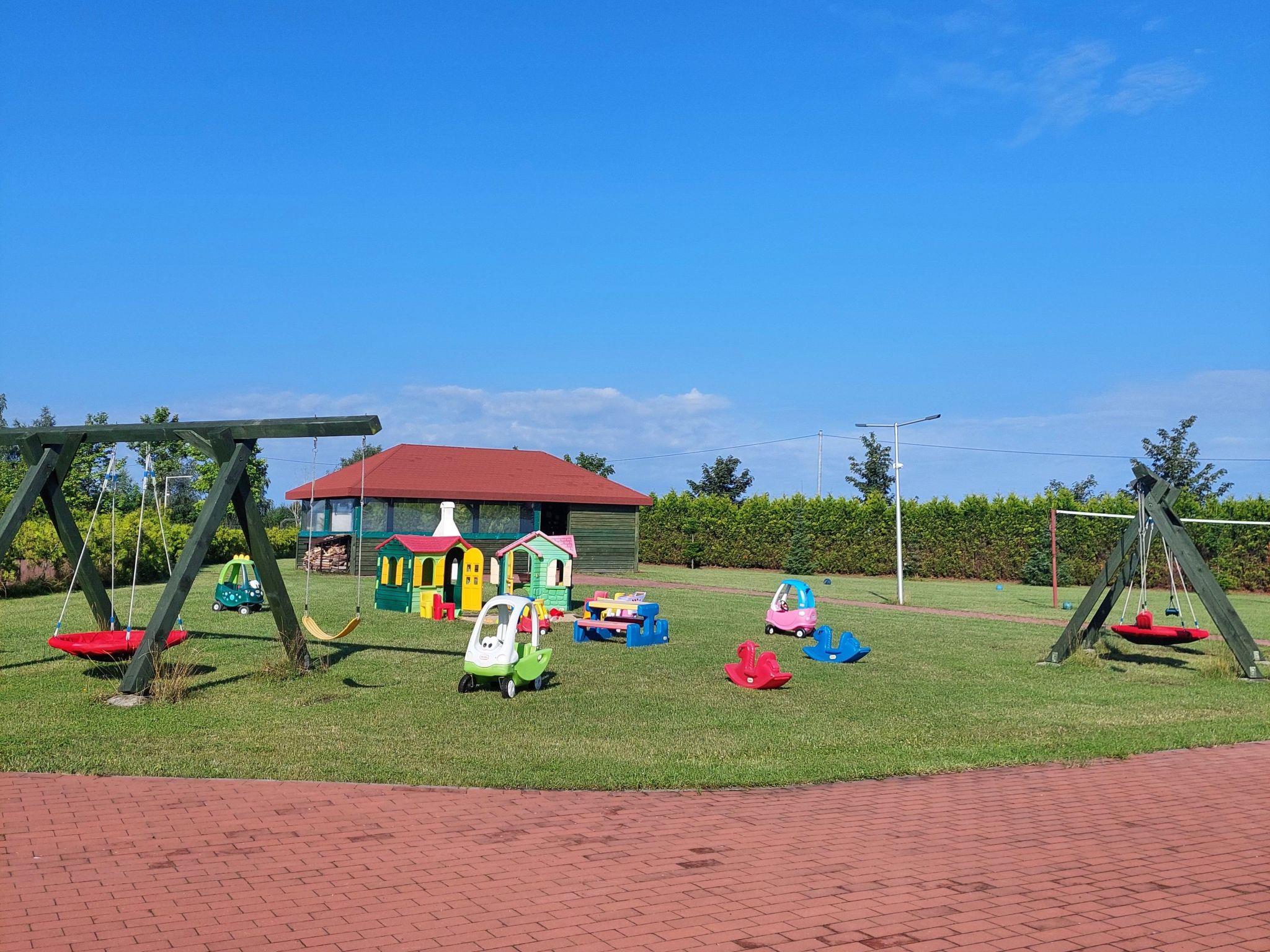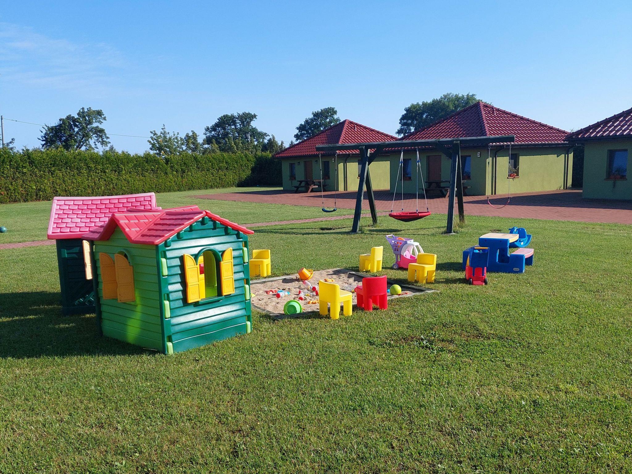 Für Kinder gibt es einen Spielplatz mit Schaukeln und einem Sandkasten.