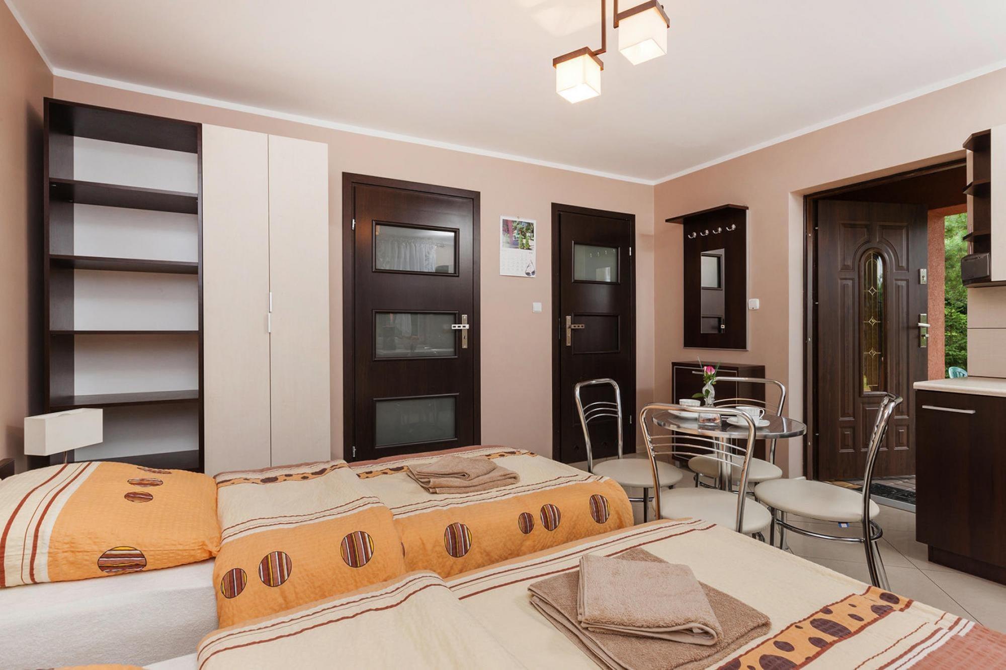 Zwei kleine, gepflegte und modern eingerichtete Doppelhaushälften mit eigener Terrasse und einem gemeinsamen, schön angelegten Gartengrundstück. Die Häuschen sind mit kostenfreiem WLAN sowie SAT-TV mit deutschen Programmen ausgestattet. Die Nähe zum Stettiner Haff, der Fluss Dziwna und die nur wenige Kilometer entfernte Ostsee bieten jede Menge Aktionsmöglichkeiten. Der Wolinski Nationalpark ist ein gutes Ausflugsziel. HighLights : WLAN Kurtaxe Aktivitäten in der Nähe : Das Wassersportangebot ist groß und auch Angler finden immer wieder ein ruhiges Plätzchen am Meer, See oder Stettiner Haff, um ihre Ruten auszuwerfen. In Ihrer Urlaubsplanung sollten Sie unbedingt einen Ausflug ins 12 km entfernte Miedzyzdroje einplanen: Die imposante Seebrücke, die Allee der Sterne, das illustre Wachsfigurenmuseum oder das Kliff, das den Aussichtspunkt Gosan beherbergt sind nur ein paar Highlights, die die Stadt zu bieten hat. In Wolin sollte ein Besuch des Wikingerdorfs auf Ihrem Plan stehen. Große und kleine Gäste werden begeistert sein. Eine wunderbare Aussicht hat man in Wolin vom landschaftlich attraktiven Galgenberg aus Mobilität : Nicht geeignet für Personen mit eingeschränkter Mobilität