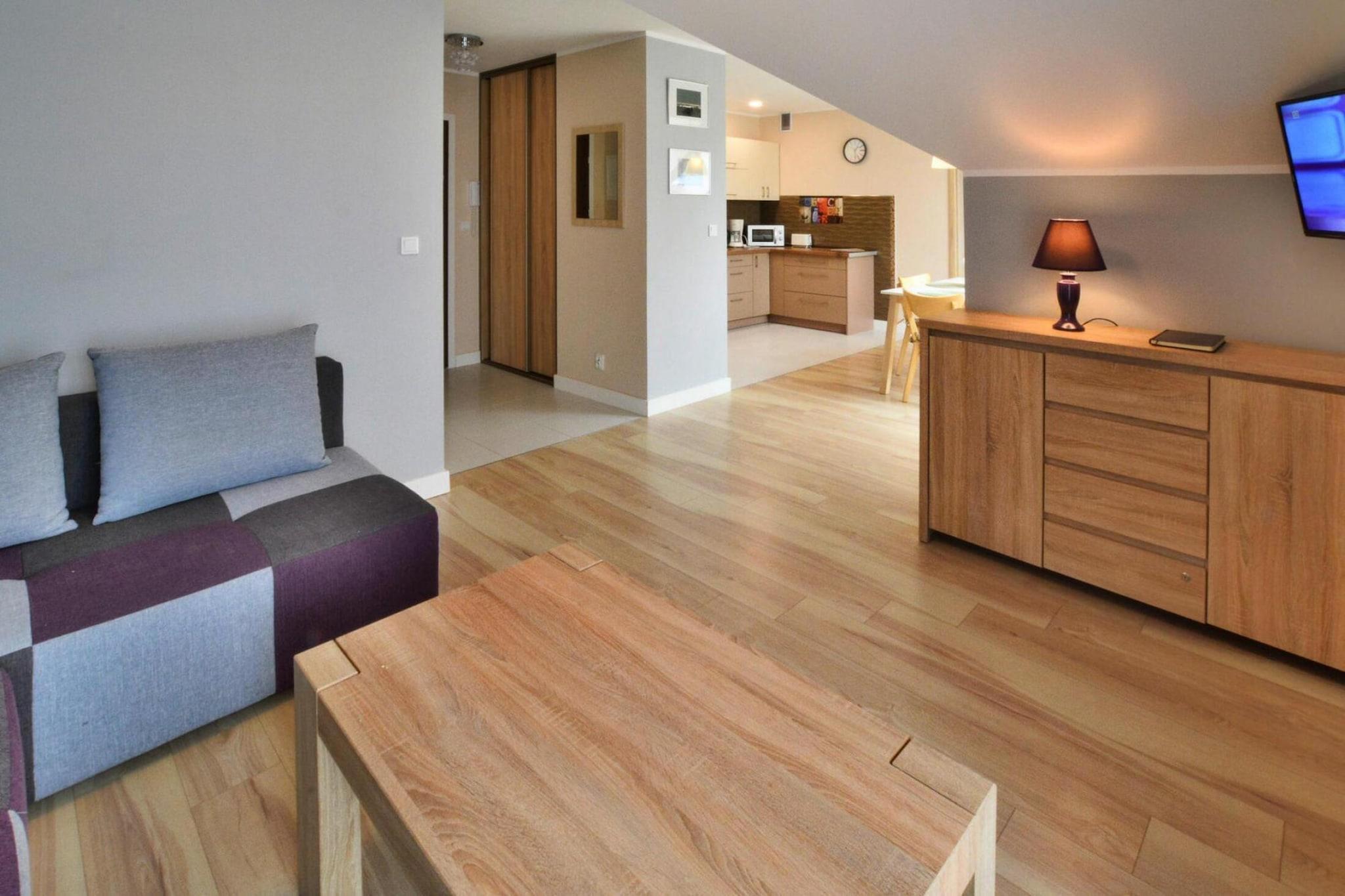 Interessante Lage, 400 m vom Strand entfernt, in unmittelbarer Nähe des Aquaparks. Das Zentrum des Ferienortes ist etwa 600 m entfernt. Über die Zugbrücke gelangen Sie über den Fluss Wieprza in den westlichen Teil der Stadt. In der Nähe der Flussmündung gibt es Kreuzfahrtschiffe, einen Wassersportausrüstungsverleih und zahlreiche Stände mit geräuchertem und frischem Fisch. In der Apartmentanlage erwartet die Gäste eine komfortable Ferienwohnung. Die Wohnung liegt im zweiten Stock. Es besteht aus einem geräumigen Wohnzimmer (ausziehbares Doppelsofa, TV, Tisch), einem Schlafzimmer mit Doppelbett (zusätzlicher TV) und einem Badezimmer mit Dusche. Das Wohnzimmer ist mit einer gut ausgestatteten Küche verbunden. Die Wohnung verfügt über einen großen Balkon mit Sitzecke. Zentralheizung. WLAN ist verfügbar. Neben der Wohnung befindet sich ein kostenloser Parkplatz. Im Preis des Aufenthalts sind enthalten: Bettwäsche, Handtücher, Strom- und Wasserverbrauch, Heizung, Parkplatz, Internet, Endreinigung, Kurtaxe, Babybett und Hochstuhl (vorherige Reservierung erforderlich). Darlówko ist ein Küstenbezirk von Darlowo. Der Charme dieser Stadt zieht jedes Jahr Tausende von Touristen an. Ein wunderbares Mikroklima, ein sauberer, breiter Strand und die Sehenswürdigkeiten der mittelalterlichen Altstadt. Darlowo erwartet das ganze Jahr über Touristen. Zu den Hauptattraktionen von Darlówko zählen neben wunderschönen Stränden: der Leuchtturm, die Schiebebrücke, der Hafen und viele andere interessante Orte. In Darlówko gibt es einen Yachthafen, in dem Sie schwimmende Ausrüstung mieten können, und einen Hafen, von dem aus Kreuzfahrtschiffe ablegen. In der Nähe des Jan Hotels gibt es auch einen attraktiven Wasserpark.