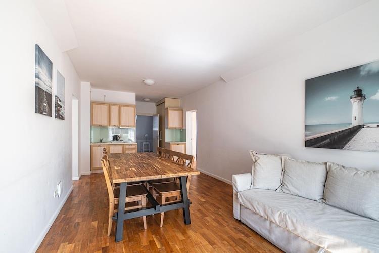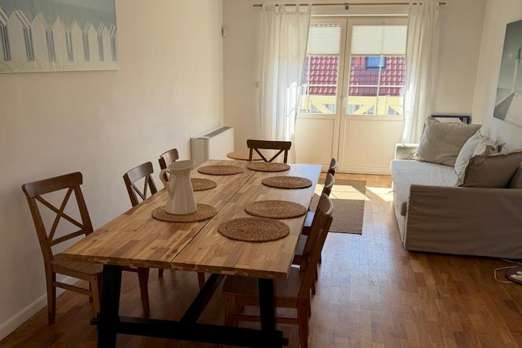 Diese große Ferienanlage mit ihrer umfangreichen Infrastruktur für einen gelungenen Urlaub liegt im Zentrum des Badeortes Debki, nur 900 Meter von einem wunderschönen Sandstrand entfernt. Das weitläufige, gepflegte und umzäunte Gelände umfasst vier dreistöckige Apartmentgebäude mit komfortablen Ferienwohnungen. Das besonders geräumige (80 m²) Apartment für 6 Personen befindet sich im zweiten Stock. Es verfügt über einen Balkon mit kompletter Sitzgruppe. Das Apartment besteht aus einem Wohnzimmer (mit Doppelschlafsofa und Esstisch), einer Küche, zwei Schlafzimmern mit Doppelbett (jeweils mit TV) und zwei Badezimmern (eines mit Dusche, eines mit Badewanne). Zentralheizung und WLAN sind vorhanden. Die Ferienanlage bietet ein hochgelobtes Restaurant mit einer vielfältigen kulinarischen Auswahl. Außerdem gibt es einen Grillplatz, einen Sportplatz und Billard. Gegen Gebühr können Sie Fahrräder oder einen Tennisplatz mieten. Für die kleinen Gäste gibt es einen schönen Spielplatz und ein Spielzimmer. Es gibt eine Gemeinschaftswaschmaschine (gegen Gebühr). Im Mietpreis enthalten sind Bettwäsche, Handtücher, Strom, Wasser, Heizung, Parkplatz, Internet und die Endreinigung. Ein Kinderbett, ein Hochstuhl und eine Badewanne sind auf Anfrage erhältlich. Debki ist ein kaschubischer Badeort an der Ostseeküste. Er liegt an der Mündung des Flusses Piasnica (Kajaktouren werden angeboten) im Küstenlandschaftspark. Einst ein beschauliches Fischerdorf, ist es heute ein beliebter Urlaubsort für Familien, Surfer und alle, die sich nach einer entspannten, naturnahen Atmosphäre sehnen. Die Gegend ist von zahlreichen Wander- und Radwegen durchzogen. Es gibt auch einen FKK-Strand.