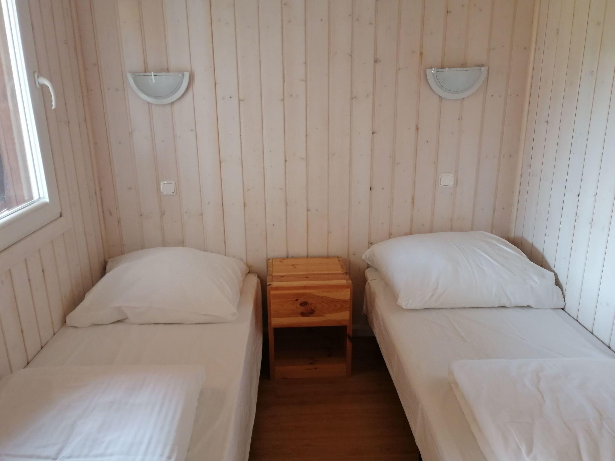Im Haus finden Sie eine voll ausgestattete Küchenzeile mit einem Elektroherd mit zwei Flammen, einem Kühlschrank mit kleinem Gefrierfach, einer Spüle und allen notwendigen Küchenutensilien und Geschirr. Außerdem gibt es ein gemütliches Wohnzimmer mit Sitzecke, zwei Schlafzimmer mit Einzelbetten, die zusammengeschoben werden können, und ein Badezimmer mit Dusche und WC. In jedem Zimmer ist eine elektrische Heizung installiert.