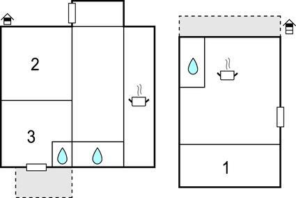 Badezimmer (nr. 3) - WC. Warmes und kaltes Wasser. Dusche