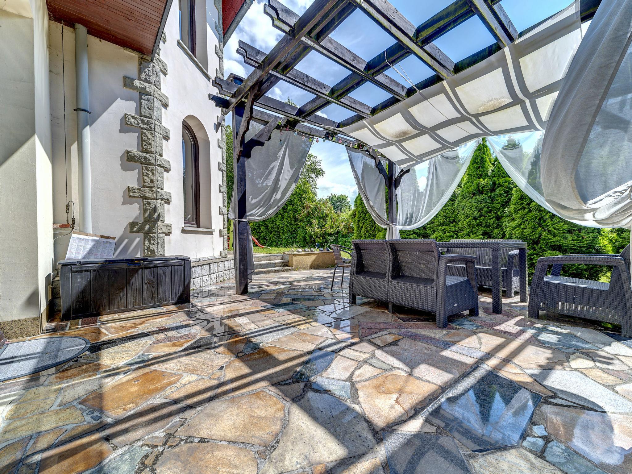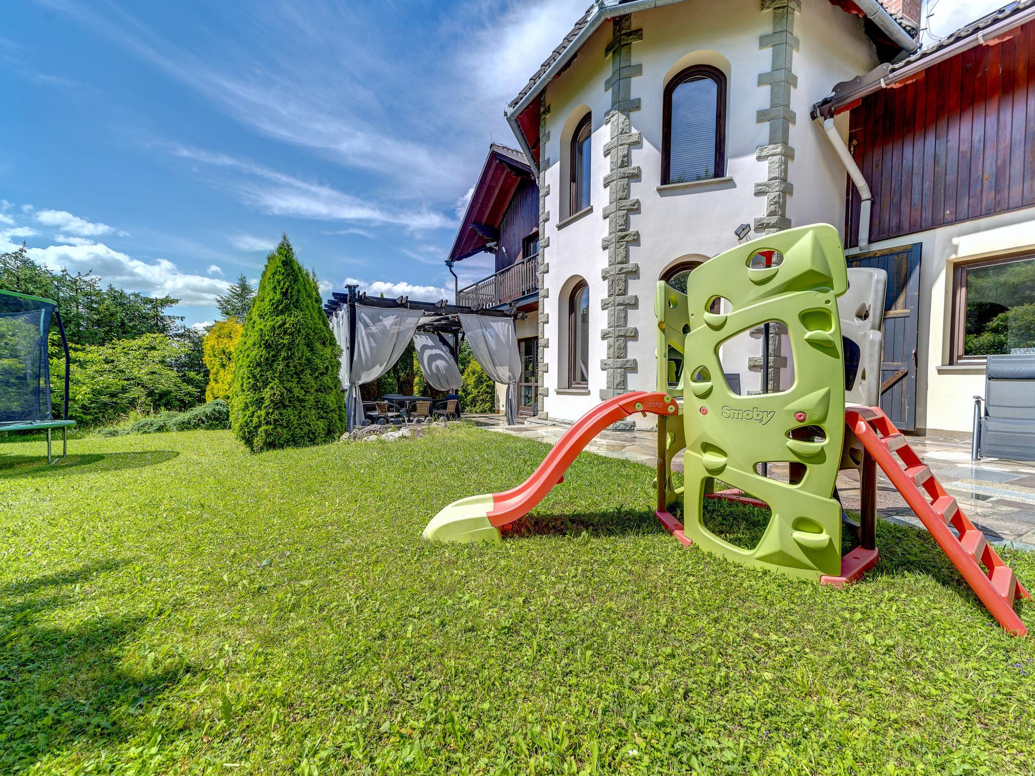 Grosses Einfamilienhaus "Zameczek Falsztyn", Baujahr 2000, renoviert im Jahre 2009. 5 Häuser im Ferienresort. Am Ortsrand, ruhige, sonnige, erhöhte Lage, 2 km vom See, 5 km vom Skigebiet, im Grünen. Zur Alleinbenutzung: Grundstück 1'500 m2 (eingezäunt), Garten. Terrasse, Grill, Kinderspielplatz (Schaukel). Im Hause: Sauna, Sprudelbad, Billard, Tischfussball, Skiraum. Zufahrt bis zum Haus. Im Winter bitte Schneeketten mitbringen. Parkplatz beim Haus, Einzelgarage. Einkaufsgeschäft 2 km, Lebensmittelgeschäft 500 m, Supermarkt 2 km, Restaurant 5 km, Bushaltestelle 150 m, Bahnstation 20 km, Sandstrand 2 km (klein), Badesee 2 km. Tennis 10 km, Reitstall 3 km, Skilift 5 km, Sessellift 5 km, Skiverleih 5 km, Skischule 5 km, Eisfeld 20 km, Kinderspielplatz 2 km. Nahe gelegene Sehenswürdigkeiten: Zamek Niedzica 3 km, Ruiny Zamku Czorsztyn 15 km, Niedzica Park Miniatur, Park linowy, paintball. Bekannte Skigebiete sind gut erreichbar: Niedzica 6 km, Bialka Tatrzanska 18 km, Bukowina Tatrzanska 24 km. Bekannte Seen in der Umgebung sind gut erreichbar: Jez. Czorsztynskie 2 km. Bitte beachten: Fahrzeug empfohlen. Geeignet für Familien, Babyausstattung (inkl.). Angeln (mit Bewilligung). Hauptstrasse 50 m vom Haus. Billard mit Möglichkeit Tischtennis zu spielen.