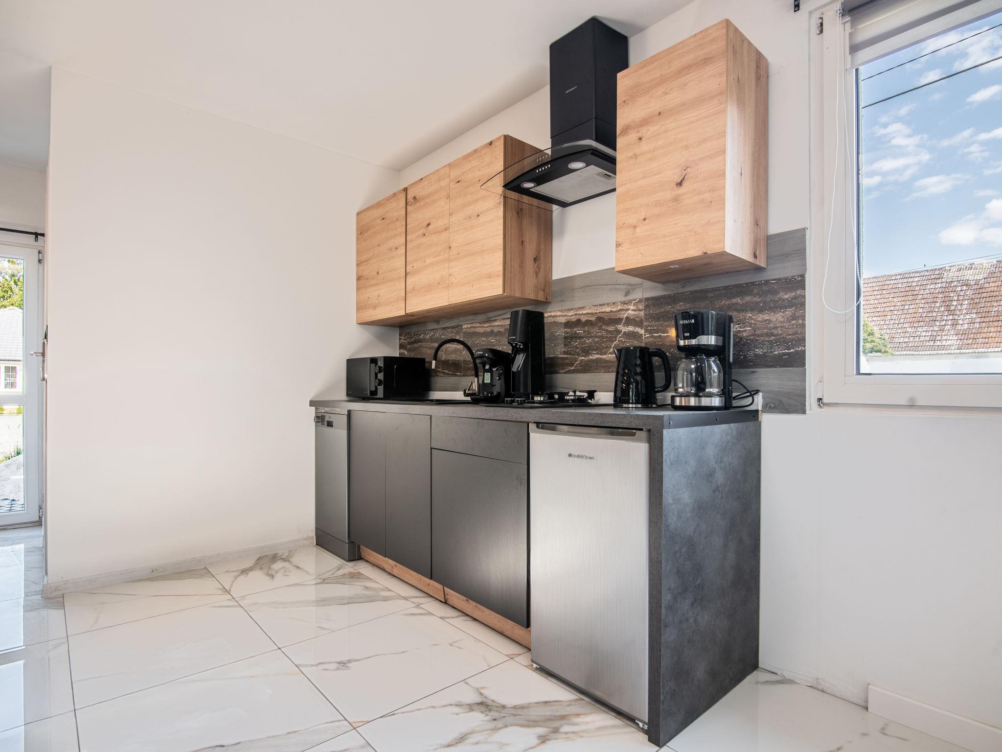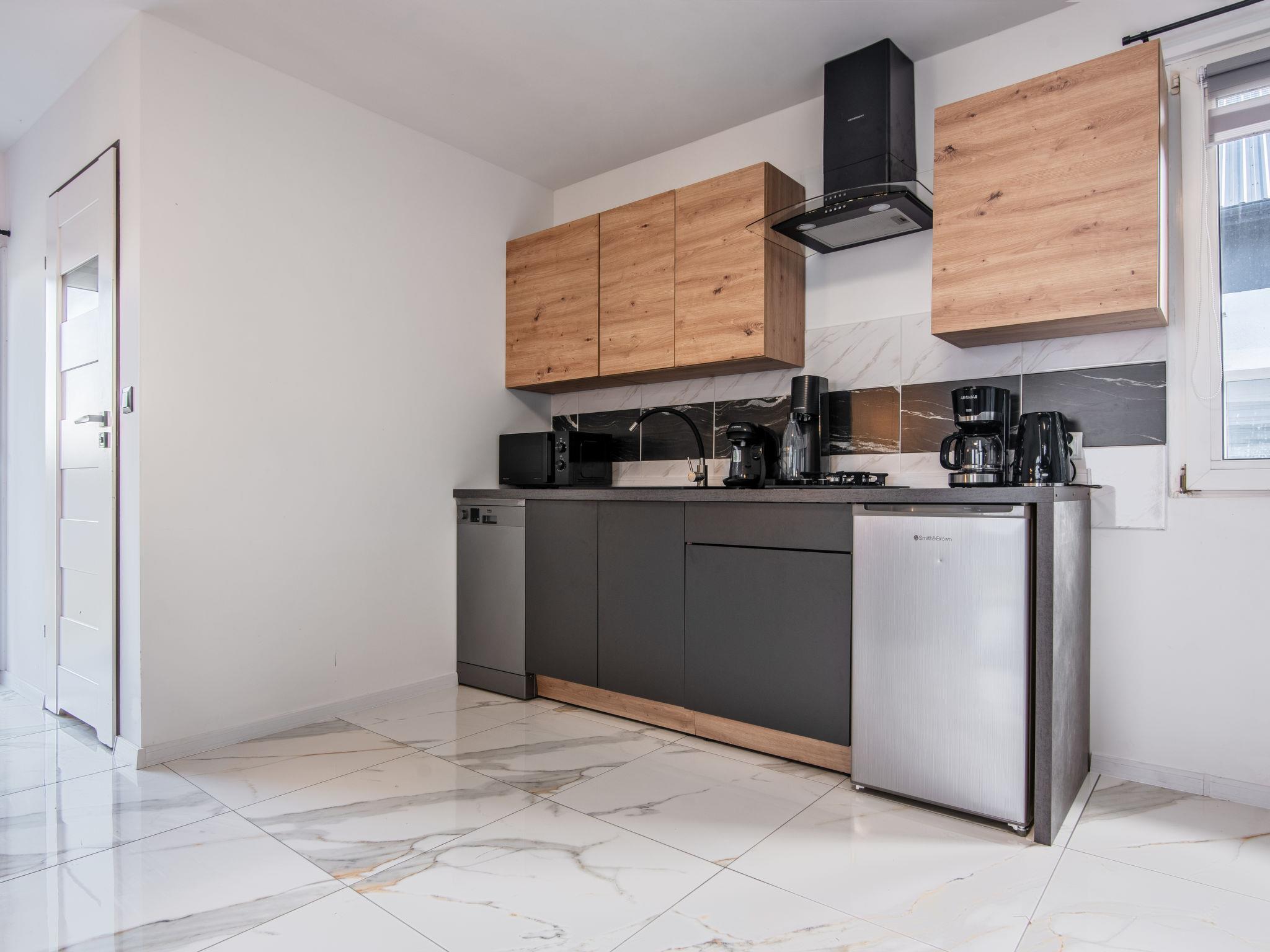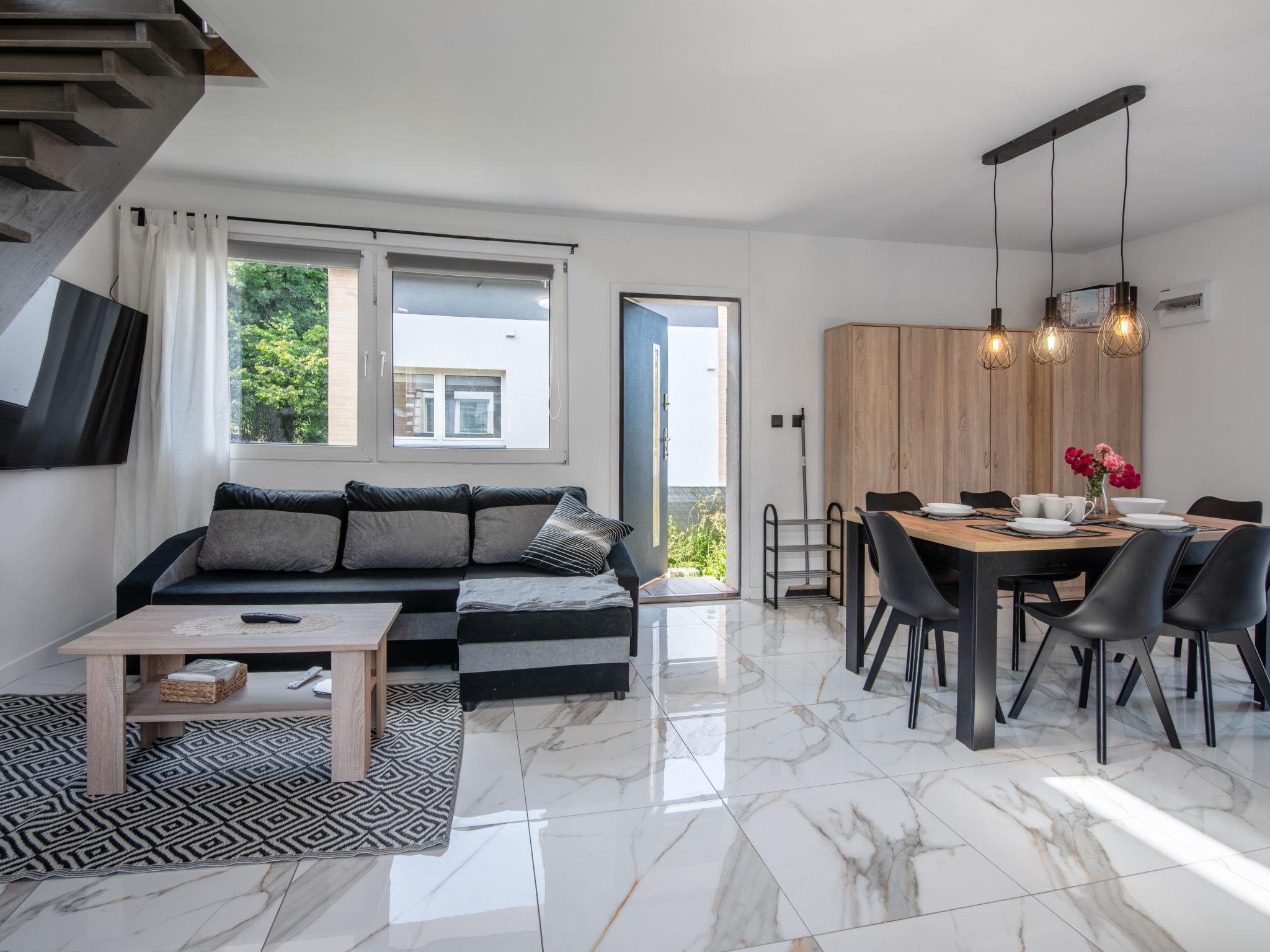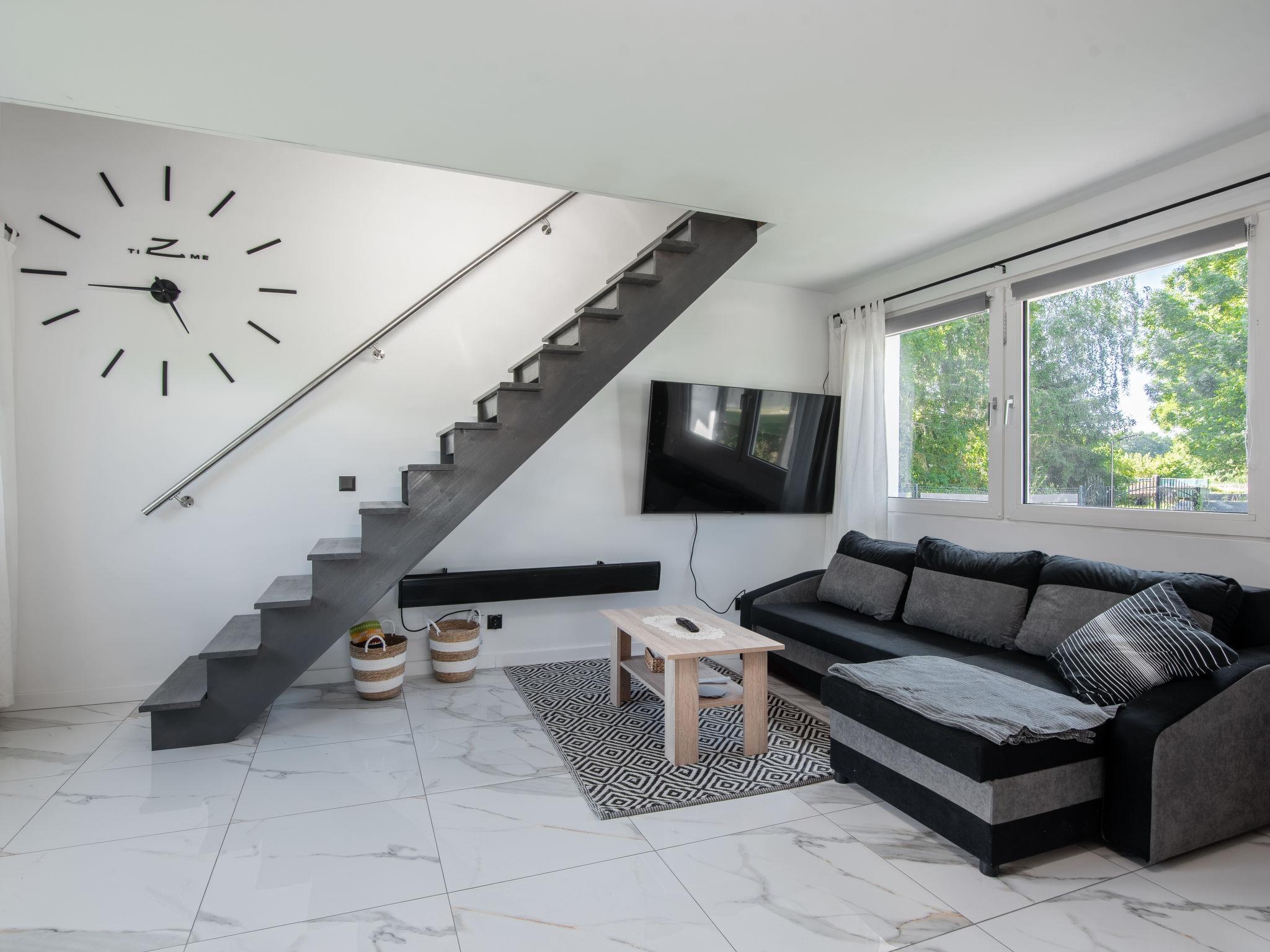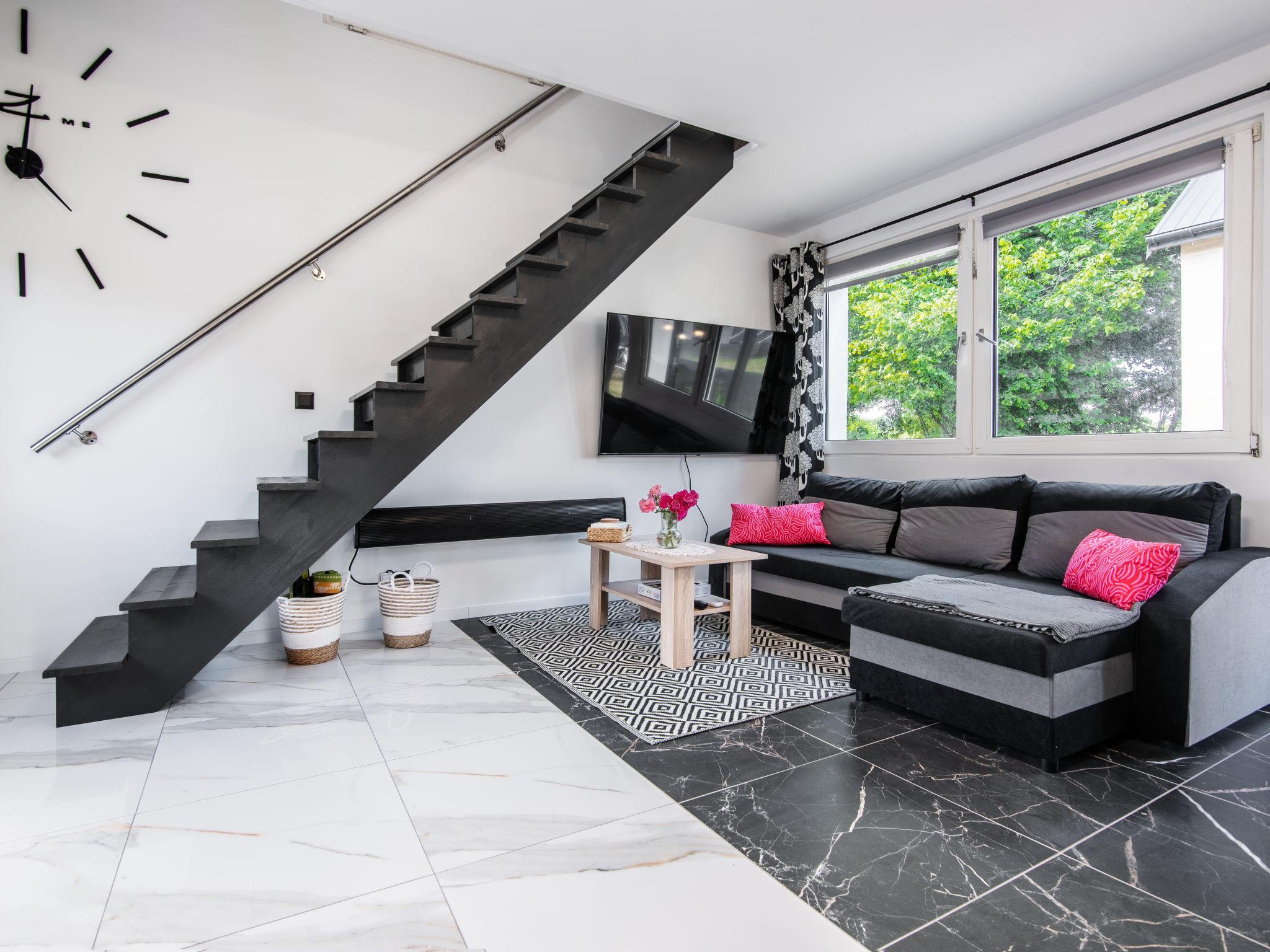 "Gesia Kepa", 3-Zimmer-Haus 70 m2 auf 2 Stockwerken. Komfortabel und modern eingerichtet: Wohn-/Esszimmer mit 1 Diwanbett, Flachbildschirm, Radio und Stereoanlage. Ausgang zum Garten. Offene Küche (Geschirrspüler, 2 Glaskeramikplatten, Mikrowelle, elektrische Kaffeemaschine) mit Esstisch. Dusche/WC. E-Heizung, Solarheizung, Boiler (50 Liter). Dachgeschoss: 1 Zimmer mit 1 franz. Bett. 1 Zimmer mit 2 Betten. Garten. Liegestühle (2). Sicht auf die Landschaft. Zur Verfügung: Internet (WLAN). Parkplatz beim Haus. Maximal 1 Haustier/Hund erlaubt.