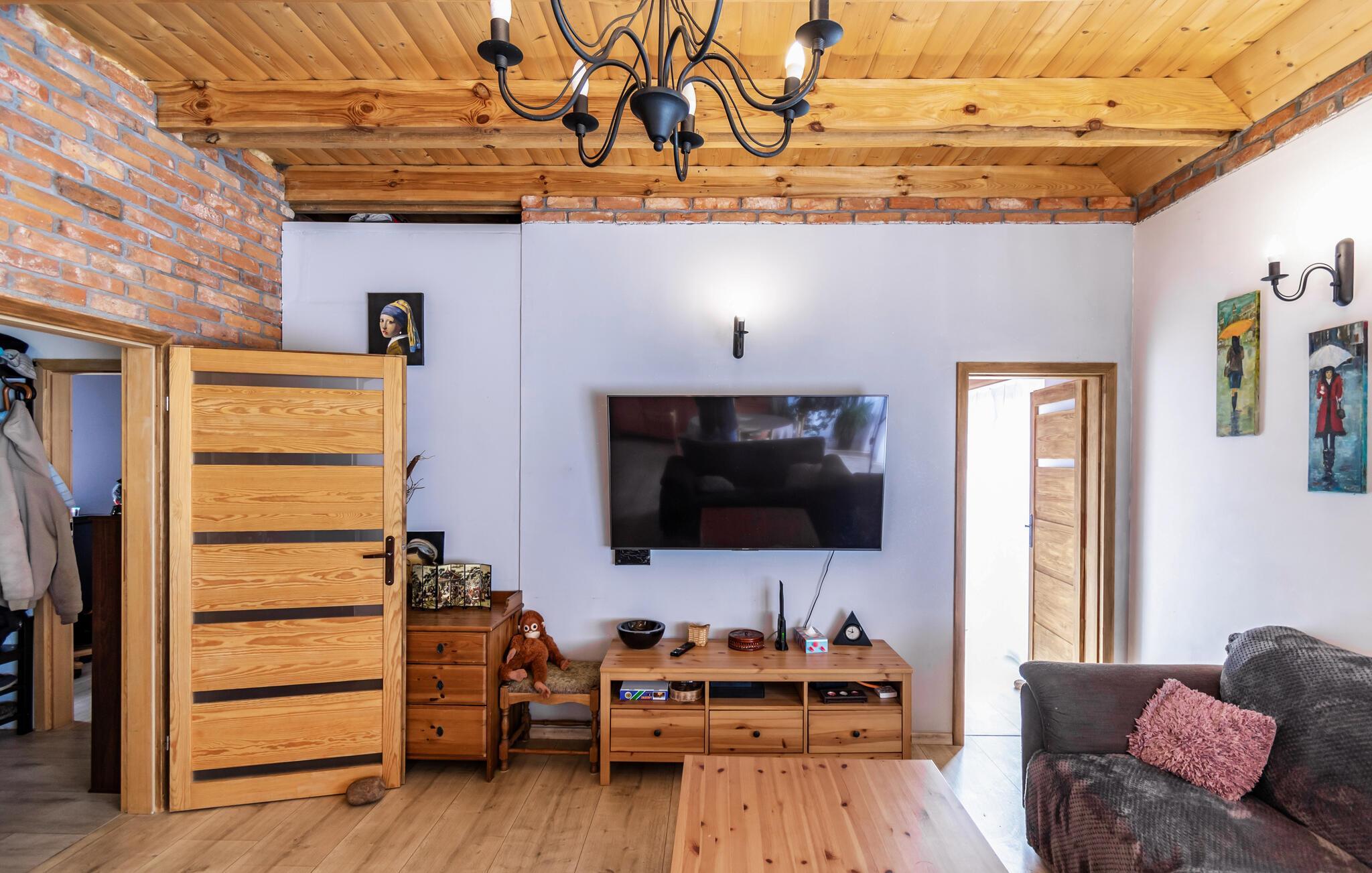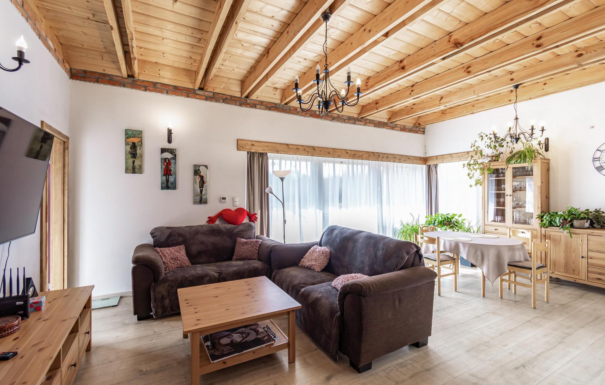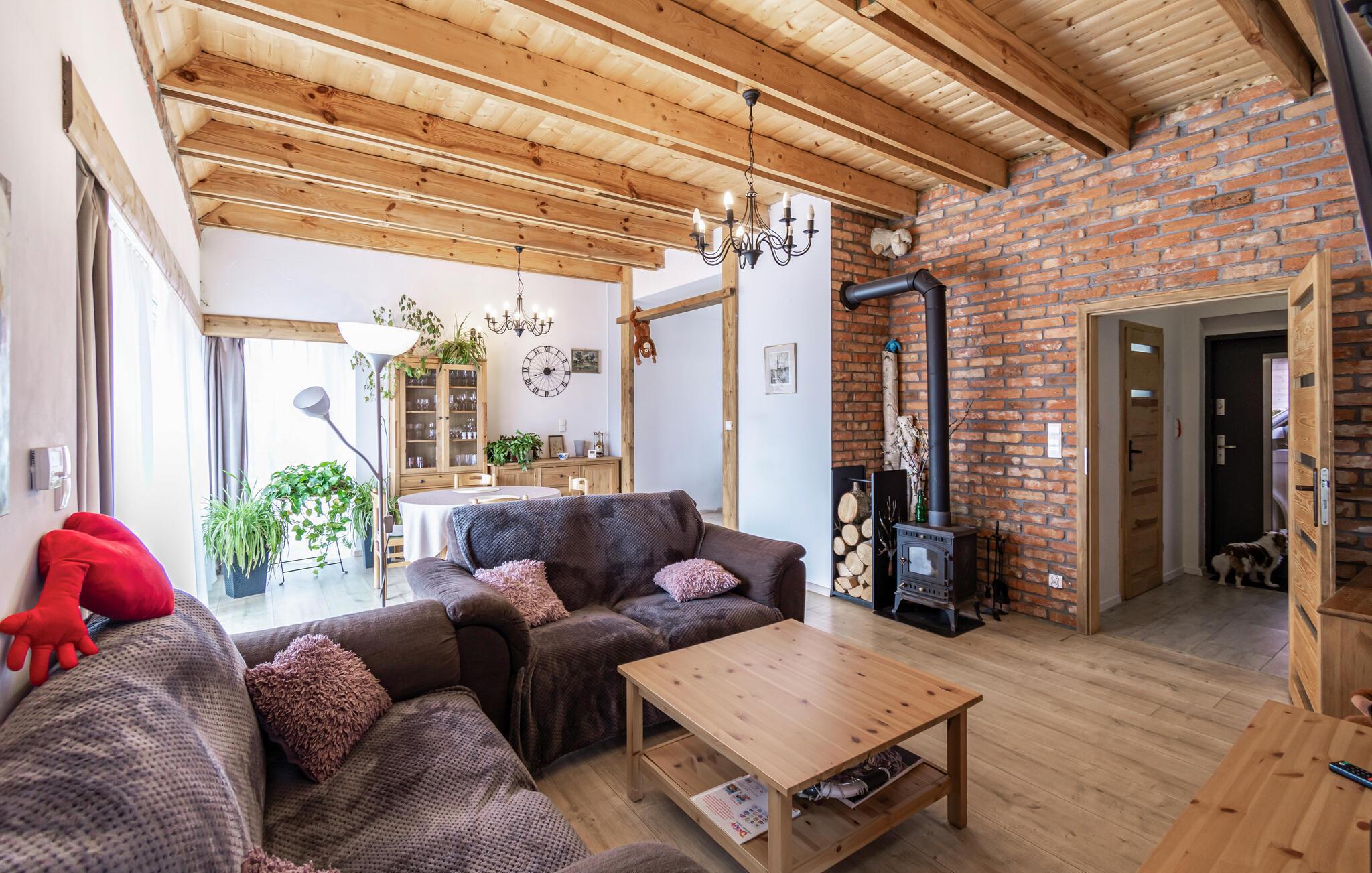 Freuen Sie sich auf eine erholsame Urlaubszeit in diesem schönen Haus. Genießen Sie das ebenerdige Haus, das Sie im Inneren mit hohen Holzdecken in Empfang nimmt und Sie mit einer komfortablen Einrichtung zum Ausruhen einlädt. Holz, Ziegelsteinwände und eine moderne Einrichtung versprechen Ihnen die ideale Umgebung, um die Zeit beim gemeinsamen Kochen, Essen, Spielen und Relaxen zu genießen.
