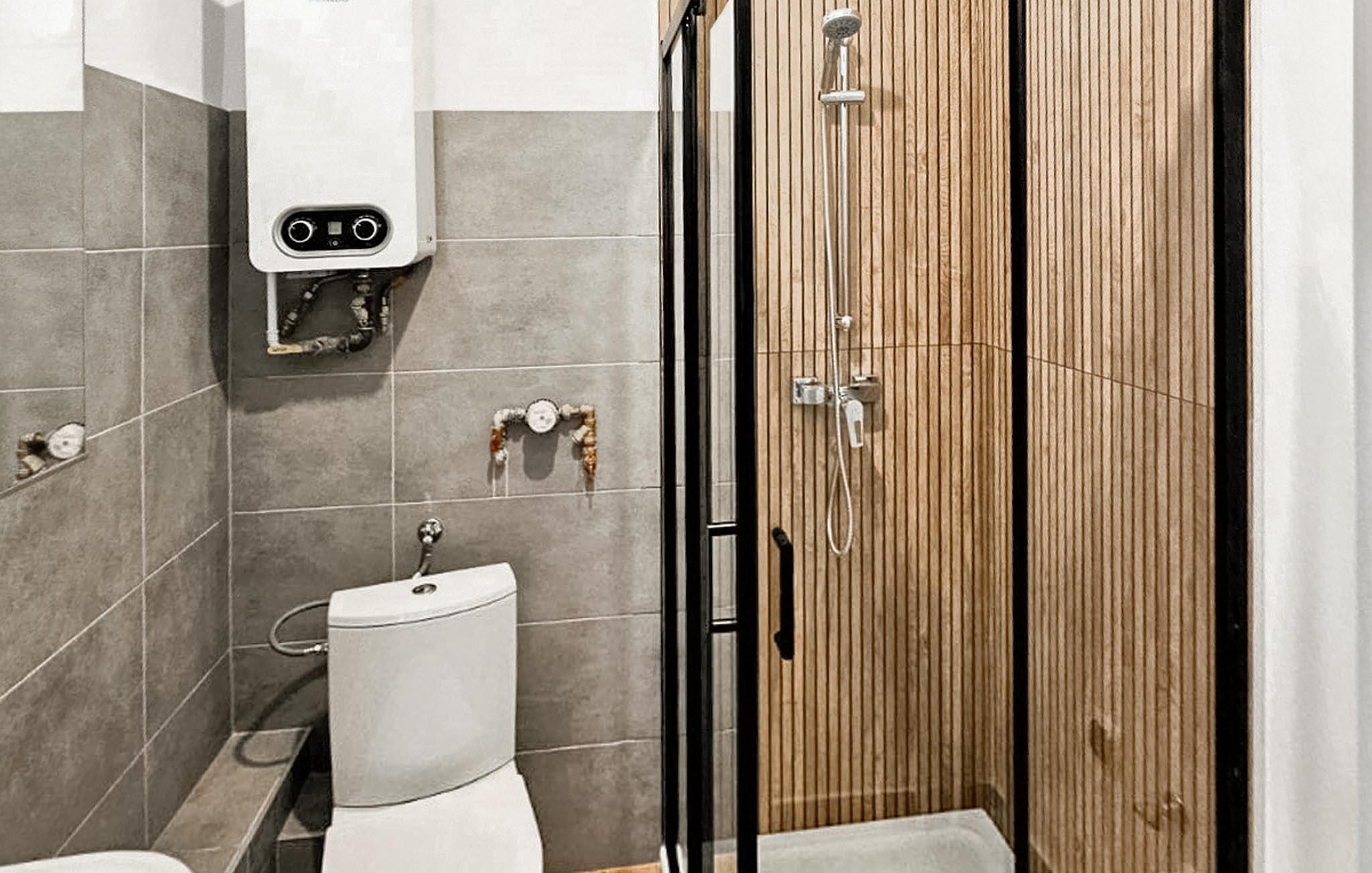 Badezimmer 3m2 (nr. 1) - WC. Warmes und kaltes Wasser. Dusche