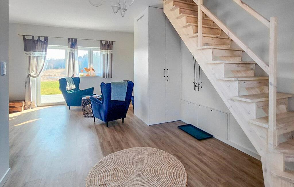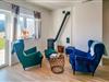 Im offen gestalteten Wohnbereich Ihres Ferienhauses bieten die Sessel einen angenehmen Ort zum Verweilen. Nehmen Sie Platz, lesen Sie ein Buch oder genießen Sie die Aussicht durch die großen Fenster. Die Einrichtung ist modern und zugleich funktional. Nutzen Sie die offene Küche mit Essplatz, um gemeinsam Mahlzeiten zuzubereiten und zu genießen.