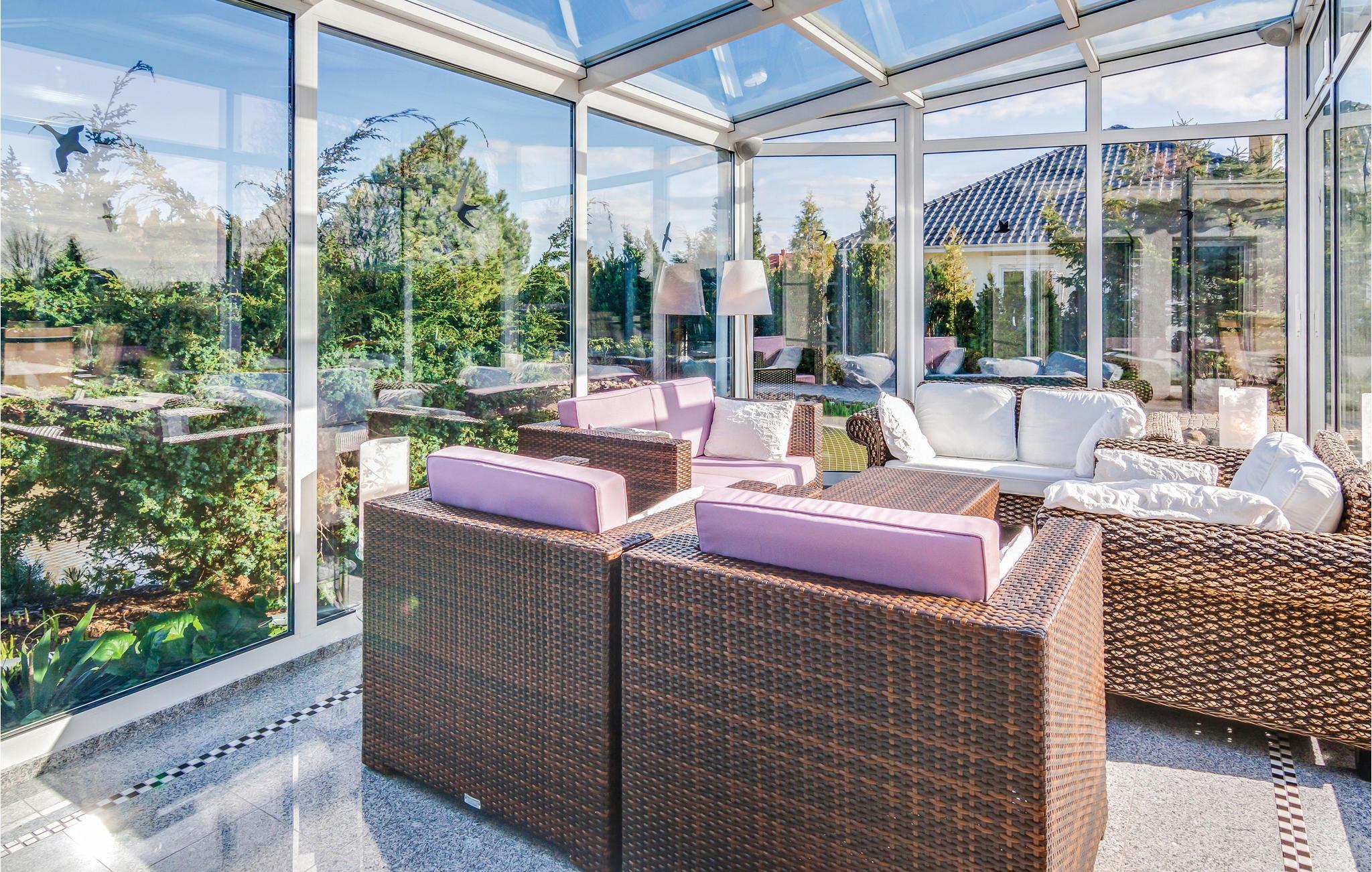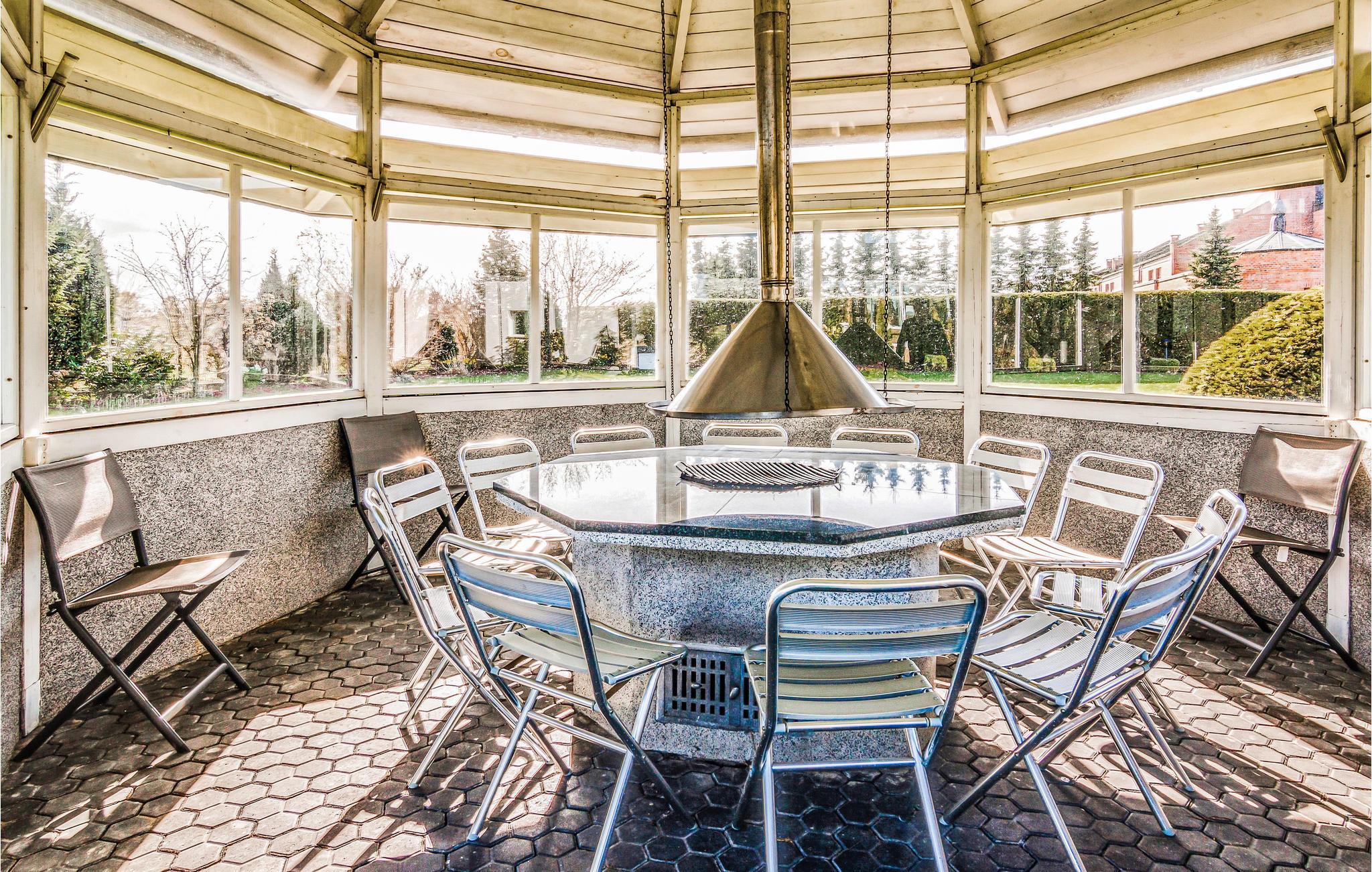 Exklusives, sehr geräumiges Ferienhaus mit moderner und sehr hochwertiger Einrichtung auf einem grosszügig angelegten Grundstück, wunderbar gelegen nahe Kolberg und der pommerschen Ostseeküste. Die geschmackvoll ausgestatteten, lichtdurchfluteten Räumlichkeiten sind gefliest und von der Terrasse bietet sich ein herrlicher Blick auf den Gartenteich mit Fischbesatz und Kröten, geschützt durch einen kleinen Schutzzaun gegen Fischreiher, welche ab und an zu 'Besuch' kommen. Einer der Schlafräume hat direkten Ausgang zur Terrasse, alle anderen verfügen über einen Zugang auf die Balkone. Wunderschöner Gartenpavillon mit eingebautem Tischgrill. Bequeme Sonnenliegen bieten ausreichend Entspannungsplätze. Die moderne Küche ist komplett und modern ausgestattet und erfüllt alle technischen Voraussetzungen. Für die kleinen Gäste stehen sowohl Kinderbett als auch Kunderstuhl zur Verfugung. Der knisternde Kamin lädt abends zu gemütlichem Beisammensein ein. Eine Verwalterin wohnt im Nebengebäude, füttert die Fische im Teich, pflegt das Grundstück und paßt auf, wenn Sie außer Haus sind. Den Gästen stehen auf dem Grundstück 5 Parkplätze zur Verfügung. Ein Volleyballplatz ist auf Anfrage nutzbar. Die zentrale Lage bietet phantastische Ausflugsmöglichkeiten nach Kolobrzeg (Kolberg) oder Koscierzyno (Berent). Tagesfahrten bieten sich an nach Stettin, in das unbedingt besuchenswerte Danzig oder die kaschubische Schweiz mit ihrer traumhaften Seenlandschaft. Alles in Allem ein traumhafter Urlaubsort für gehobene Ansprüche.