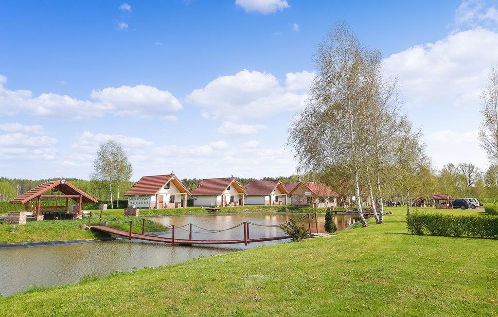 Dieses einfache Ferienhaus ist Teil eines Ferienortes im Dorf Zytowan in der Nähe der Grenzstadt Gubin.