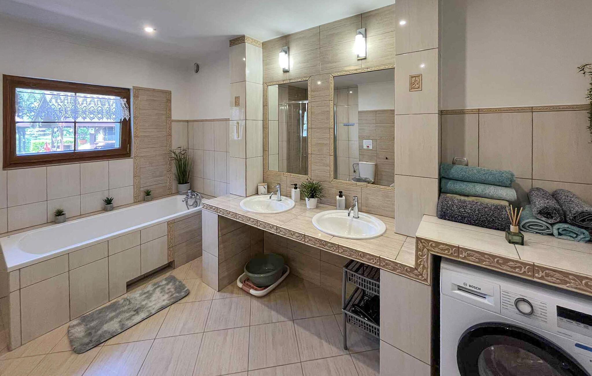 Badezimmer (nr. 1) - WC. Warmes und kaltes Wasser. Dusche und Badewanne