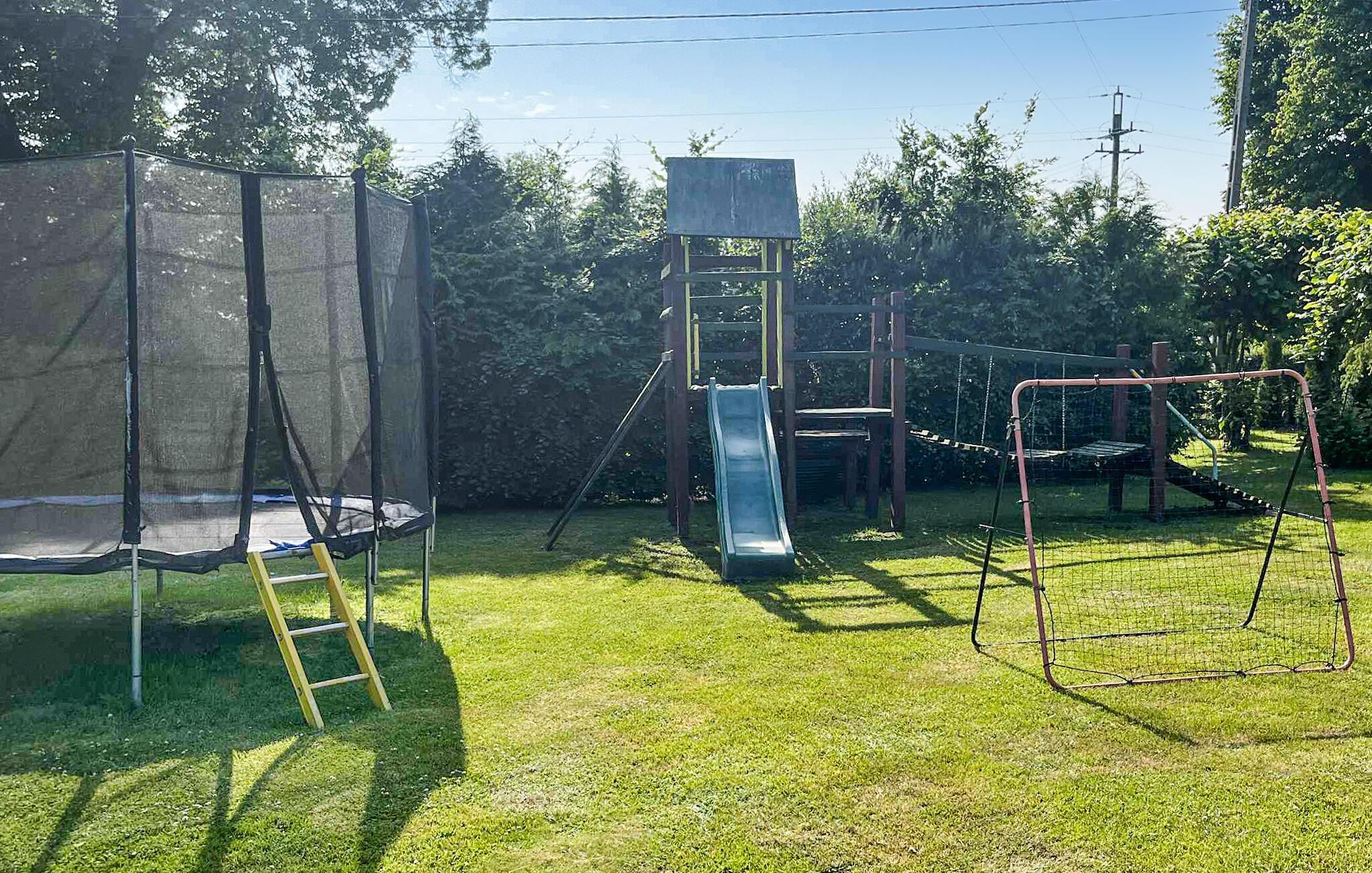 Der Garten des geschlossenen Anwesens lädt dazu ein, in vollen Zügen die Sonne zu genießen. Sehen Sie Ihren Kindern beim Fußballspielen und Trampolinspringen zu, ernten Sie Obst und Gemüse und lassen Sie hier einen erlebnisreichen Tag mit Getränken auf der Terrasse zu Ende gehen.