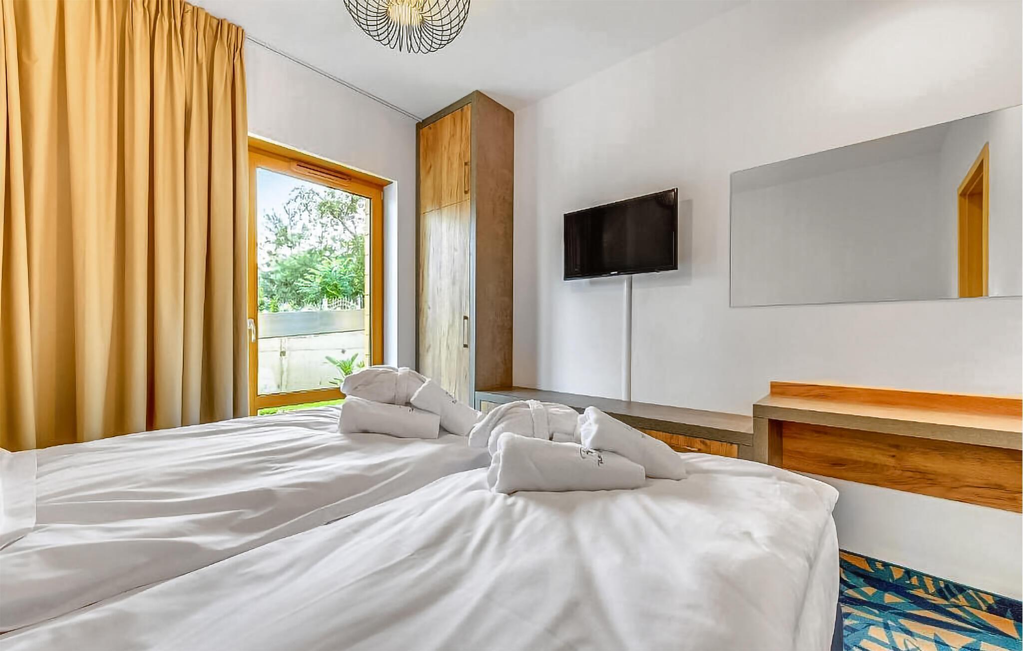 Mitten in die Danziger Bucht ragt die lange, ikonische Halbinsel Hel, im gleichnamigen Ort am Ende dieser Landzunge begrüßt Sie diese luftige, modern eingerichtete Wohnung mit hohem Komfort. Nach der Anreise mit der Fähre von Gdynia, mit dem Zug oder mit dem Auto machen Sie es sich im offenen, schön erhellten Wohnraum gemütlich und richten sich für einen Strandurlaub vom Feinsten ein. Auf den Sofas können Sie abends nach einem wohltuenden Saunagang Ihre Füße hochlegen und sich bei einem Film entspannen. Vom Wohnraum aus gelangen Sie auf Ihre Terrasse und in Ihren privaten Garten, wo Sie zusammen die langen, lauen Sommerabende genießen können.