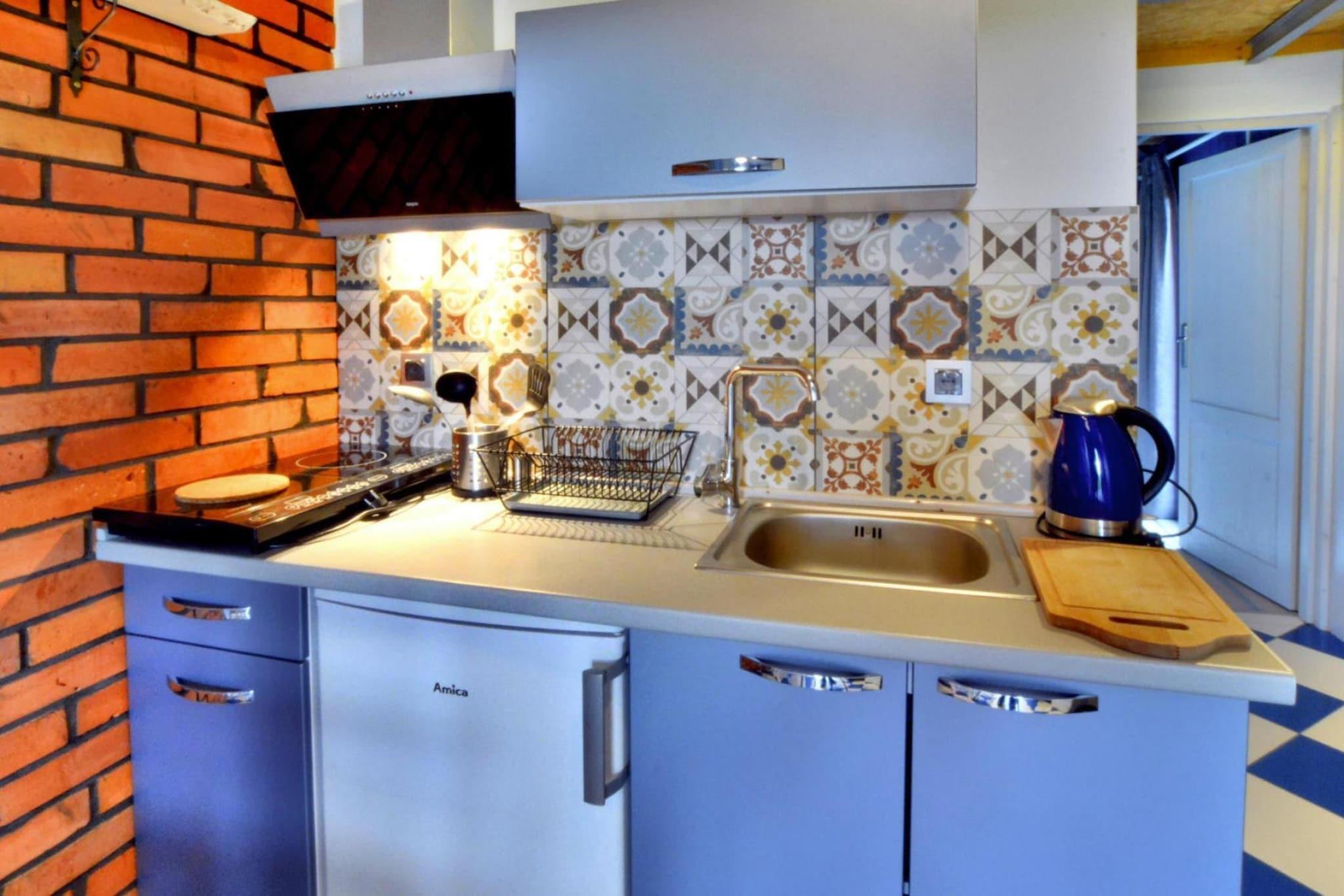 Ein gemütliches Resort am Rande des Sommerdorfes Jezierzany. Der Meeresstrand ist ca. 3 km entfernt. Nur 1 km bis zum Ufer des Lake Wicko (Sie können dort angeln, ein Boot mieten und dort schwimmen). Jedes der gemütlichen Häuser verfügt über 2 unabhängige Unterkünfte und bietet Platz für 2 Familien (2 separate Eingänge). Im Erdgeschoss gibt es ein Wohnzimmer mit Küche, ein Schlafzimmer und ein Badezimmer mit Dusche. Im Dachgeschoss gibt es einen großzügigen, offenen Raum mit einem schönen Schlafzimmer mit Doppelbett. Vor dem Haus befindet sich eine überdachte Terrasse mit Gartenmöbeln. WLAN ist verfügbar. Die Waschmaschine ist öffentlich zugänglich (bitte an der Rezeption anmelden). Das Zentrum verfügt über einen Parkplatz, einen attraktiven Spielplatz und einen Grillplatz (mit entsprechender Ausstattung). Im Preis des Aufenthalts sind enthalten: Bettwäsche, Wasserverbrauch, Parkplatz, Internet, Aufenthalt mit einem Hund (max. 1), Endreinigung, Babybett und Hochstuhl (vorherige Reservierung erforderlich). Jezierzany ist ein ruhiges, kleines Feriendorf an der zentralen Küste, in der Nähe von Jaroslawiec, Darlowo und Ustka. Der Strand am Meer ist perfekt für Touristen, die sich gerne an nicht überfüllten Orten sonnen. Am Strand kann man bunte Fischerboote sehen und goldenen Bernstein finden. Im benachbarten Jaroslawiec befindet sich die größte Klippe an der Mittelküste – ihre Länge beträgt etwa 2 km und die Höhe beträgt bis zu 24 m. Entlang der Klippenküste gibt es viele Aussichtspunkte, von denen aus Sie den wunderschönen Strand und die saubere Ostsee bewundern können. Ein interessantes Denkmal in Jaroslawiec ist der Leuchtturm.