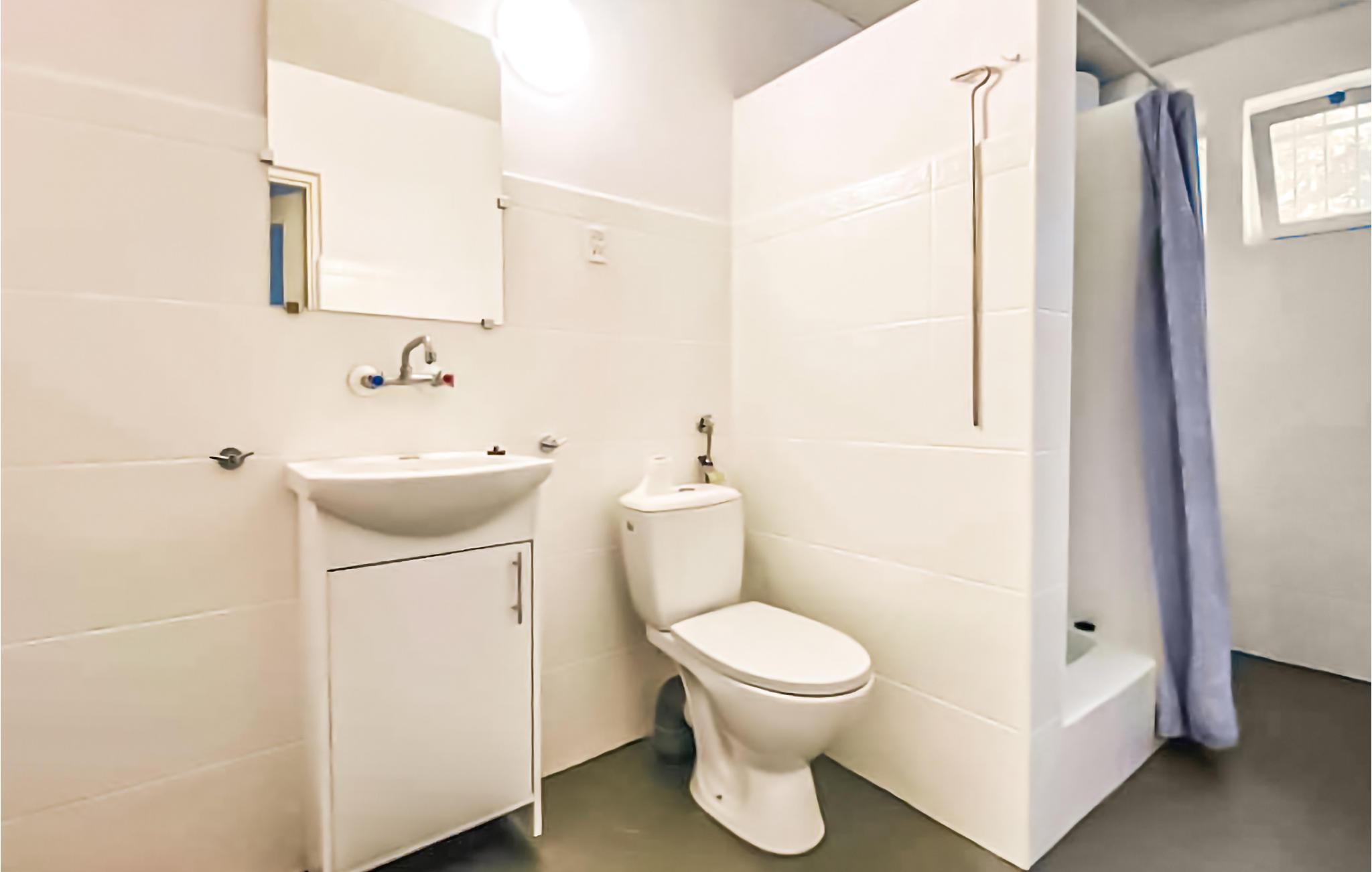 Das Badezimmer mit eingemauerter Dusche bietet Ihnen Raum für Privatsphäre und kann jederzeit durch das Fenster belüftet werden.