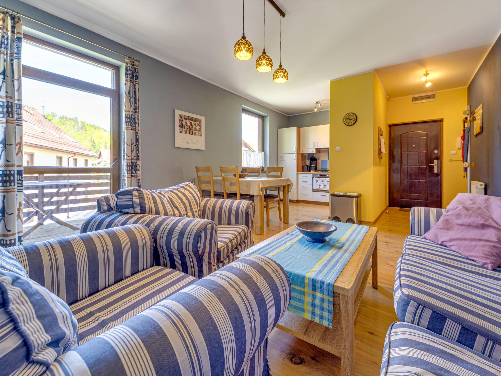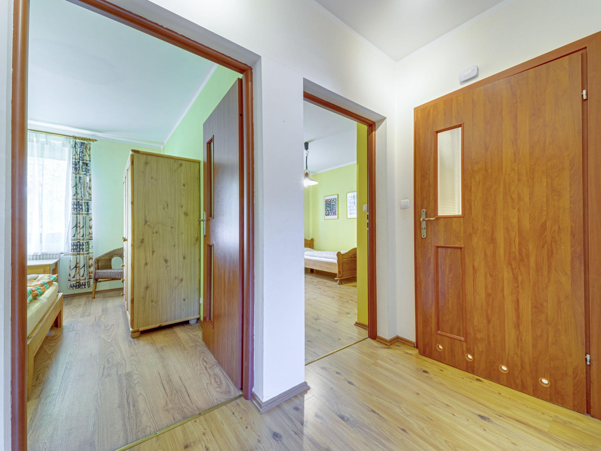 Modernes Appartementhaus "Nad Lomniczka", 480 m.ü.M., auf 3 Stockwerken, Baujahr 2009, umgeben von Bäumen. Im Ort, 1 km vom Zentrum, ruhige, sonnige Lage in einem Wohnquartier, 3 km vom Skigebiet, 500 m vom Bach, an einer Strasse, im Grünen. Zur Mitbenutzung: Grundstück 9'000 m2 (eingezäunt). Grillhaus. Im Hause: Zentralheizung. Parkplatz beim Haus auf dem Grundstück. Supermarkt 200 m, Restaurant 800 m, Bushaltestelle 100 m, Hallenbad 2 km. Tennis 3 km, Wanderwege ab Haus 500 m, Skilift 3 km, Skiverleih 3 km, Skischule 3 km, Schlittelbahn 2 km, Eisfeld 2 km. Bitte beachten: geeignet für Familien. Die Anlage wird nachts überwacht.