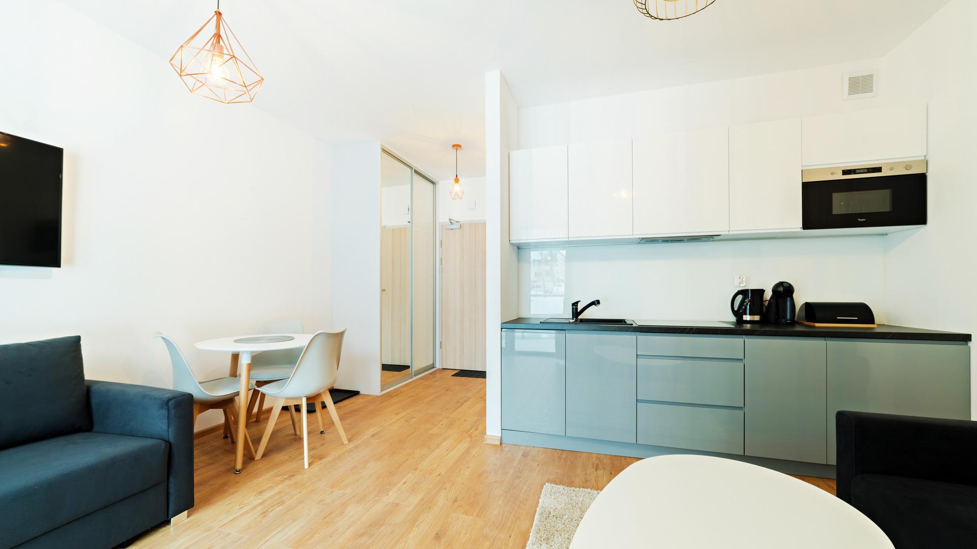 Jedes Apartment verfügt über eine gut ausgestattete Küchenzeile und Internetzugang.