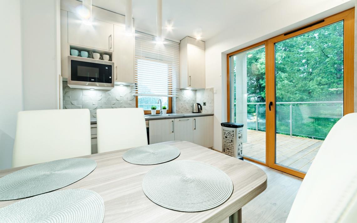Jedes Apartment verfügt über eine gut ausgestattete Küchenzeile und Internetzugang.