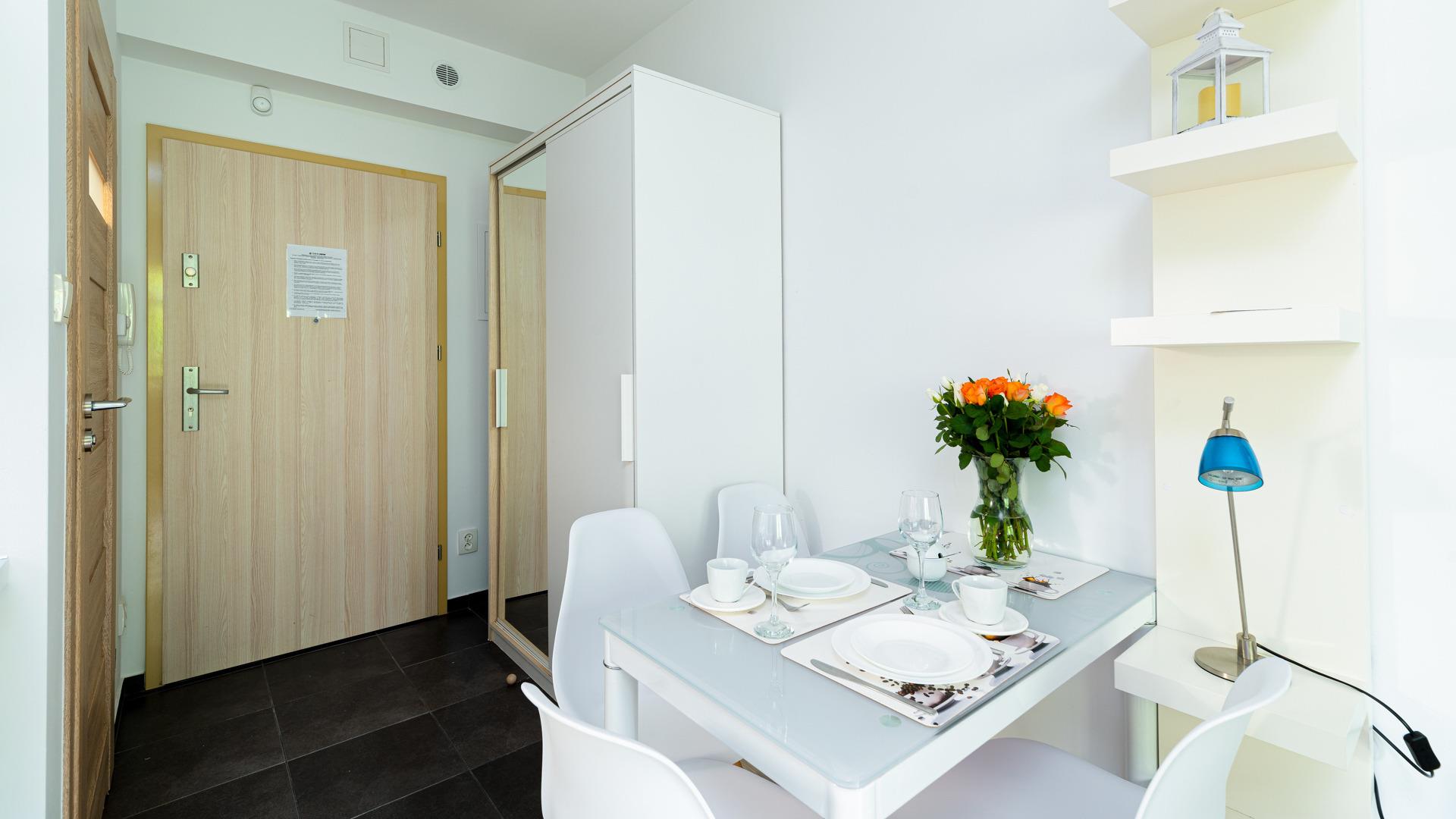 Die Wohnungen sind trotz ihrer geringen Fläche sehr funktionell und geräumig. Sie zeichnen sich durch einen hohen Ausstattungsstandard aus. Jedes von ihnen verfügt über eine Küchenzeile.
