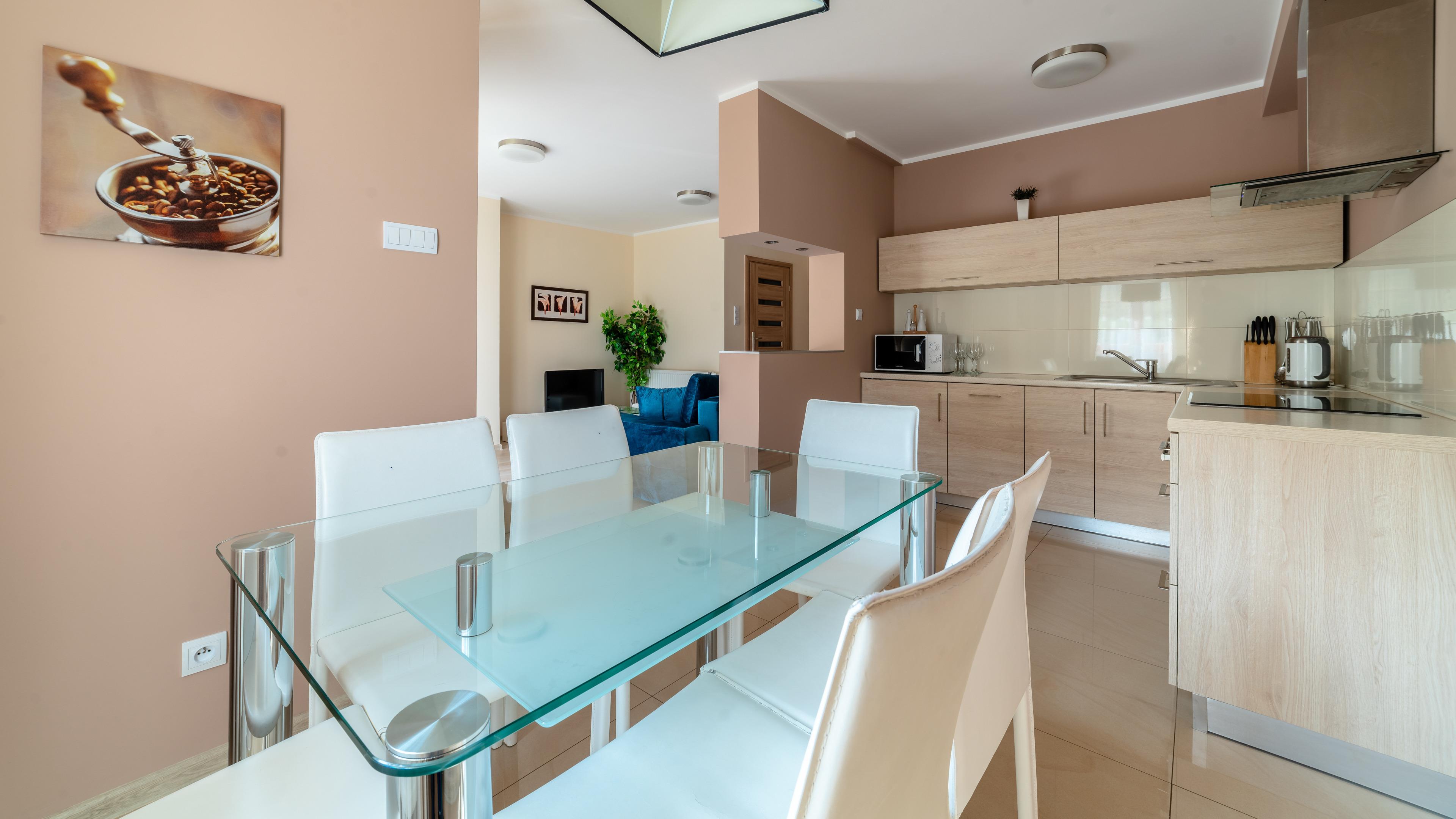 Zu den gewählten Apartments darf man mit dem Hund ankommen. Die zusätzlichen Kosten des Aufenthalts mit einem vierbeinigen Freund betragen 100 zl (Einzelgebühr). Die Gäste, die den Aufenthalt mit dem Hund planen, bitten wir um eine frühere Kontaktaufnahme mit unserem Service im lokalen Büro.