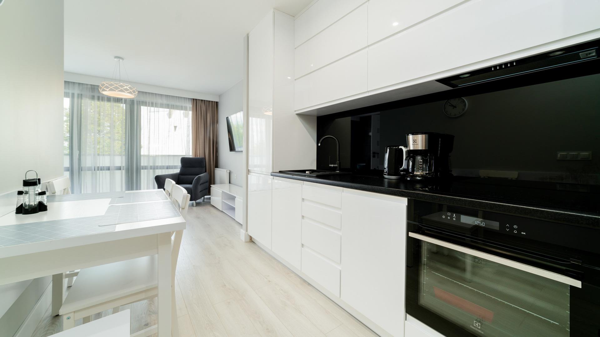 Alle angebotenen Apartments verfügen über eine voll ausgestattete Küchenzeile und ein elegantes Badezimmer mit Dusche.