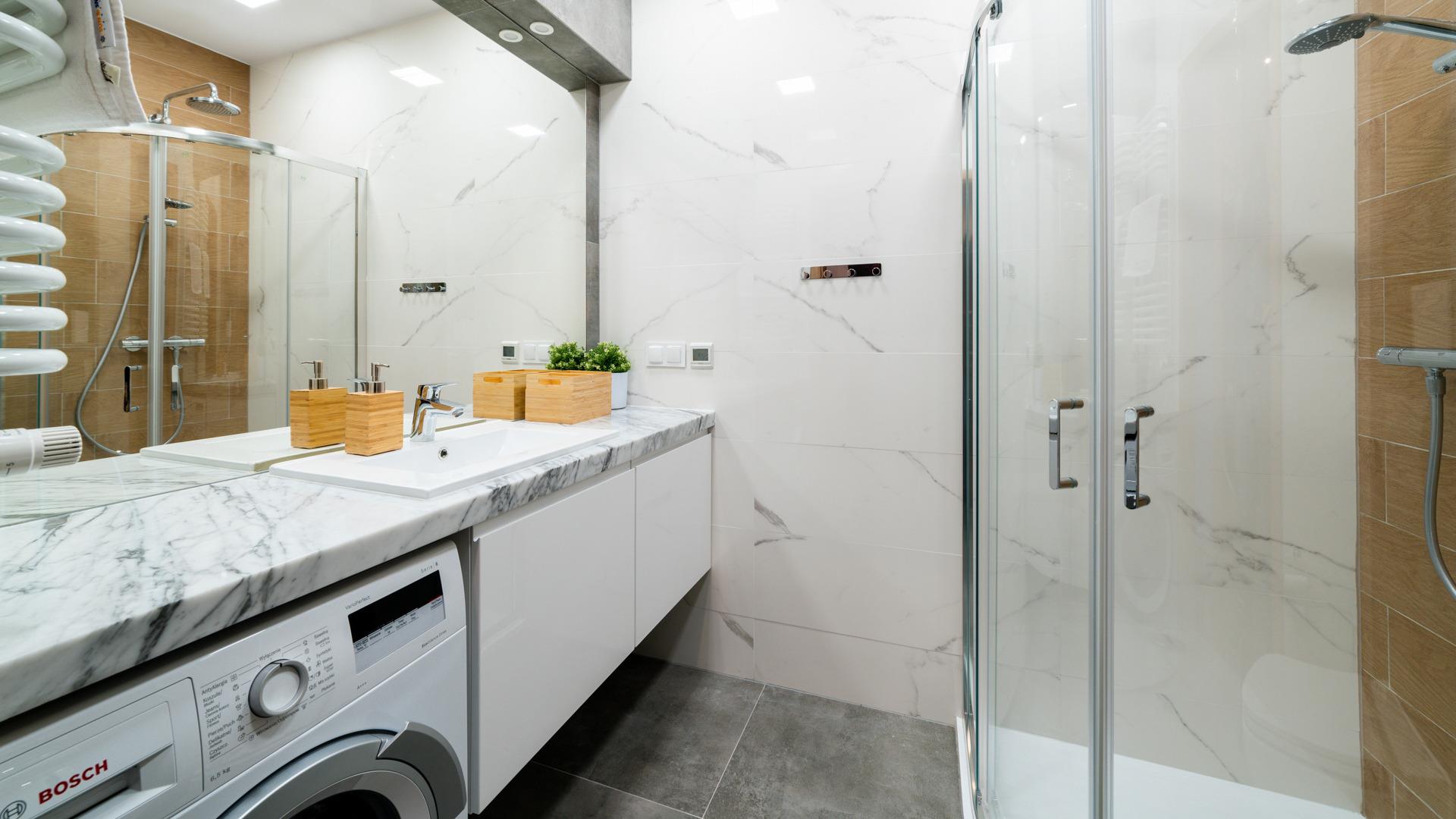Alle angebotenen Apartments verfügen über eine voll ausgestattete Küchenzeile und ein elegantes Badezimmer mit Dusche.