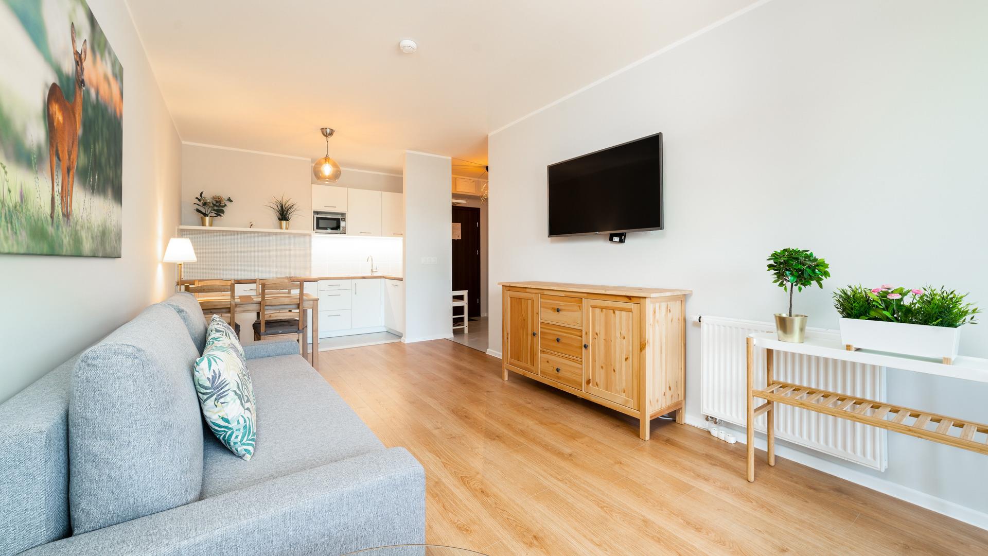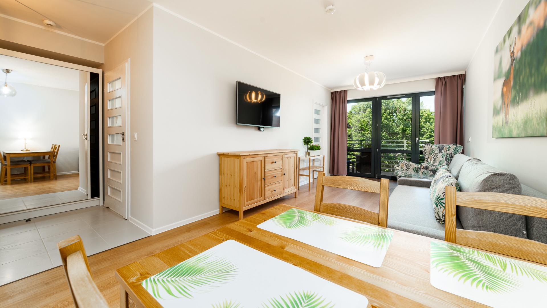 Zu den gewählten Apartments darf man mit dem Hund ankommen. Die zusätzlichen Kosten des Aufenthalts mit einem vierbeinigen Freund betragen 100 PLN (Einzelgebühr). Die Gäste, die den Aufenthalt mit dem Hund planen, bitten wir um eine frühere Kontaktaufnahme mit unserem Service im lokalen Büro.