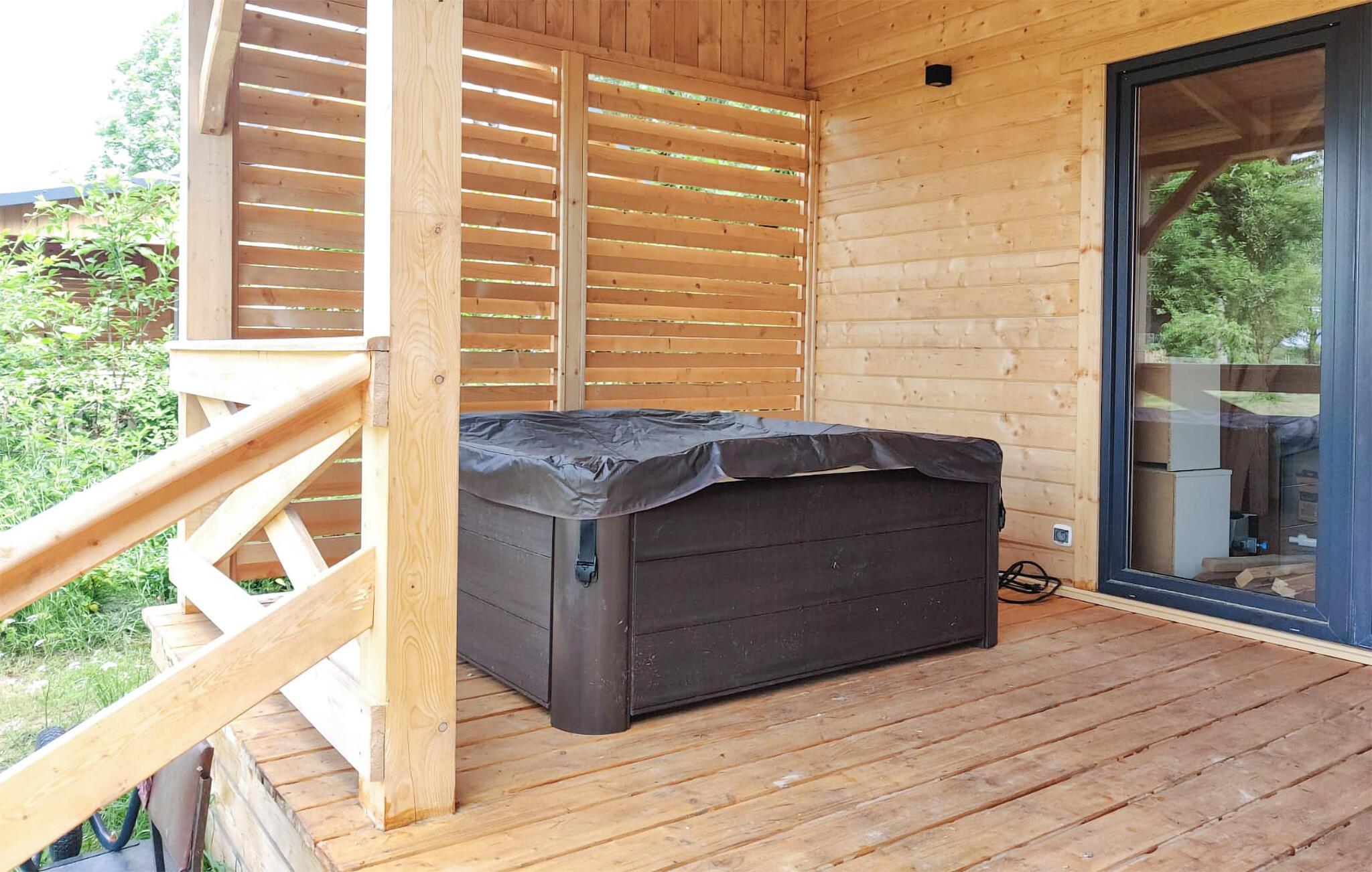 Idylle pur empfängt Sie in diesem schönen Holzhaus mit Fasssauna und Whirlpool.
