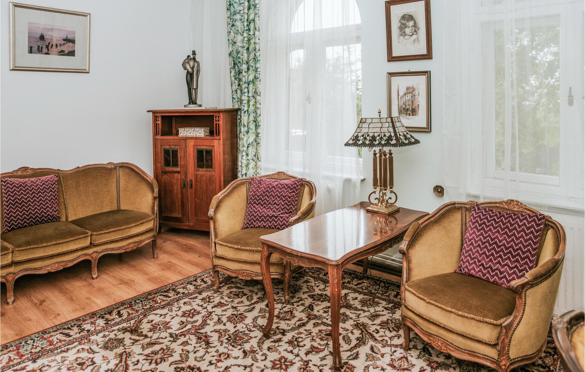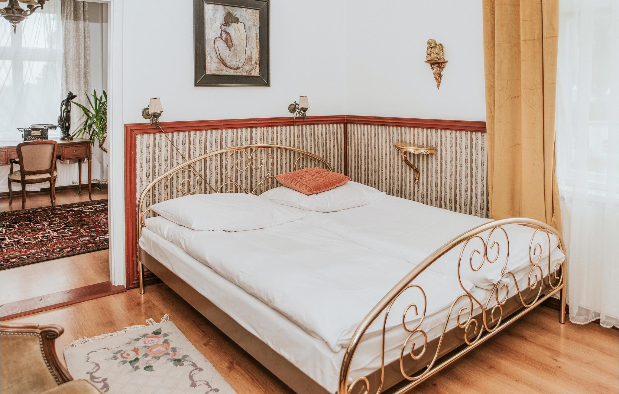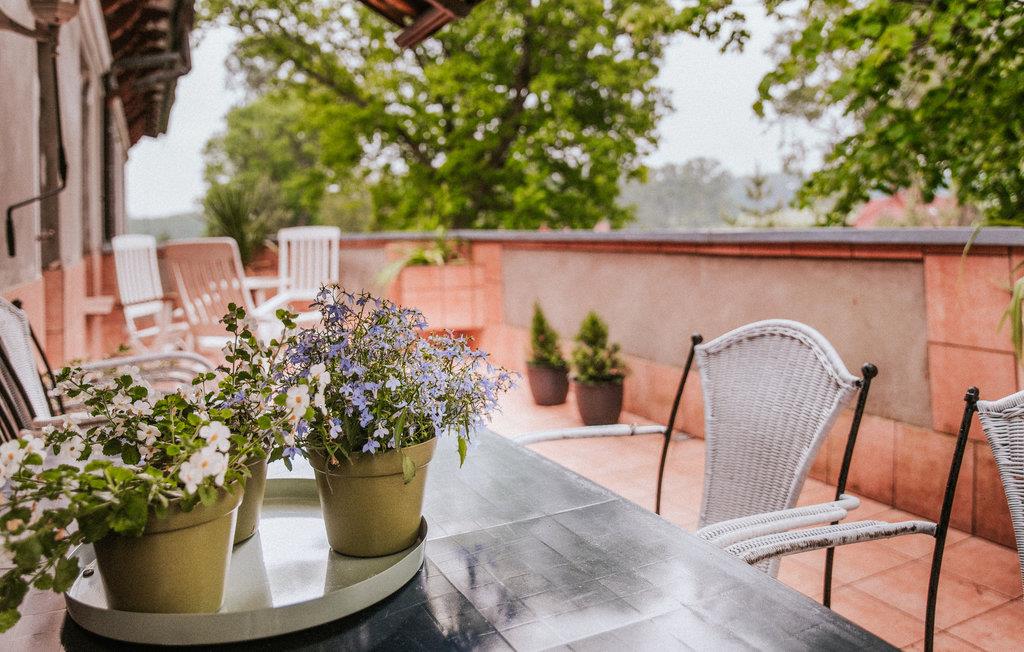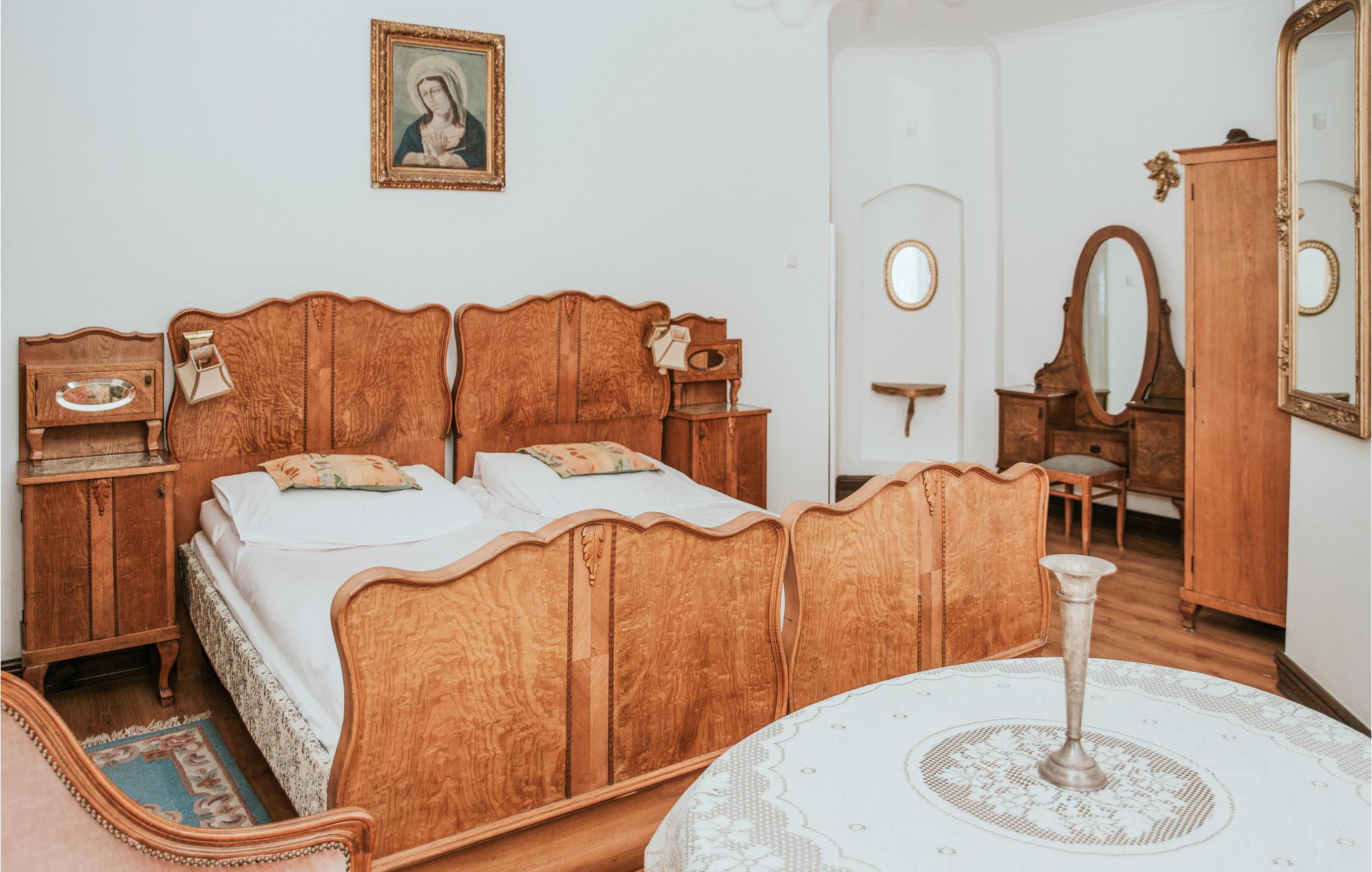 Diese einladende Ferienwohnung empfängt Sie in schöner Lage in einem alten Gebäude auf einem gemeinsamen Grundstück. Der Urlaubsort passt perfekt zu zwei befreundeten Familien oder einer Gruppe von Freunden. Die Räume erhalten ihren besonderen Charme durch die auffallenden Möbeln im altmodischen eleganten Stil, die warmen Farben, viele niedliche Details, hölzerne Elemente, große Fenster und schöne Vorhänge. Hier fühlen Sie sich wie auf einer Zeitreise in die Vergangenheit. Unterhalten Sie sich unter dem Kronleuchter bei gutem Essen oder genießen Sie leckeres Grillessen auf der offenen Terrasse. Auf dem Balkon können Sie den Sonnenuntergang bewundern.