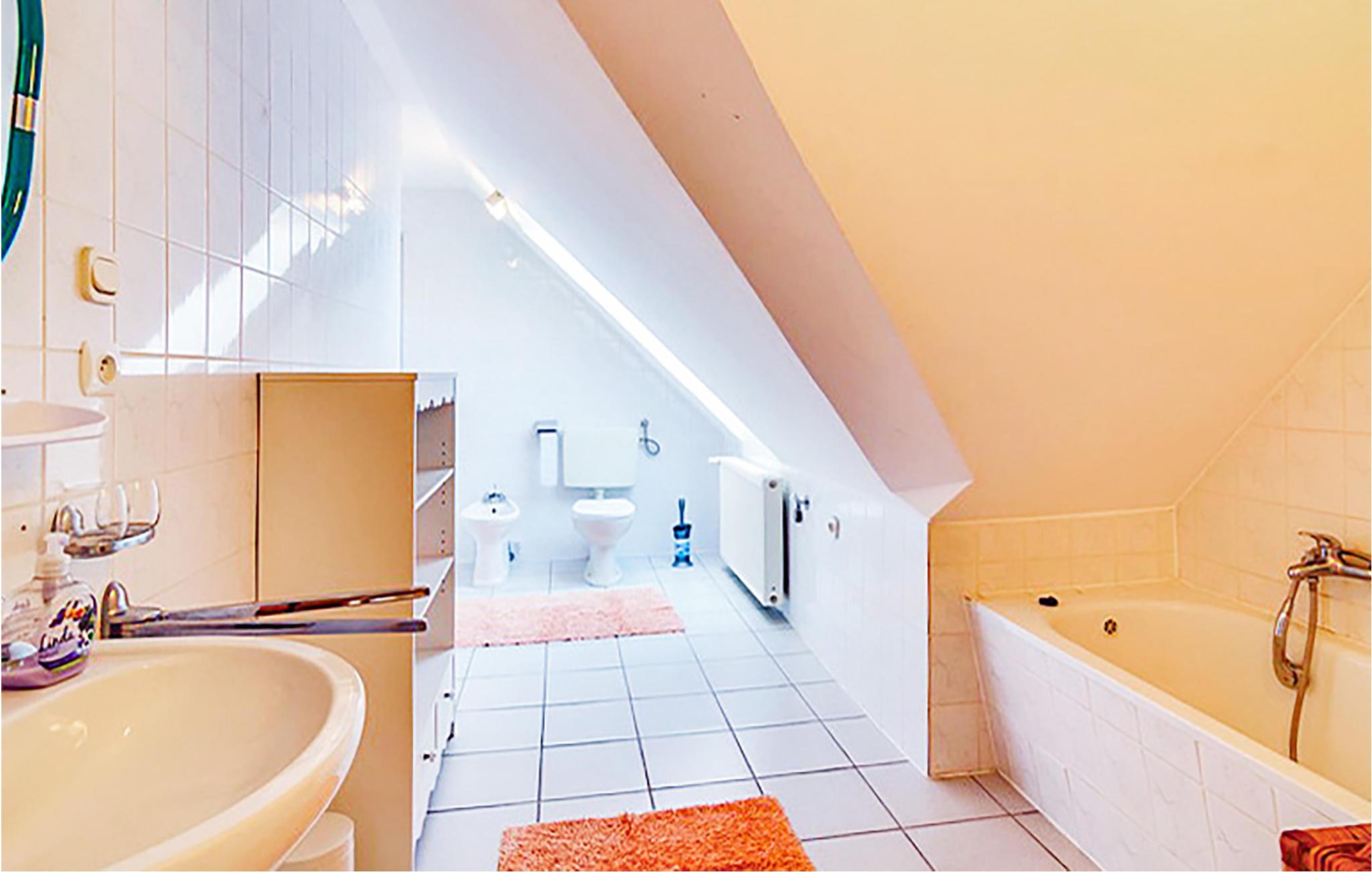 Badezimmer (nr. 2) - WC. Warmes und kaltes Wasser. Dusche und Badewanne