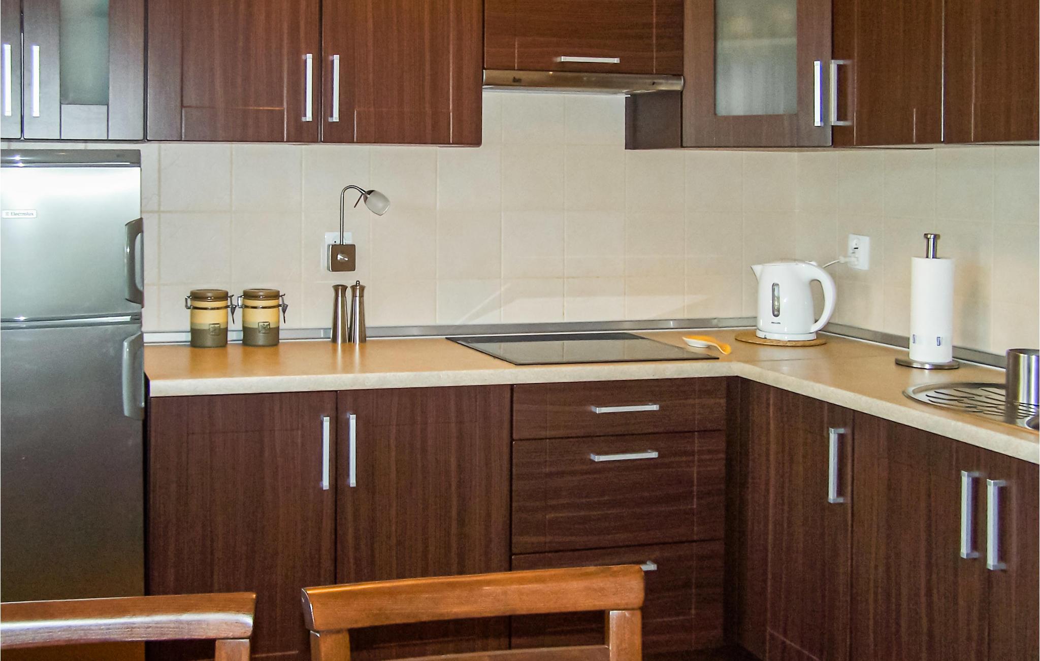Die Küchenzeile verfügt über heißes Wasser