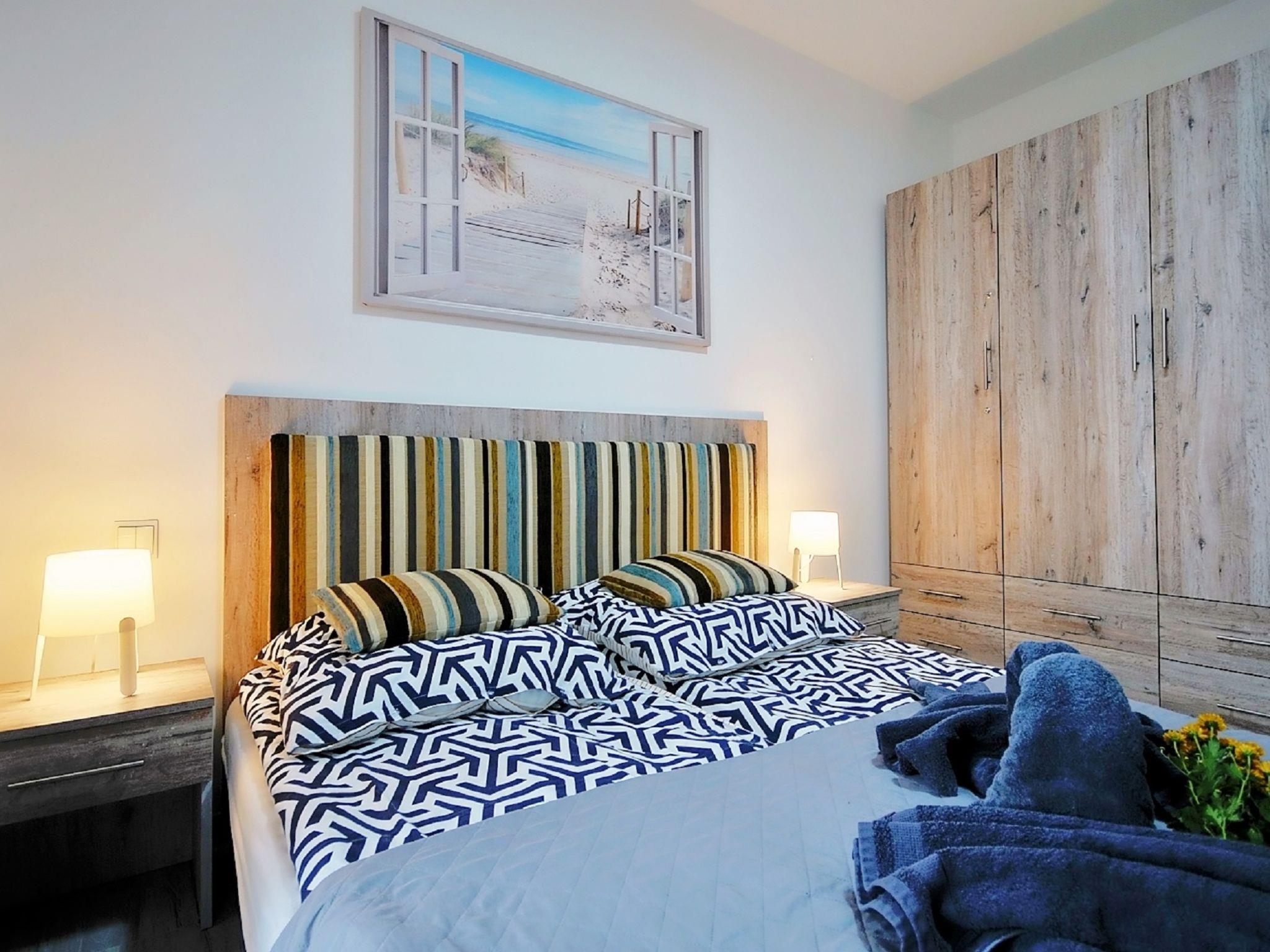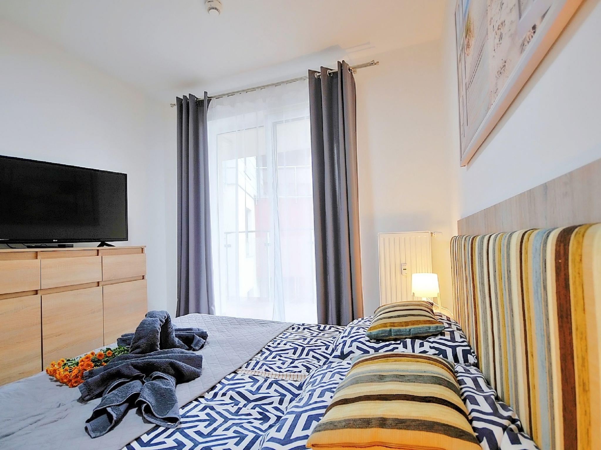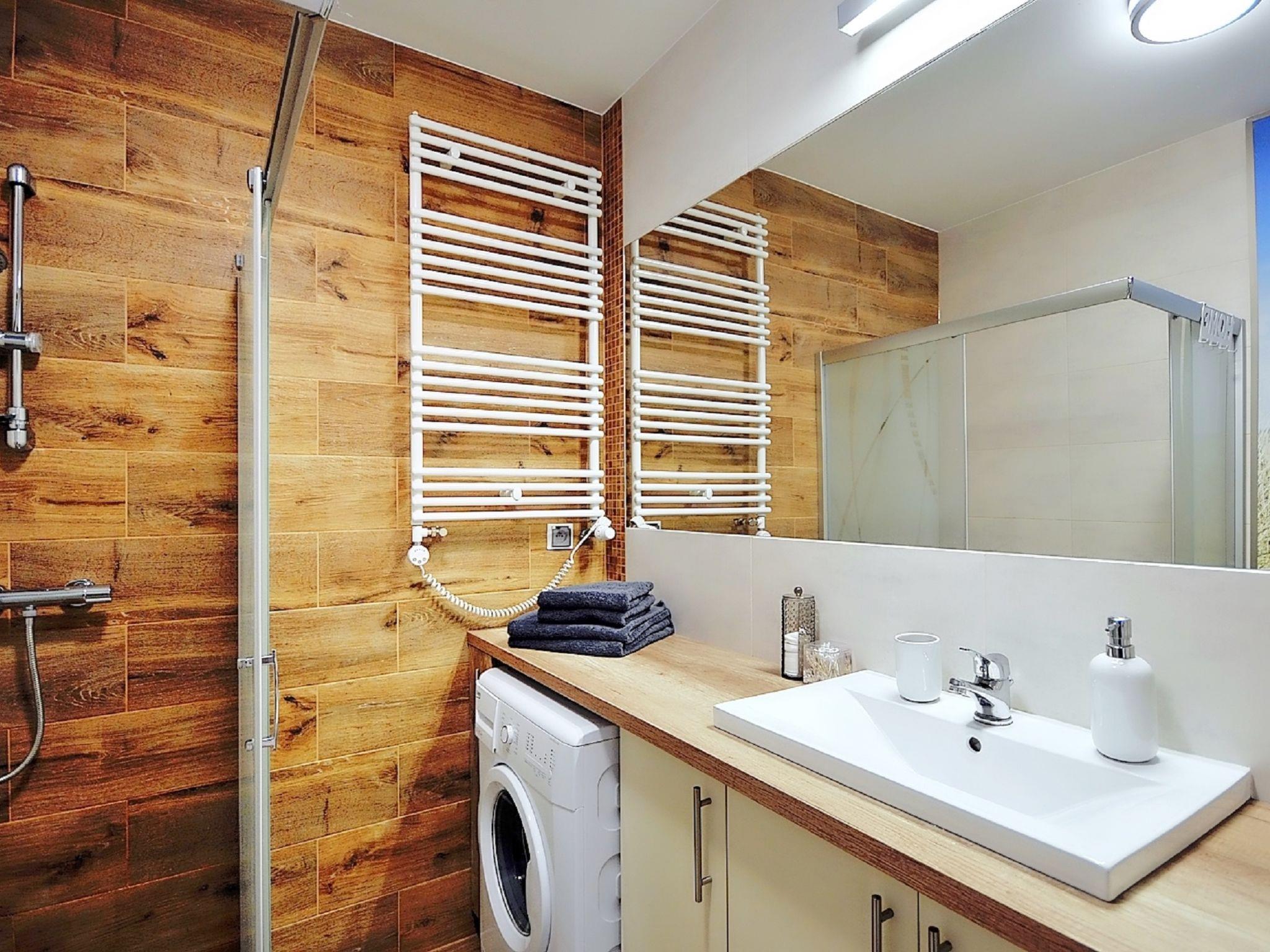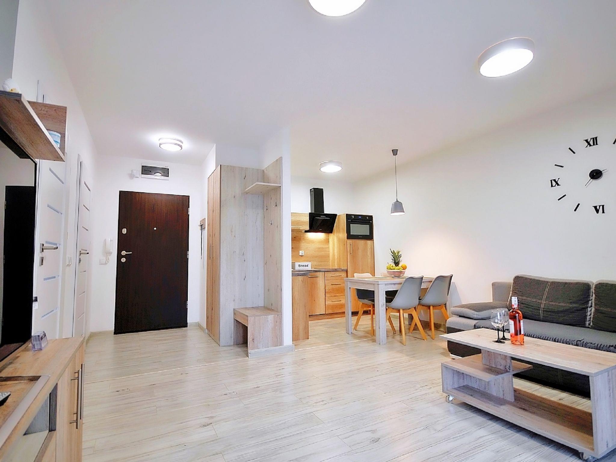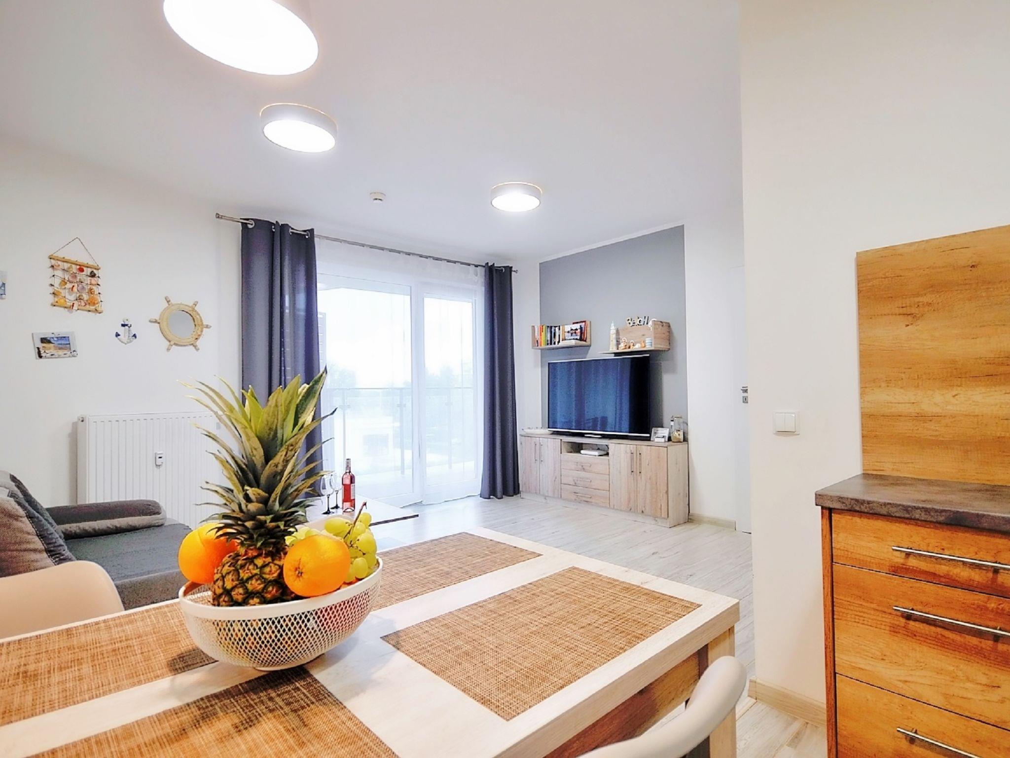 Modernes, komfortables Appartementhaus "Szum Morza", Baujahr 2017. Am Ortsrand, ruhige, sonnige Lage, 350 m vom Meer, im Grünen. Zur Mitbenutzung: Hallenbad beheizt (6 x 17 m, Öffnungszeiten Schwimmbad: 09:00-21:00). Dusche/WC im Poolbereich, Kinderbecken, Sprudelbad, Kinderspielplatz. Im Hause: Sauna, Fitnessraum, Spielzimmer, Fahrstuhl, Zentralheizung, Alarmanlage. Parkplatz beim Haus auf dem Grundstück, öffentliche Parkplätze auf der Strasse. Einkaufsgeschäft 1.3 km, Lebensmittelgeschäft 850 m, Supermarkt, Restaurant 300 m, Bushaltestelle 1.1 km, Bahnstation 2.5 km, Sandstrand 350 m. Sporthafen 3 km. Nahe gelegene Sehenswürdigkeiten: Oceanarium 3 km, Molo 3 km, Park Dziki Zachód Zieleniewo 7 km. Bewachte Residenz.