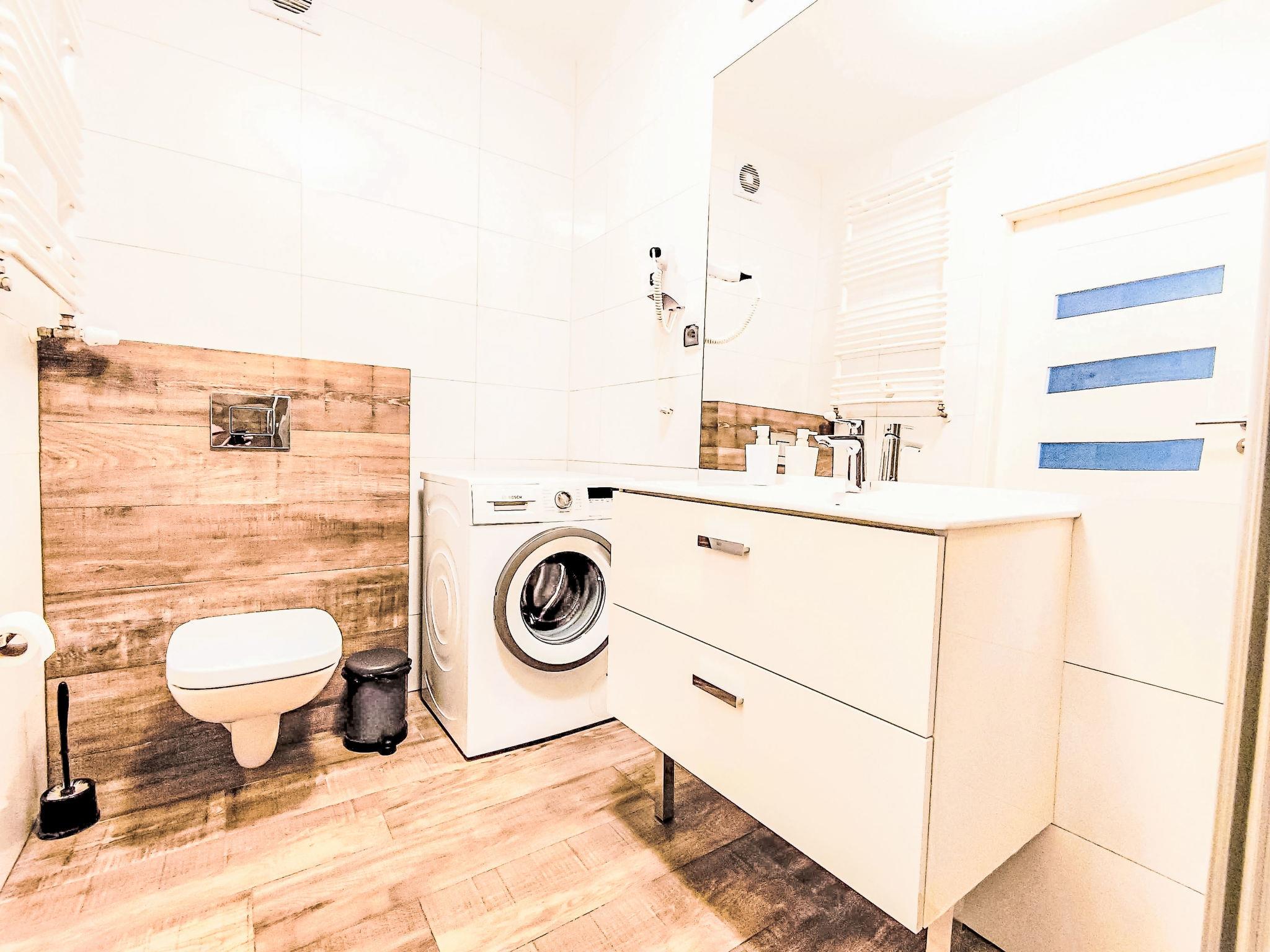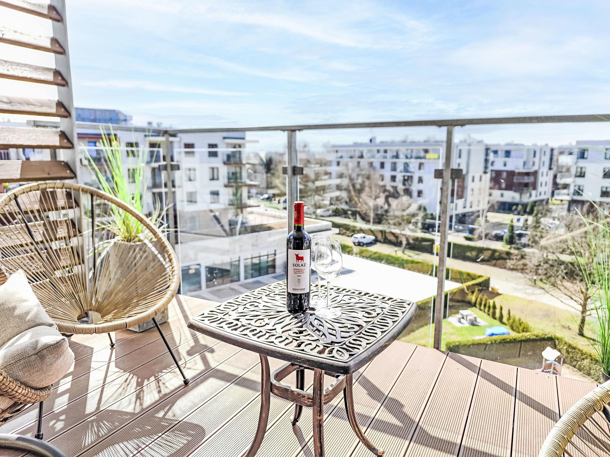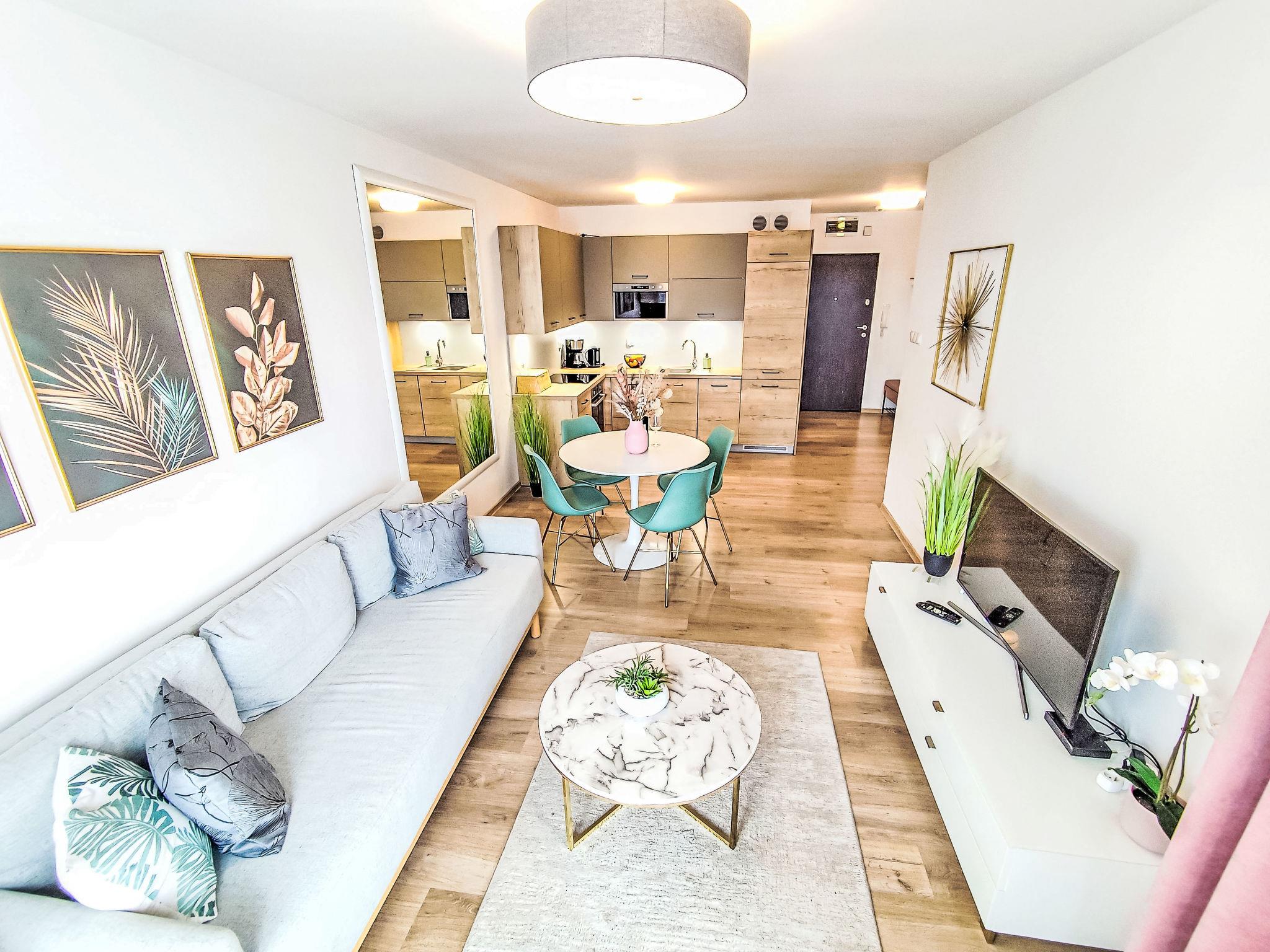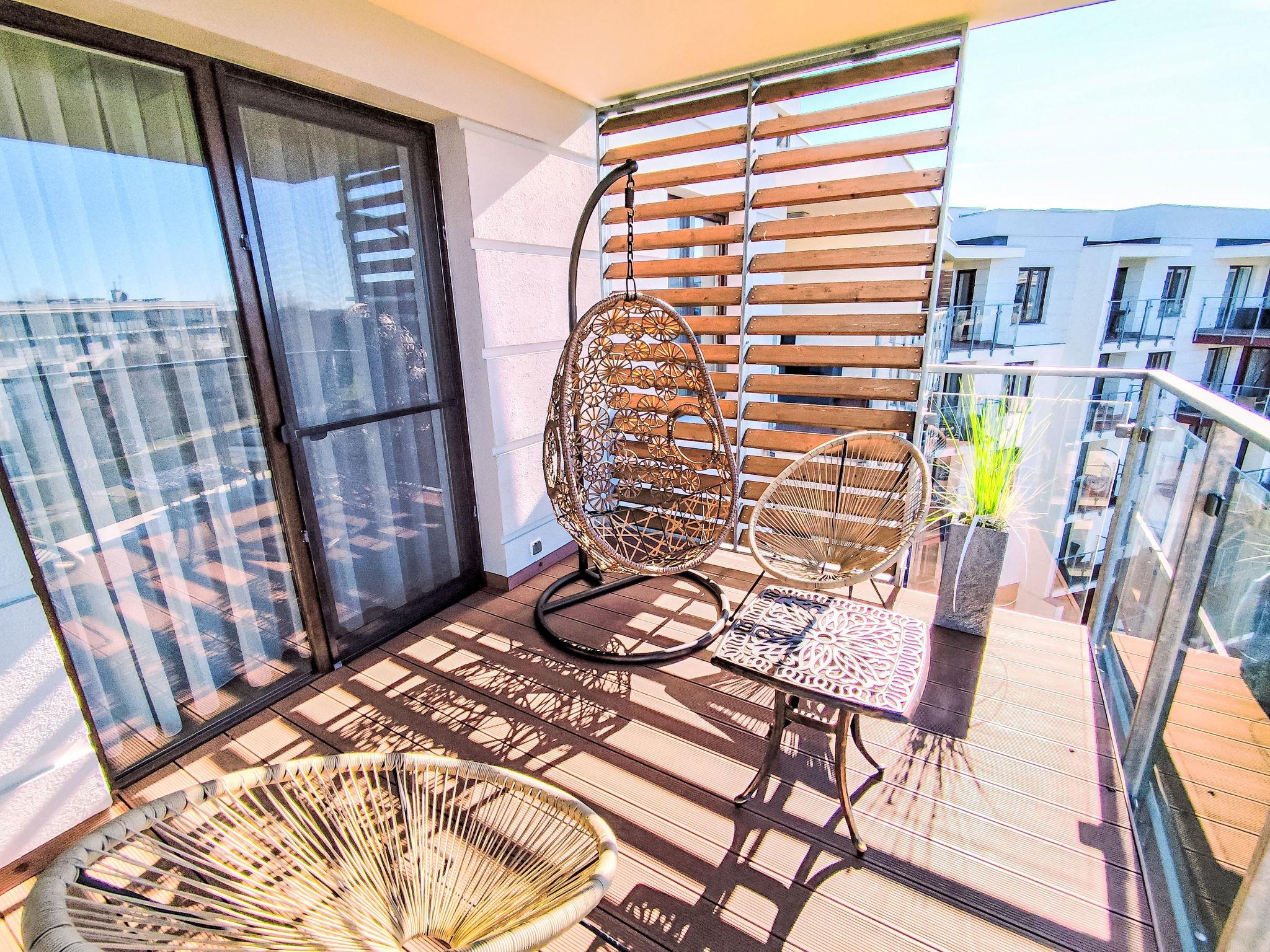Modernes, komfortables Appartementhaus "Szum Morza", Baujahr 2017. Am Ortsrand, ruhige, sonnige Lage, 350 m vom Meer, im Grünen. Zur Mitbenutzung: Hallenbad beheizt (6 x 17 m, Öffnungszeiten Schwimmbad: 09:00-21:00). Dusche/WC im Poolbereich, Kinderbecken, Sprudelbad, Kinderspielplatz. Im Hause: Sauna, Fitnessraum, Spielzimmer, Fahrstuhl, Zentralheizung, Alarmanlage. Parkplatz beim Haus auf dem Grundstück, öffentliche Parkplätze auf der Strasse. Einkaufsgeschäft 1.3 km, Lebensmittelgeschäft 850 m, Supermarkt, Restaurant 300 m, Bushaltestelle 1.1 km, Bahnstation 2.5 km, Sandstrand 350 m. Sporthafen 3 km. Nahe gelegene Sehenswürdigkeiten: Oceanarium 3 km, Molo 3 km, Park Dziki Zachód Zieleniewo 7 km. Bewachte Residenz.