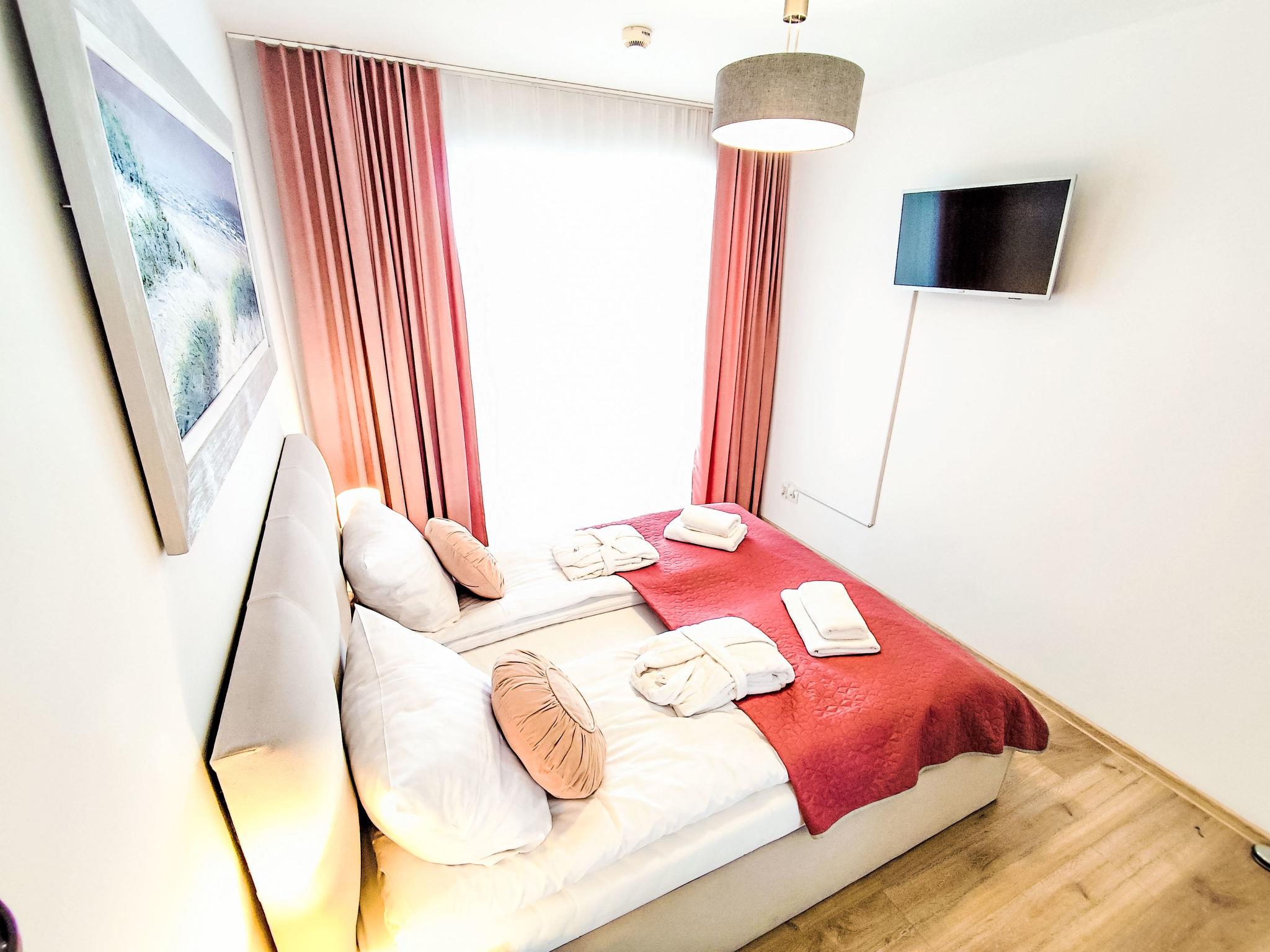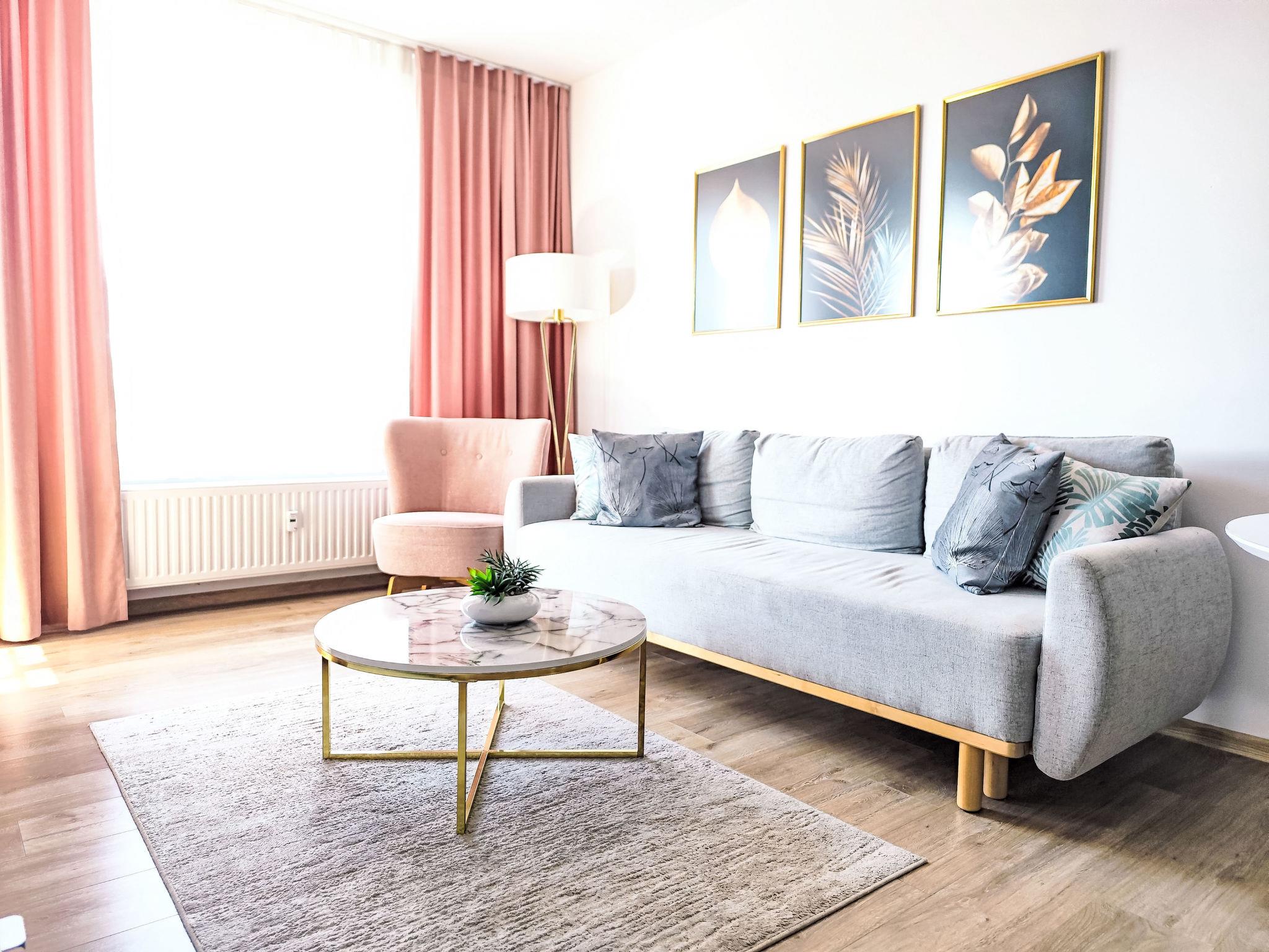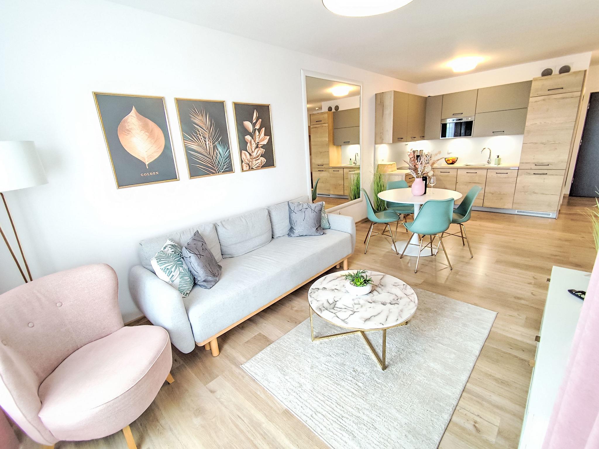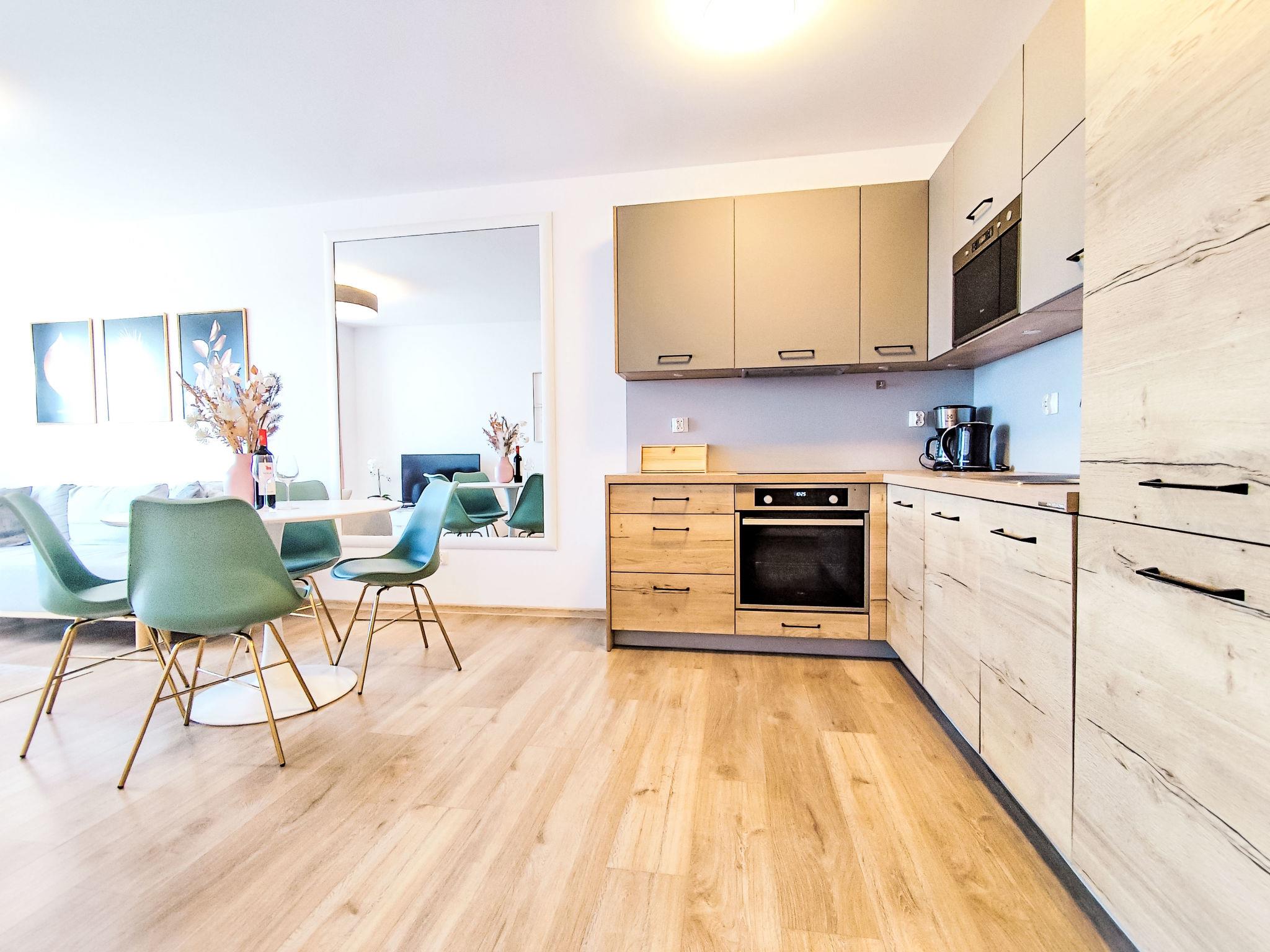 Modernes, komfortables Appartementhaus "Szum Morza", Baujahr 2017. Am Ortsrand, ruhige, sonnige Lage, 350 m vom Meer, im Grünen. Zur Mitbenutzung: Hallenbad beheizt (6 x 17 m, Öffnungszeiten Schwimmbad: 09:00-21:00). Dusche/WC im Poolbereich, Kinderbecken, Sprudelbad, Kinderspielplatz. Im Hause: Sauna, Fitnessraum, Spielzimmer, Fahrstuhl, Zentralheizung, Alarmanlage. Parkplatz beim Haus auf dem Grundstück, öffentliche Parkplätze auf der Strasse. Einkaufsgeschäft 1.3 km, Lebensmittelgeschäft 850 m, Supermarkt, Restaurant 300 m, Bushaltestelle 1.1 km, Bahnstation 2.5 km, Sandstrand 350 m. Sporthafen 3 km. Nahe gelegene Sehenswürdigkeiten: Oceanarium 3 km, Molo 3 km, Park Dziki Zachód Zieleniewo 7 km. Bewachte Residenz.