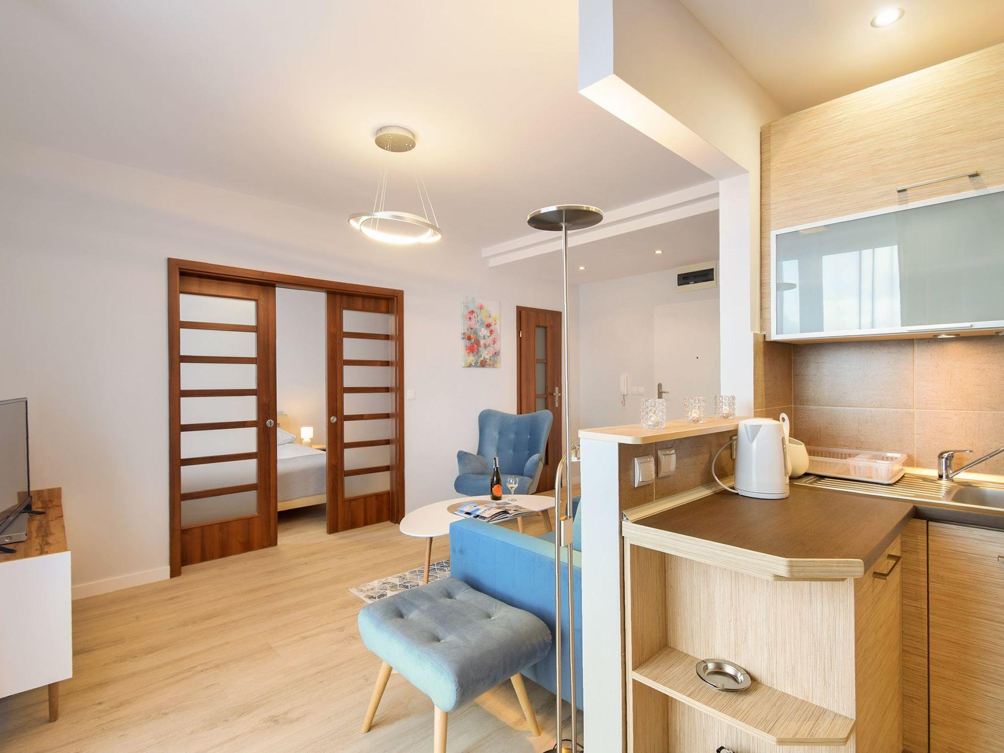 KASPROWICZA Apartment Gebäude befindet sich in der Kurstadt Kolberg entfernt und in unmittelbarer Nähe des Parque Marítimo, ca. 500 Meter vom Meer entfernt. Die Wohnung befindet sich in einem neuen IV-stöckigen Gebäude mit 2 Aufzügen und verfügt über eine Terrasse Urlaub-widokowo auf dem Dach, wo im Sommer die Liege kann nett zu hängen. Die Möglichkeit der aktiven Erholung bietet der Nähe der Basis Erholung - chirurgische Spa, Tennisplätze, Minigolf, Tennisplätze mit Flutlicht legen, Volleyball, eine umfangreiche Datenbank von SPA & Wellness, Schwimmbäder, Radwege usw. der Nähe befindet sich die Kapelle, wo Messe gefeiert. Das Auto kann bei der Wohnung (low rise), und einen sicheren Parkplatz auf der anderen Wohnung gelassen.KurzbeschreibungSonstiges : NichtraucherhausKurzbeschreibung 1Anzahl Küchen : 1Sonstige Räume : wenig Platz für GepäckWohnzimmer 1Sonstige Wohnzimmerausstattung : Wohnzimmer, wo es eine große fold-out 2-Sitzer-Sofa (140x200), Stuhl, TV, Satelliten-TV, DVD-Player und Gegensprechanlage Acy öffnen Außentüren;Schlafzimmer 1Sonstige Schlafzimmereinrichtung : Schlafzimmer mit Doppelbett (160x200) und einen großen Schrank-Garderobe für Kleidung, Ausrüstung und ihr Strand, Bügeleisen und-brett und Falten Wäschetrockner. Das Bett ist ein CD-Radio mit Wecker;Küche 1Sonstige Kücheneinrichtung : Küchenanlage mit Ceranfeld, Kühlschrank, Mikrowelle, Wasserkocher, Geschirr, Besteck, Töpfe, Besteck, usw. Die Küche verfügt über einen Tisch und Stühlen;UmgebungSportmöglichkeiten in der Umgebung : Angeln, Bolzplatz, Radtouren, Reitplatz / Reitmöglichkeiten, Segeln, Sportcenter, Tauchen, Tennis