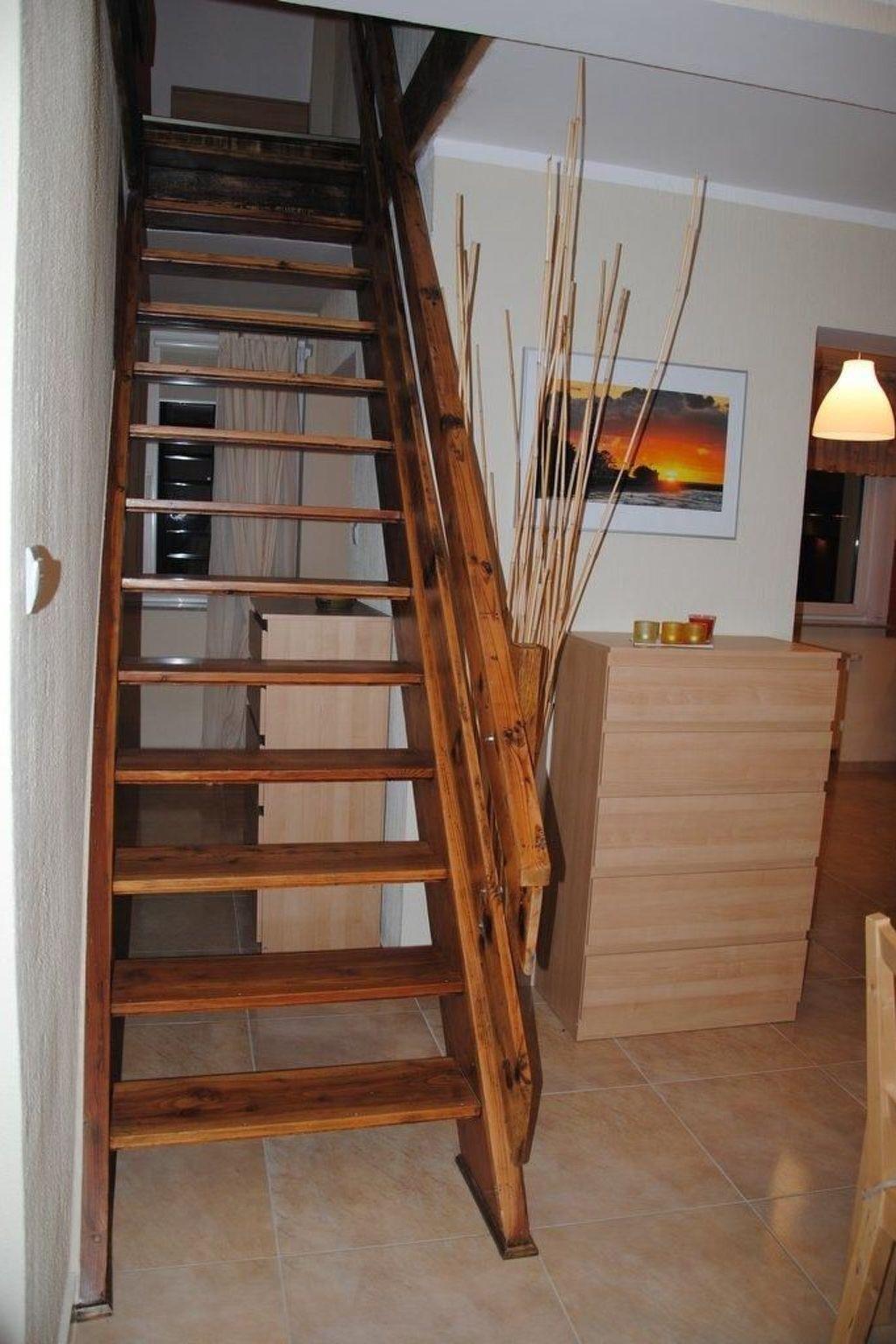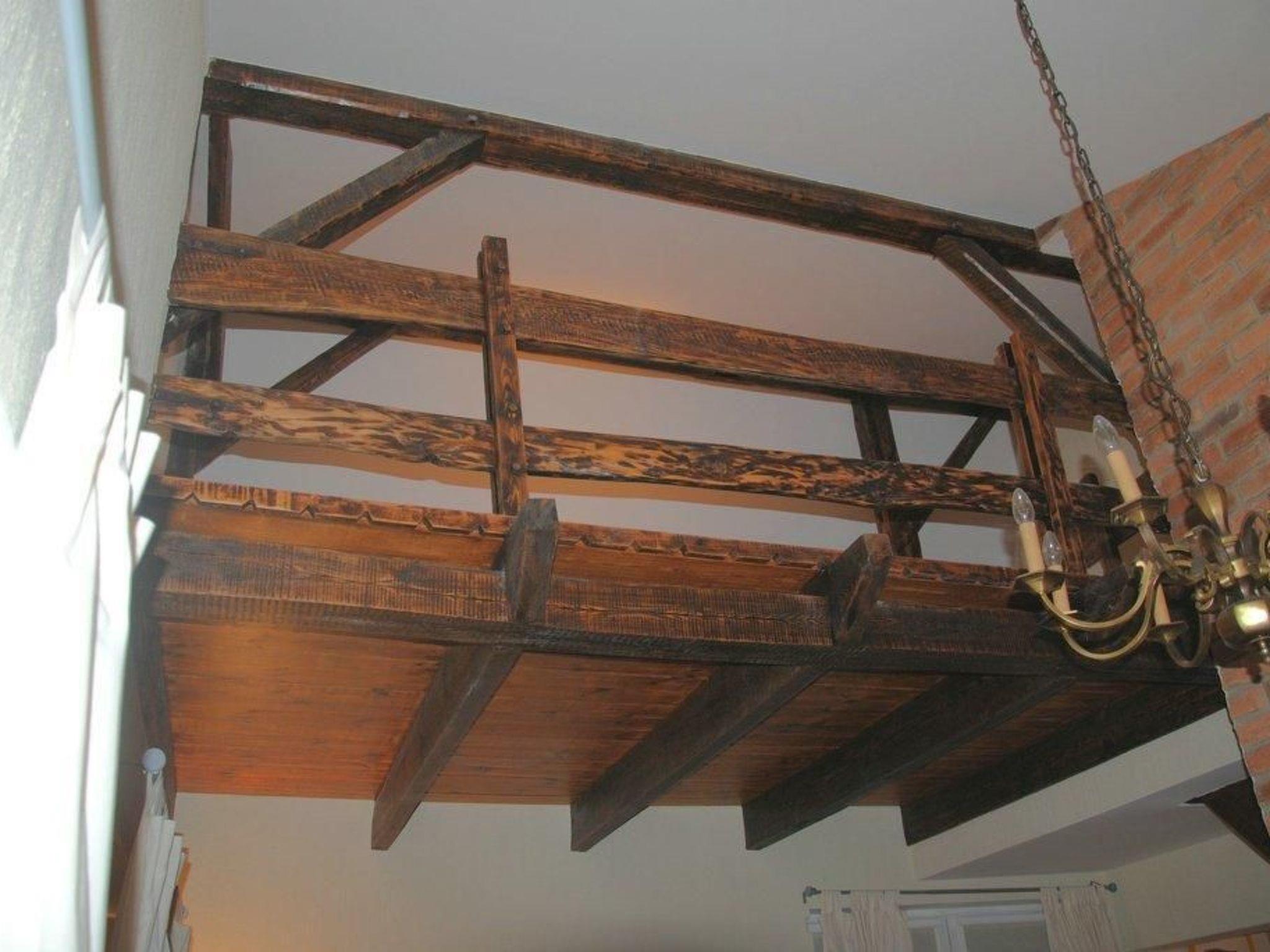 - Zwischengeschoss - (13 m²) mit Blick auf das Wohnzimmer, das über eine Treppe vom Esszimmer aus erreichbar ist; das Zwischengeschoss hat eine normale Höhe und bietet Platz für ein Doppelbett (160 x 200 cm);