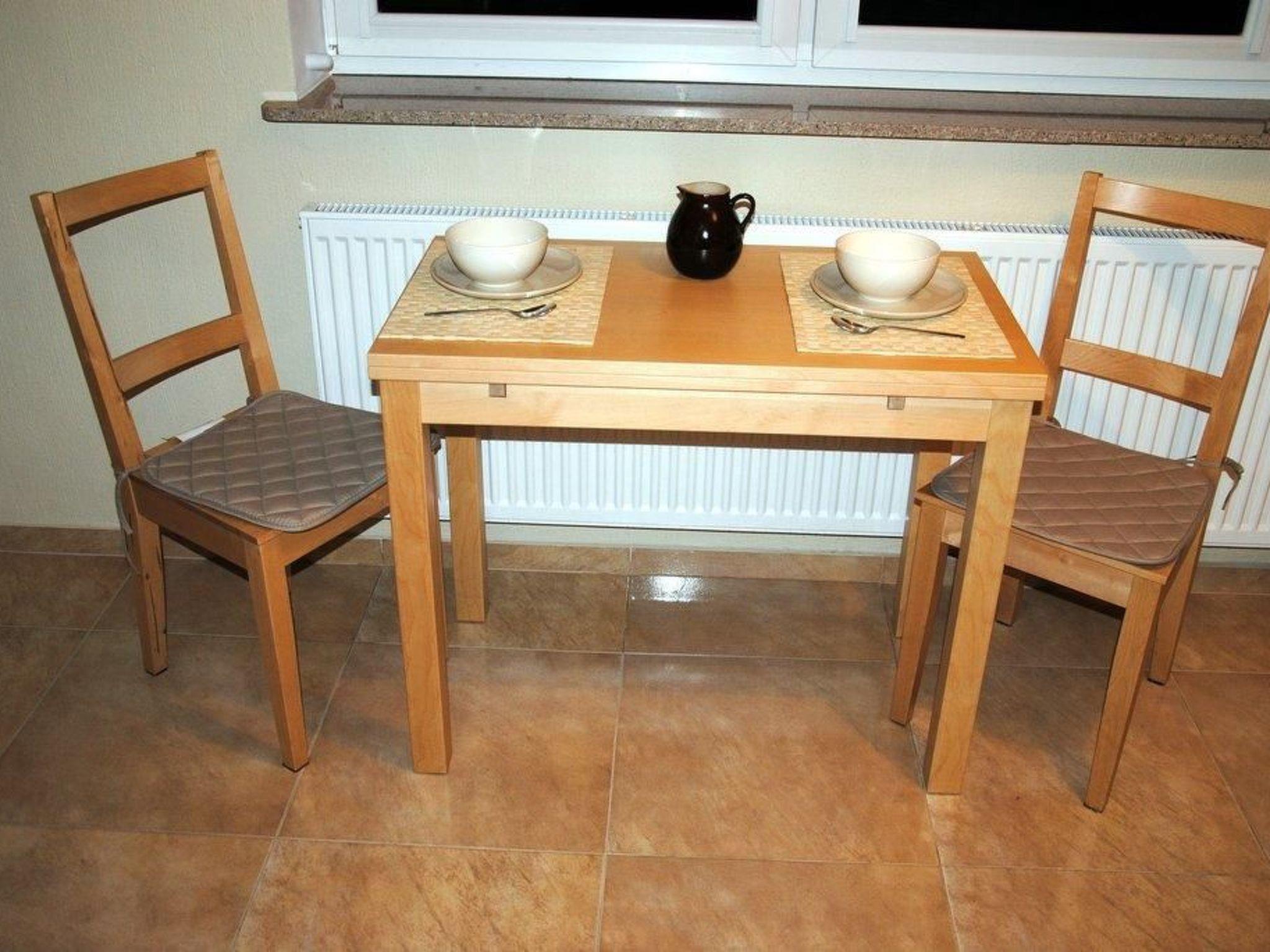 - Eine unabhängige, voll ausgestattete Küche mit Cerankochfeld, Backofen, Kühlschrank, Geschirrspüler, Geschirr, Töpfe, Besteck usw. Es gibt auch eine Mikrowelle, einen Wasserkocher und einen Toaster. In der Küche gibt es einen kleinen Tisch mit 2 Stühlen, an dem zwei Personen essen und Kaffee trinken können;
