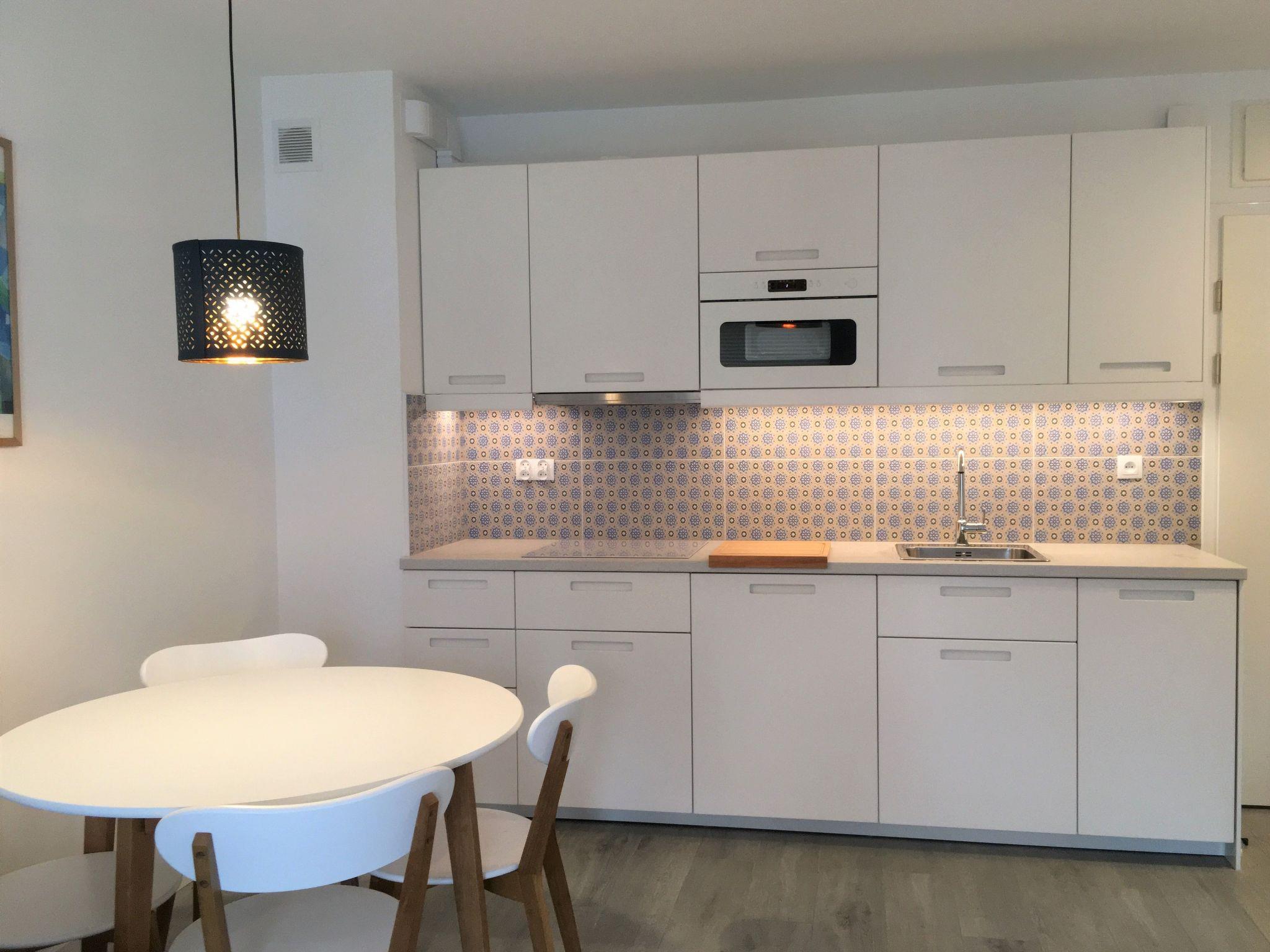 Die Wohnung bietet Platz für bis zu 4 Personen. Im Schlafzimmer befindet sich ein Doppelbett (160x200 cm), im Wohnzimmer eine Doppelschlafcouch (140x195cm). Im Wohnzimmer gibt es einen 43-Zoll-Fernseher mit Satellitenkanälen und Wifi, ein Radio mit CD, MP3 und Bluetooth. Sie können Ihre Lieblingsmusik dank Spotify hören. Die Küche ist komplett ausgestattet (Induktionskochfeld, Dunstabzug, Kühlschrank, Geschirrspüler, Mikrowelle, Wasserkocher, Toaster, Filterkaffeemaschine, Kaffeemaschine, Geschirr, Besteck, Töpfe und Pfannen).