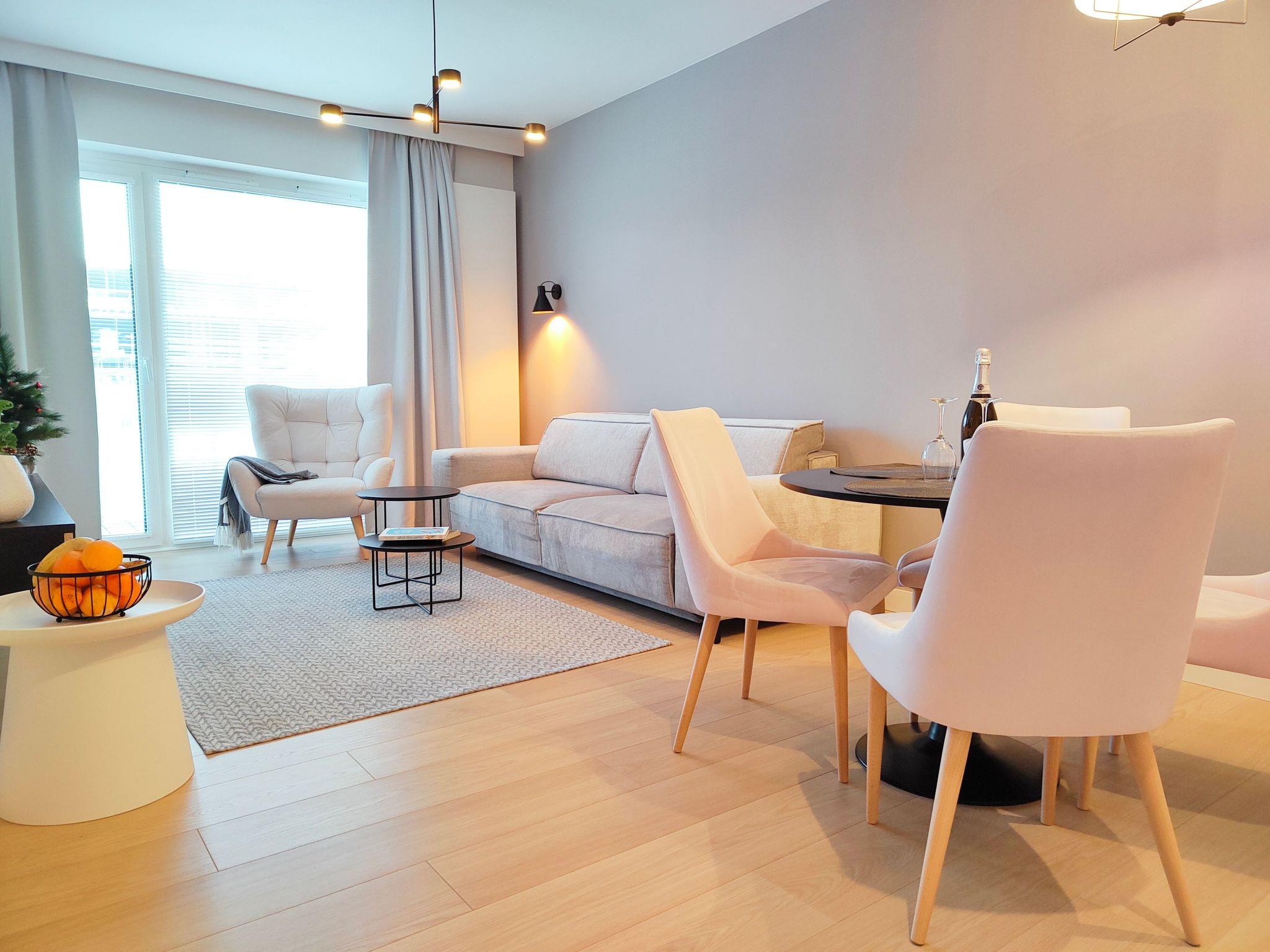 Unsere Zweizimmerwohnung bietet erstklassigen Wohnkomfort, ideal für Familien mit Kindern. Sie besteht aus einer voll ausgestatteten Küchenzeile, einem elegant eingerichteten Bad, einem Schlafzimmer mit Doppelbett und einem geräumigen Wohnzimmer mit Schlafsofa. Für maximalen Gästekomfort ist jedes Zimmer mit einem SMART-TV ausgestattet und wir bieten kostenlosen drahtlosen High-Speed-Internetzugang. Darüber hinaus können unsere Gäste einen privaten Parkplatz direkt vor der Wohnung nutzen.