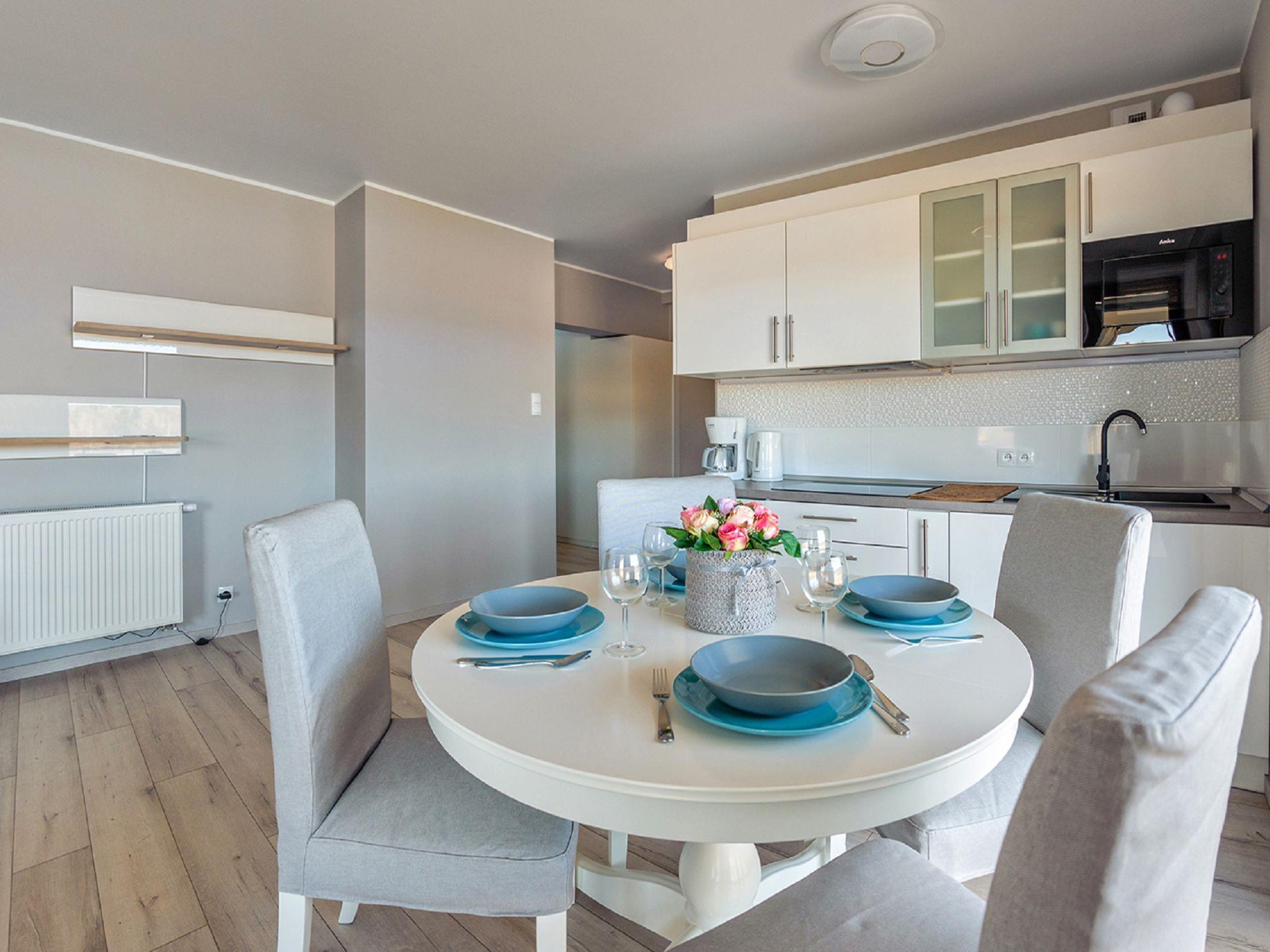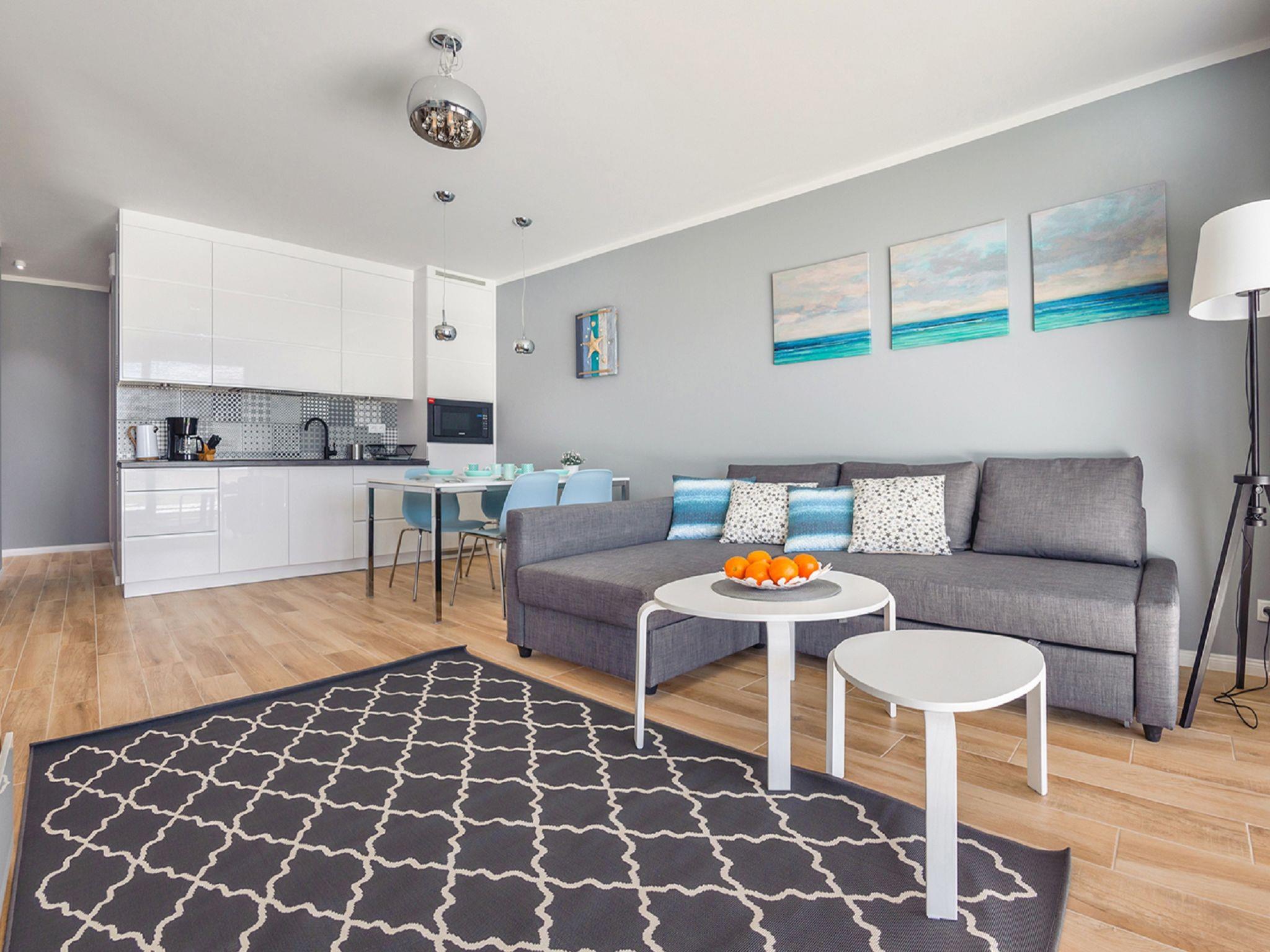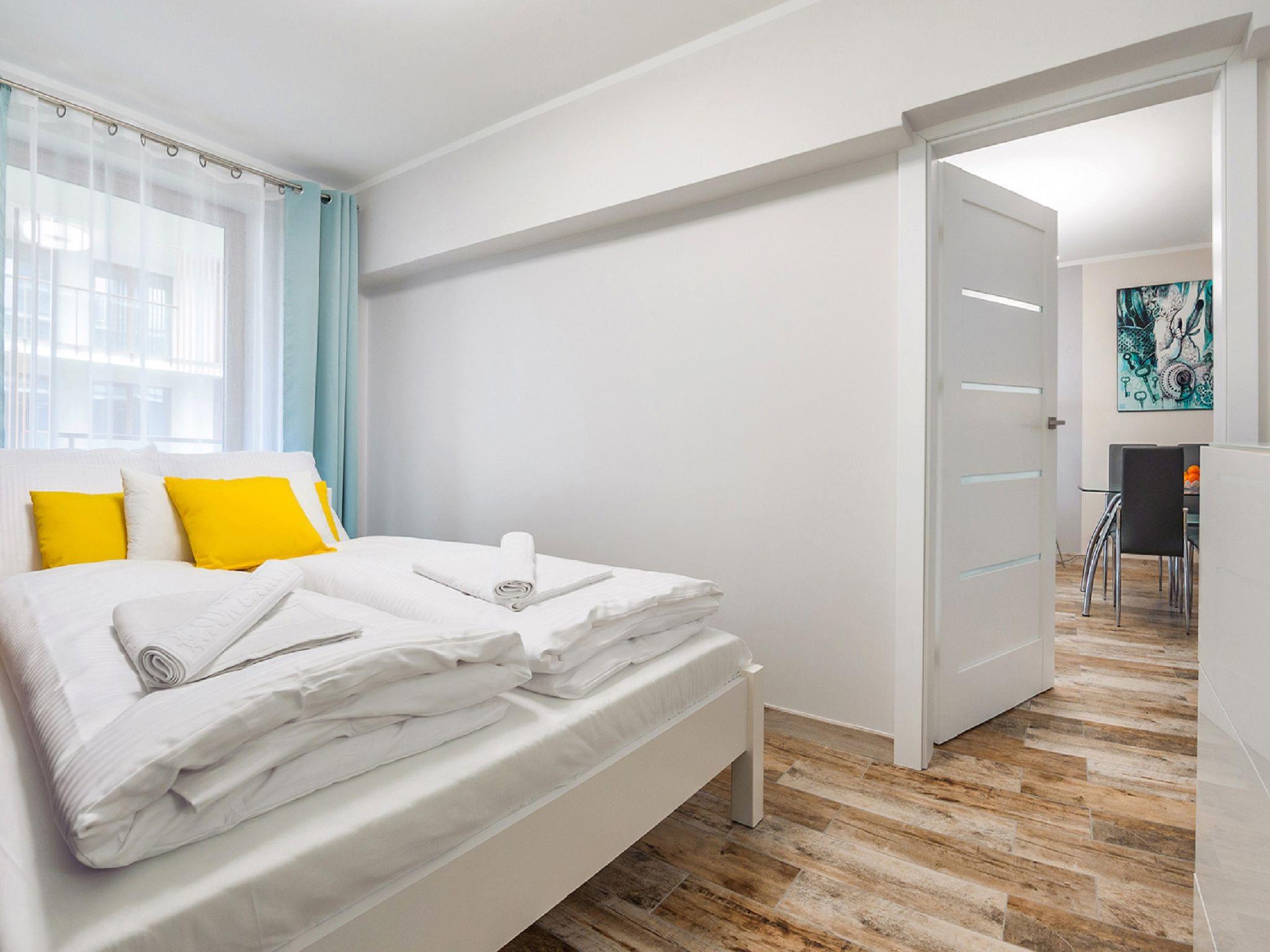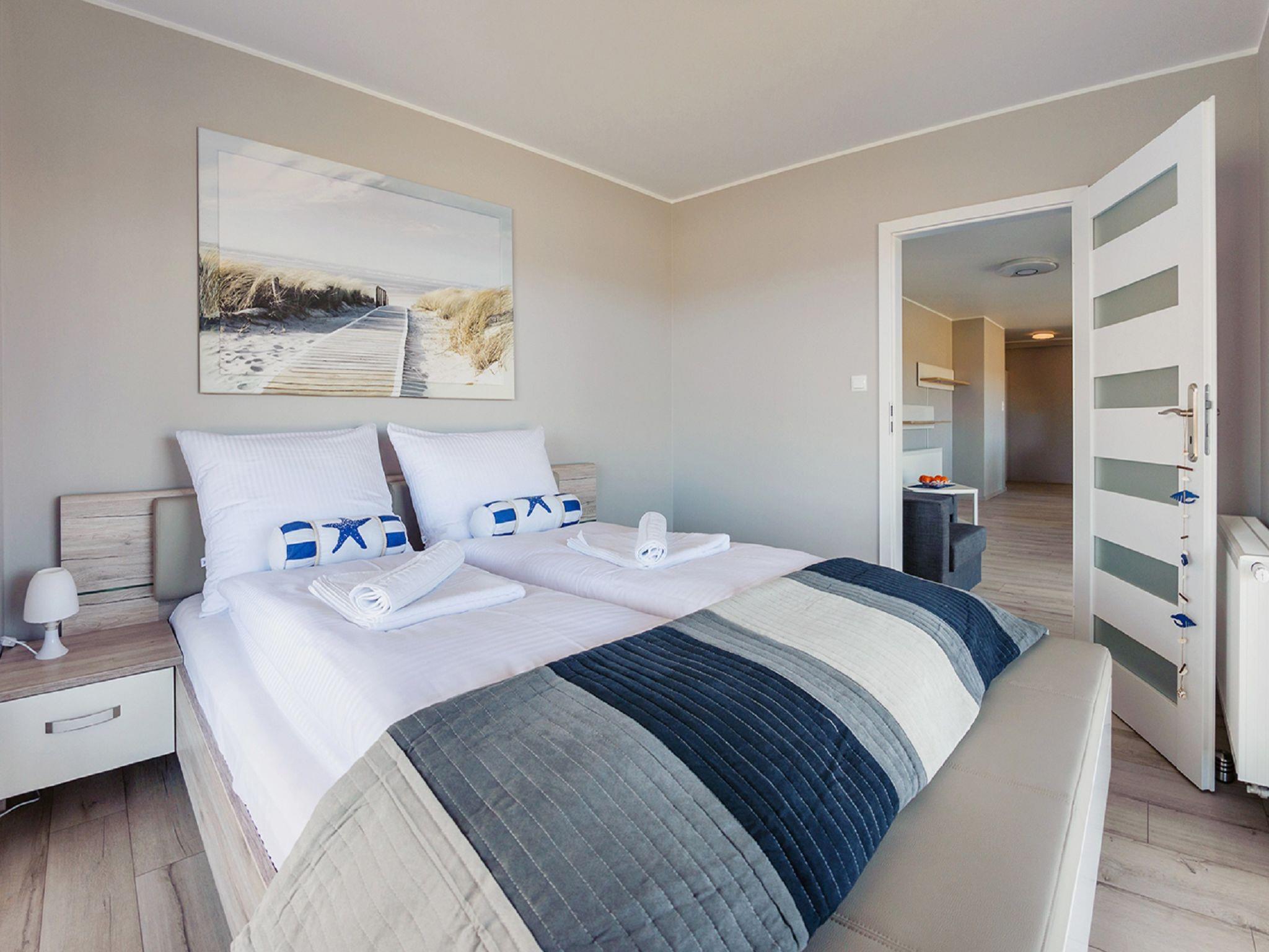 Modernes, gemütliches Appartementhaus "Resorts Kolobrzeg". Ruhige, sonnige Lage, 700 m vom Meer, 700 m vom Strand. Zur Mitbenutzung: Hallenbad (Öffnungszeiten Schwimmbad: 10:00-21:00). Im Hause: Wireless LAN, Sauna, Zentralheizung. Parkplatz, Gemeinschaftsgarage (extra). Bushaltestelle 13 km, Bahnstation 15.4 km. Nahe gelegene Sehenswürdigkeiten: Plaza Grzybowo 450 m, Molo w Kolobrzegu 2.3 km, Latarnia morska w Kolobrzegu 2.4 km. Bitte beachten: Das Foto ist nur ein Hausbeispiel. Weitere Unterkünfte sind buchbar.