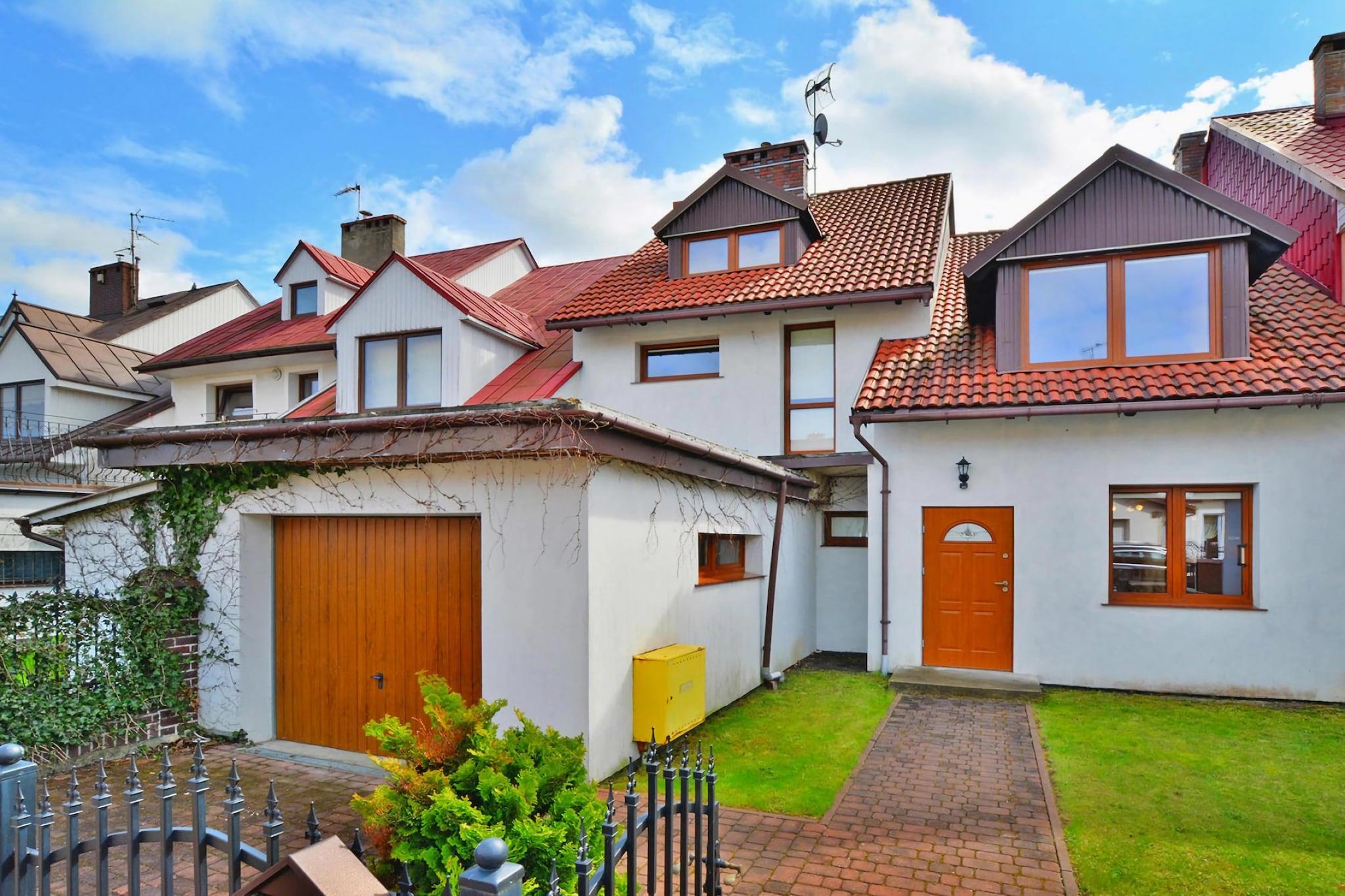 Ein geräumiges XXL-Reihenhaus mit moderner Ausstattung, in ruhiger Lage, zwei Kilometer vom Meeresstrand entfernt. Das Ortszentrum mit Geschäften, Restaurants und Bars ist 2,5 Kilometer entfernt. Das Ferienhaus bietet auf zwei Etagen ausreichend Platz für neun Personen. Der Garten mit großer Terrasse und Grill ist ein idealer Ort, um Sommerabende im Freien zu verbringen. Im Erdgeschoss gibt es ein geräumiges Wohnzimmer mit TV und einem großen Tisch. Die gut ausgestattete Küche ist teilweise mit dem Wohnzimmer verbunden. Im Erdgeschoss befindet sich außerdem ein Badezimmer mit Badewanne. Im ersten Stock befinden sich 3 separate Schlafzimmer und ein zweites Badezimmer (mit Dusche). Zur Ausstattung gehört eine Waschmaschine. Im Preis des Aufenthalts sind enthalten: Bettwäsche, Handtücher, Strom- und Wasserverbrauch, Heizung, Endreinigung, Internet, Parkplatz, Babybett, Hochstuhl. Die Wohnung befindet sich an einem solchen Ort, dass Sie bequem sowohl den ruhigeren Strand am Westufer des Flusses (Parseta) als auch den lauteren Strand am Ostufer des Flusses erreichen können, wo es mehr Attraktionen (Wasser) gibt Sport usw.). Die größte Attraktion des Spas ist der breite Strand. Darüber hinaus gibt es viele Spazierwege im Seepark, entlang der Strandpromenade, am historischen Pier und in der Altstadt. Es lohnt sich, den örtlichen Leuchtturm, das Ozeanarium, den Seehafen und die Kathedrale zu besuchen. Attraktionen in der Umgebung: Für Familien mit Kindern empfehlen wir den Besuch des Vergnügungsparks Pomerania Fun Park. Es handelt sich um einen ganzjährig geöffneten Park im Dorf Dygowo (ca. 15 km von Kolobrzeg entfernt). Es bietet zahlreiche Karussells und Trampoline. Es gibt ein Wikingerdorf, einen Mini-Zoo und viele andere Attraktionen. In Kolberg lohnt sich auch der Besuch eines Indianerdorfes, wo Sie etwas über die Regionen der indigenen Kulturen Nordamerikas erfahren können.
