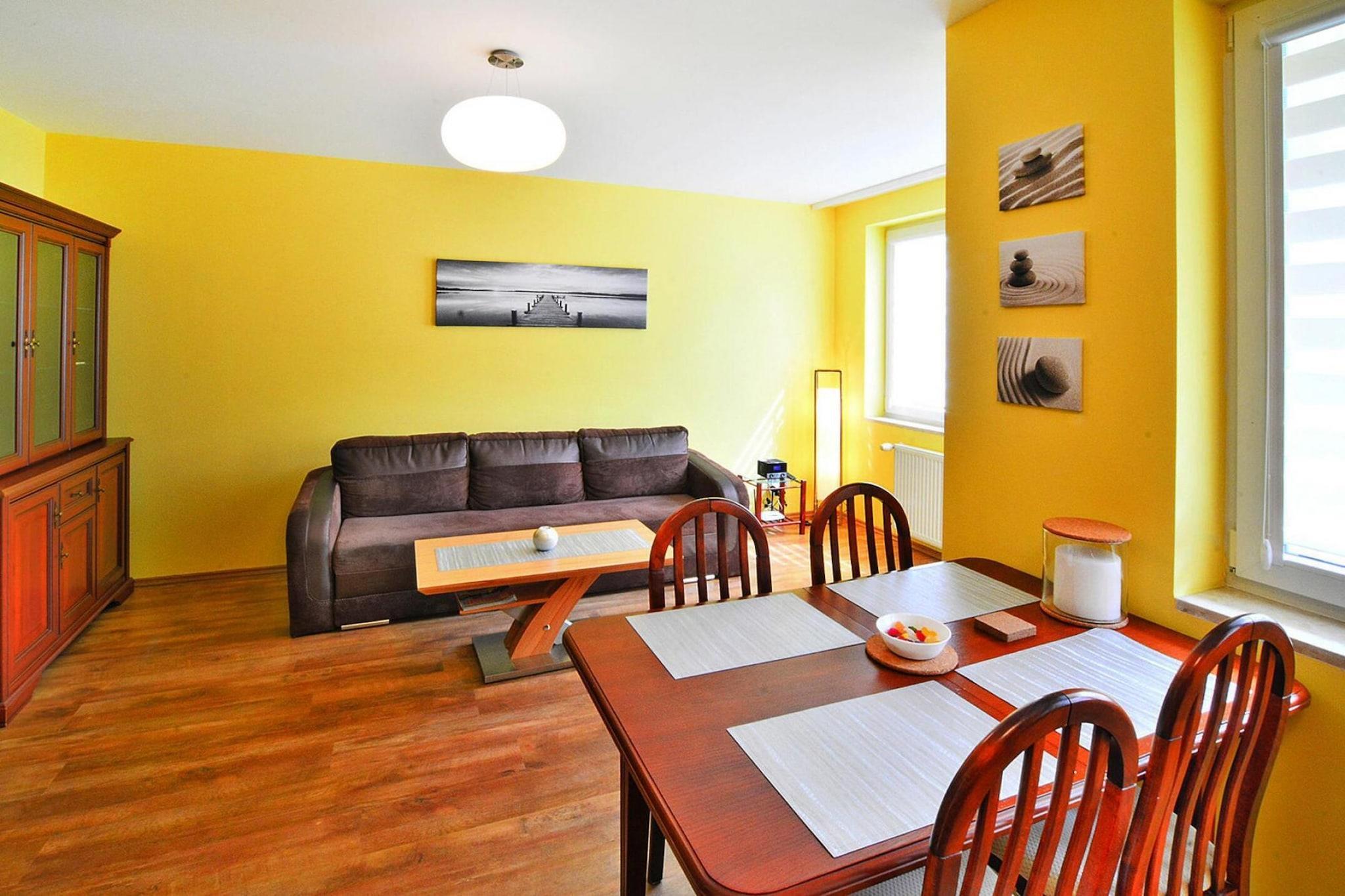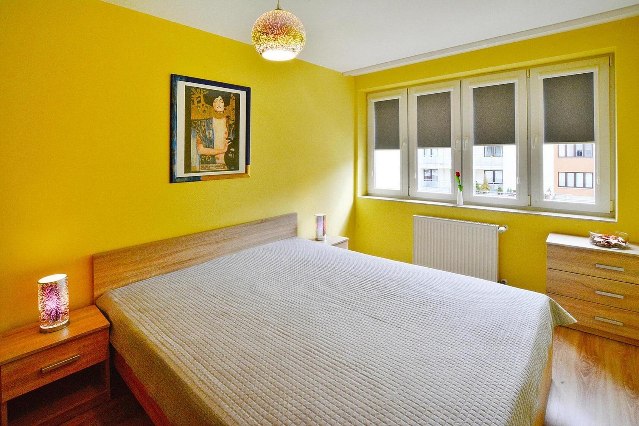 Schöne Wohnung 600 m vom Strand entfernt, in einem modernen Apartmentkomplex, im Kurzentrum des Resorts. In der Nähe befindet sich ein Küstenpark mit einem Netz von Wander- und Radwegen (einschließlich des Radwegs R-10, der Ihnen den Besuch der Nachbarstädte Grzybowo, Dzwirzyno, Sianozety, Ustronie Morskie ermöglicht). Komfortable Wohnung im 1. Stock. Es besteht aus einem geräumigen Wohnzimmer (ausziehbares Doppelsofa, TV, Tisch), einer sehr gut ausgestatteten Küche, einem Schlafzimmer und einem Badezimmer mit Dusche (es gibt eine Waschmaschine). Die Wohnung verfügt über einen überdachten Balkon. Zentralheizung. WLAN ist verfügbar. Eine große Entspannungsterrasse auf dem Dach des Gebäudes sowie ein Fitnessraum stehen allen Gästen der Anlage zur Verfügung. Rund um das Gebäude befindet sich ein öffentlicher Parkplatz. Im Preis des Aufenthalts sind enthalten: Bettwäsche, Handtücher, Strom- und Wasserverbrauch, Endreinigung, Parkplatz, Internet. Die Wohnung liegt im westlichen Teil des Kurortes, in der Nähe des Küstenparks, der einen schnellen und bequemen Zugang zu Spazierwegen und attraktiven Radwegen ermöglicht. Die größte Attraktion des Kurortes Kolobrzeg ist zweifellos der breite Sandstrand am Meer. Darüber hinaus gibt es viele Spazierwege im Seepark, entlang der Strandpromenade, am historischen Pier und in der Altstadt. Es lohnt sich, den örtlichen Leuchtturm, das Ozeanarium, den Seehafen und die Kathedrale zu besuchen. Für Familien mit Kindern empfehlen wir den Besuch des Vergnügungsparks Pomerania Fun Park (Dygowo, ca. 15 km von Kolobrzeg entfernt). Es bietet zahlreiche Karussells und Trampoline. Es gibt ein Wikingerdorf, einen Mini-Zoo und viele andere Attraktionen. In Kolberg lohnt sich auch der Besuch eines Indianerdorfes, wo Sie etwas über die Regionen der indigenen Kulturen Nordamerikas erfahren können.