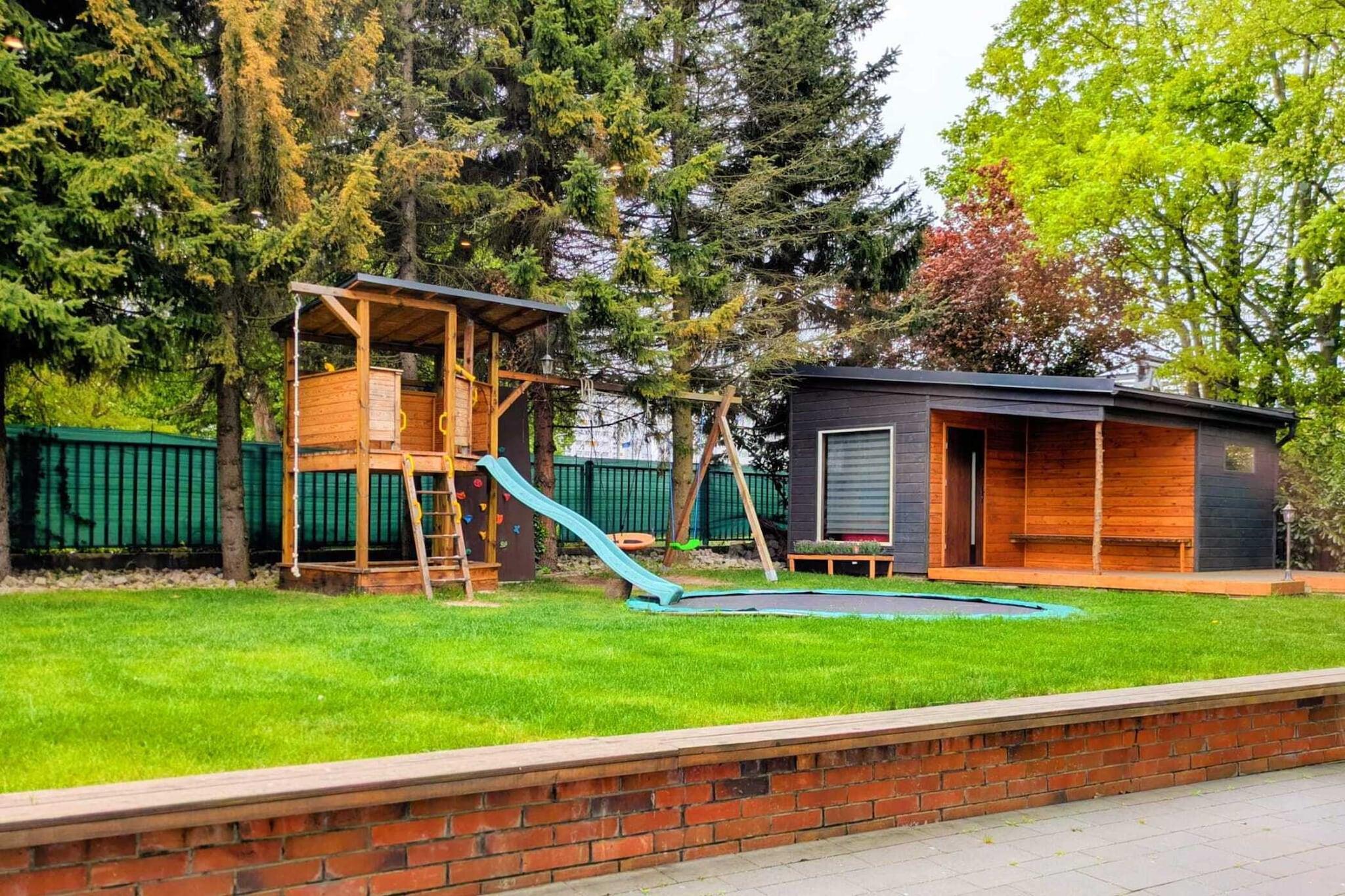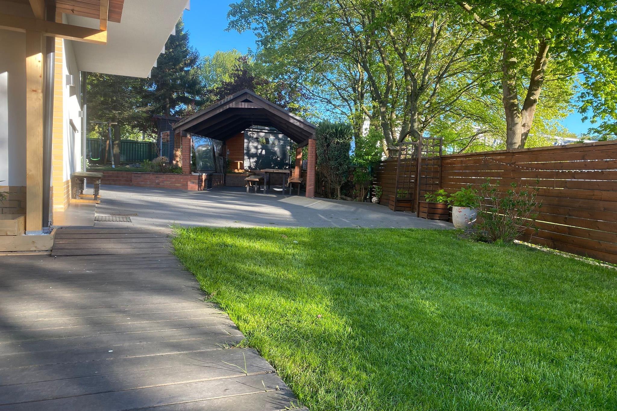 Ein gemütlicher Ferienort in unmittelbarer Nähe des Flusses Parseta. Ruhige Lage, nur wenige Schritte vom Zentrum entfernt. Zum Strand sind es 650 m. In der Nähe befindet sich der Fischmarkt, wo Sie frischen Fisch direkt vom Kutter kaufen können. Die komfortable, sehr geräumige Wohnung (Erdgeschoss) bietet Platz für bis zu 14 Personen. Sie besteht aus einem Wohnzimmer (großer Tisch, Fernseher, Videospielkonsole) und einer perfekt ausgestatteten Küche. Es gibt vier separate Schlafzimmer, zwei Badezimmer mit Duschen (eine Waschmaschine ist vorhanden) und ein separates WC. Eine überdachte Terrasse mit Gartenmöbeln und Liegestühlen ist ebenfalls vorhanden. Ein Spielplatz mit Trampolin ist ebenfalls vorhanden. Zentralheizung und WLAN sind verfügbar. Auf dem eingezäunten Gelände befinden sich eine Sauna (im Aufenthaltspreis inbegriffen) mit Badewanne zum Abkühlen, eine Sommerküche, ein Parkplatz und ein schöner Grillpavillon mit Grillzubehör. Vom Grundstück aus haben Sie direkten Zugang zum Flussufer, wo Sie auf Liegestühlen entspannen oder beim Angeln entspannen können. Allen Gästen der Anlage steht außerdem ein Ruderboot kostenlos zur Verfügung. Frühstück kann vor Ort erworben werden. Im Aufenthaltspreis enthalten sind: Bettwäsche, Handtücher, Strom- und Wasserverbrauch, Sauna, Endreinigung, Internet, Parkplatz, Kinderbett und Hochstuhl (Reservierung erforderlich) sowie Ruderboot. Die größte Attraktion des Kurorts Kolobrzeg ist der breite Sandstrand. Es gibt auch zahlreiche Spazierwege im Strandpark, entlang der Strandpromenade, der historischen Mole und in der Altstadt. Sehenswert sind der Leuchtturm, das Ozeanarium, der Seehafen und die Kathedrale. Familien mit Kindern empfehlen wir den Pomerania Fun Park. Dieser ganzjährig geöffnete Park befindet sich im Dorf Dygowo (ca. 15 km von Kolobrzeg entfernt).