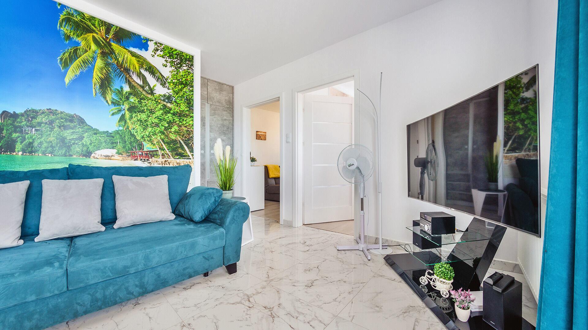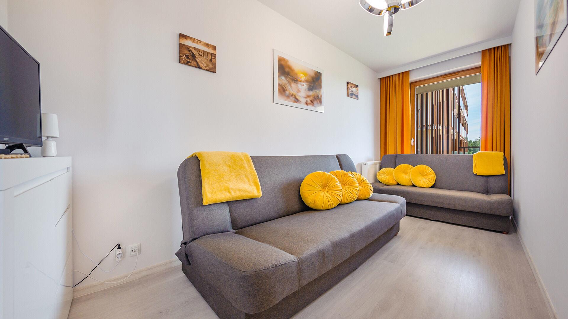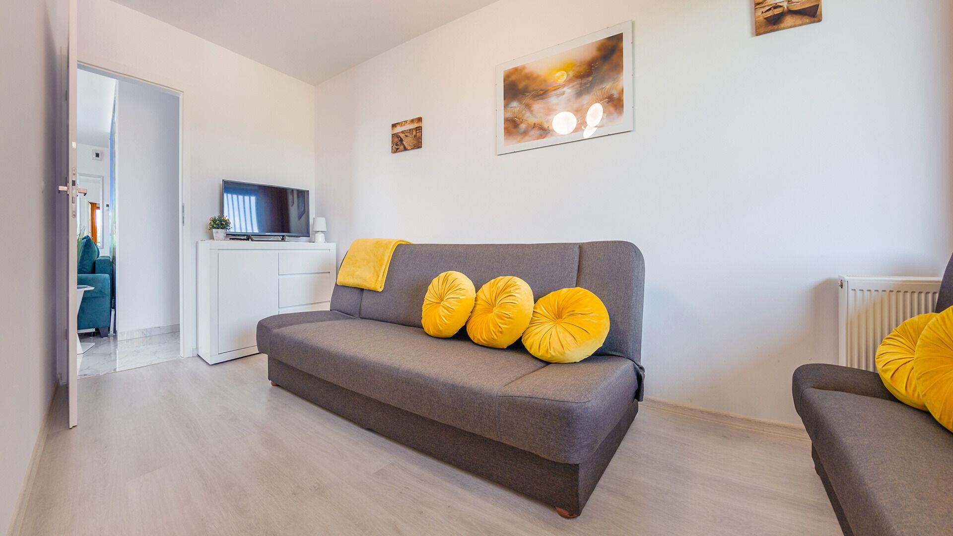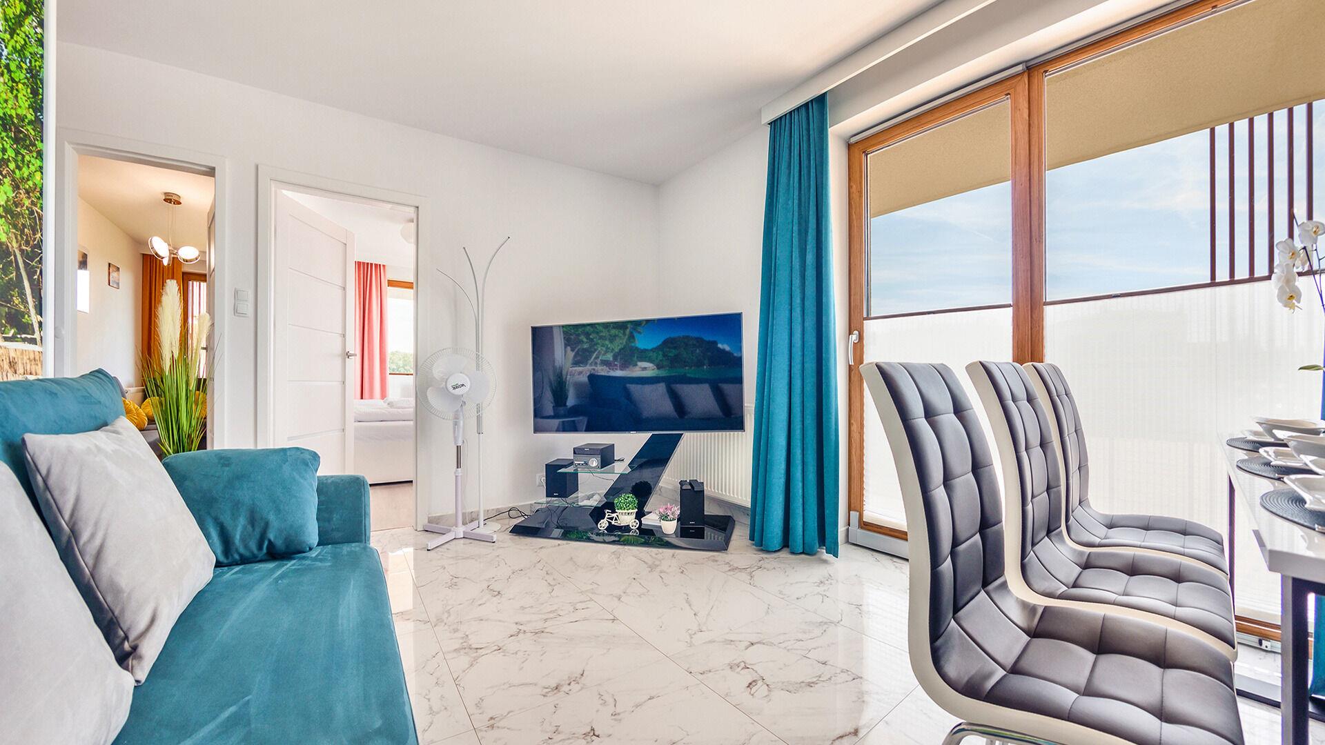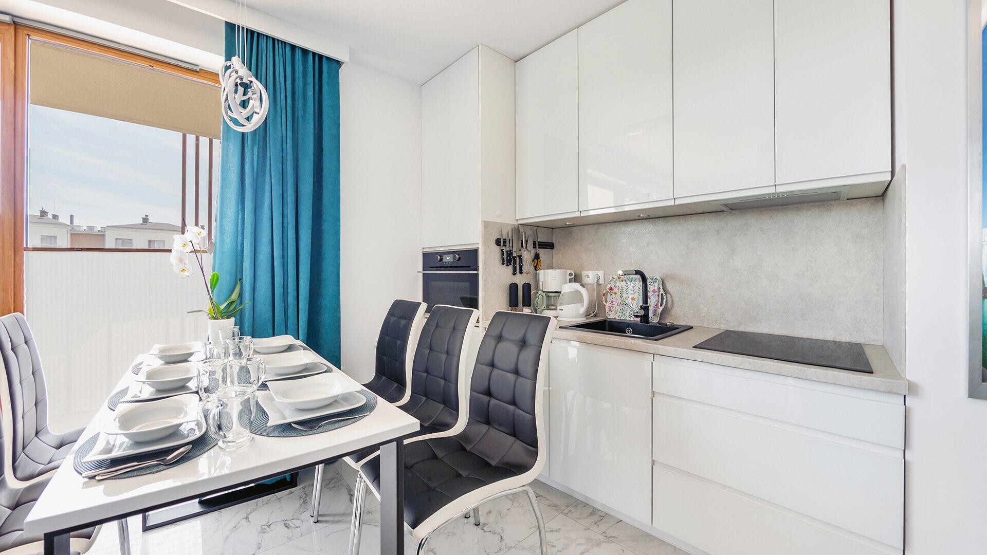 • Haustiere sind in der ausgewählten Wohnung erlaubt. Die Kosten für den Aufenthalt mit einem Haustier betragen 40 PLN pro Tag.