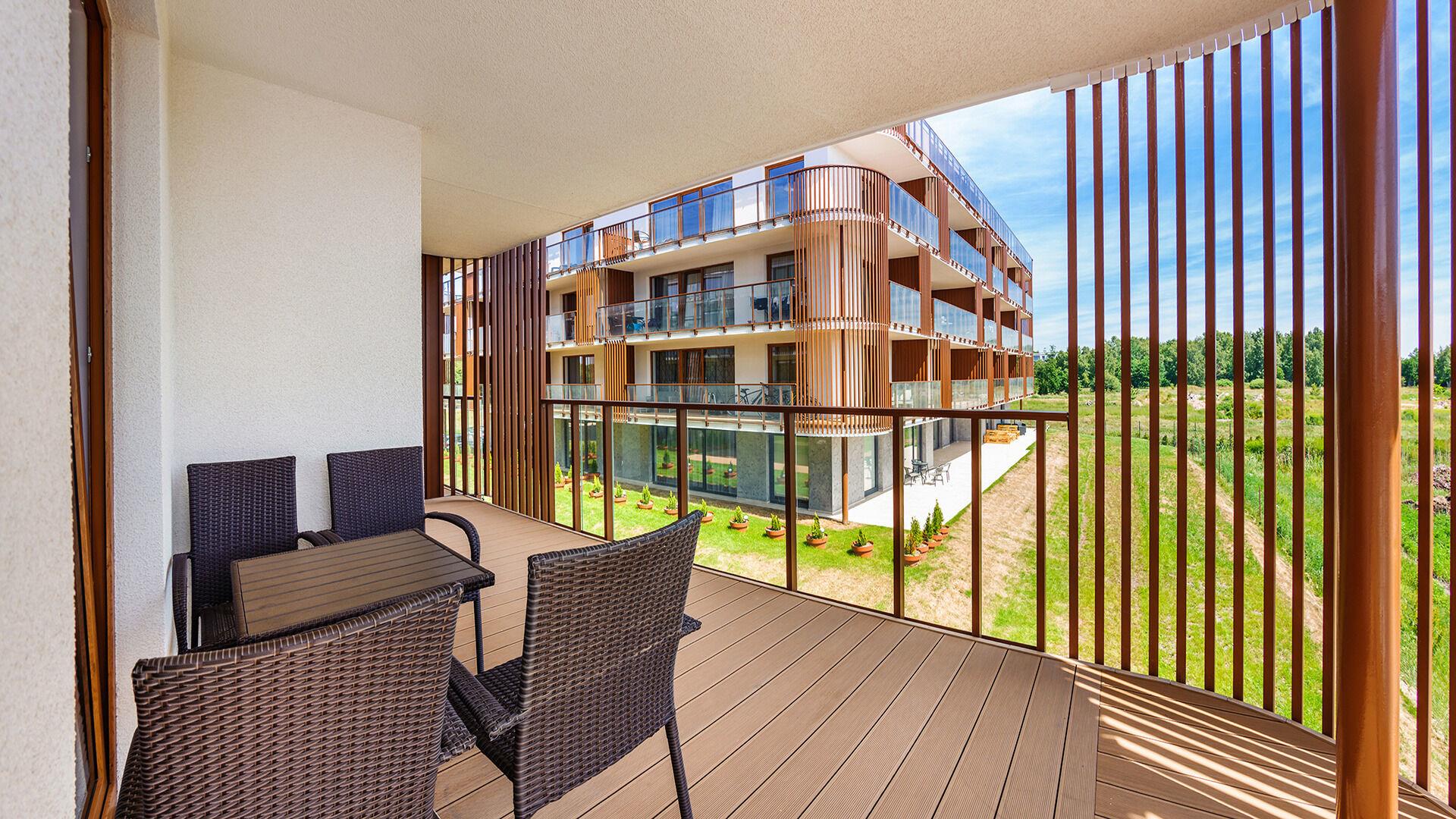 Die Apartments im Objekt Resorts Kolobrzeg befinden sich im westlichen Teil von Kolobrzeg, abseits des städtischen Trubels, umgeben vom Grün des NATURA-2000-Parks. Diese Lage garantiert saubere Luft, malerische Ausblicke und direkten Kontakt zur Natur. Die Plazowa-Straße mit ihren breiten Gehwegen und Radwegen ist ein Teil der R10-Fahrradroute. Ein fünfminütiger Spaziergang über einen direkten Zugang zum Meer reicht aus, um den breiten, sandigen „Weststrand” zu erreichen; ganz in der Nähe befindet sich auch ein Hundestrand. Alle Apartments sind hochwertig ausgestattet und verfügen über funktionale, voll ausgestattete Küchenzeilen sowie geräumige Terrassen mit Blick auf den Innenhof oder das Grün des NATURA-2000-Parks. Vor dem Gebäude gibt es einen öffentlichen, kostenpflichtigen Stadtparkplatz (begrenzte Anzahl an Stellplätzen). Auf dem Gelände stehen ein nummerierter Außenparkplatz sowie Parkplätze in der Tiefgarage zur Verfügung, die den meisten Apartments zugeordnet sind und gegen Aufpreis genutzt werden können. Im Objekt befindet sich ein Schwimmbad, das täglich von 10:00 bis 21:00 Uhr geöffnet ist, sowie eine Sauna, die täglich von 16:00 bis 21:00 Uhr geöffnet ist. Der Pool befindet sich im Gebäude A; aus Gebäude B gibt es keinen direkten Zugang zu Gebäude A.