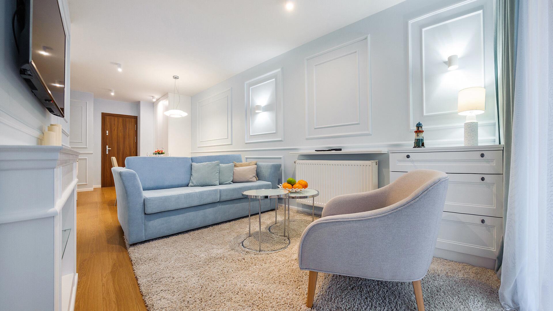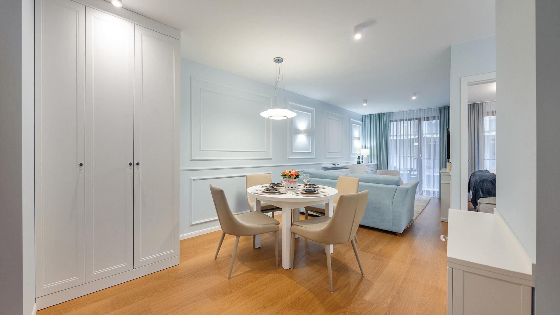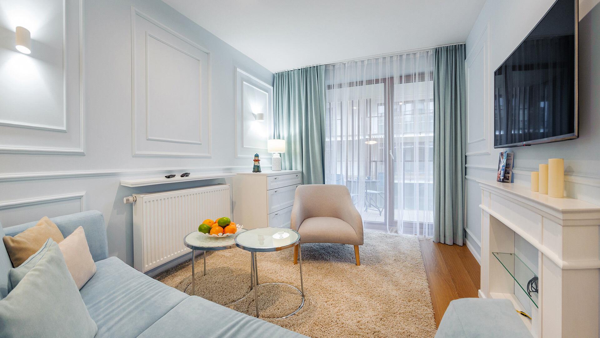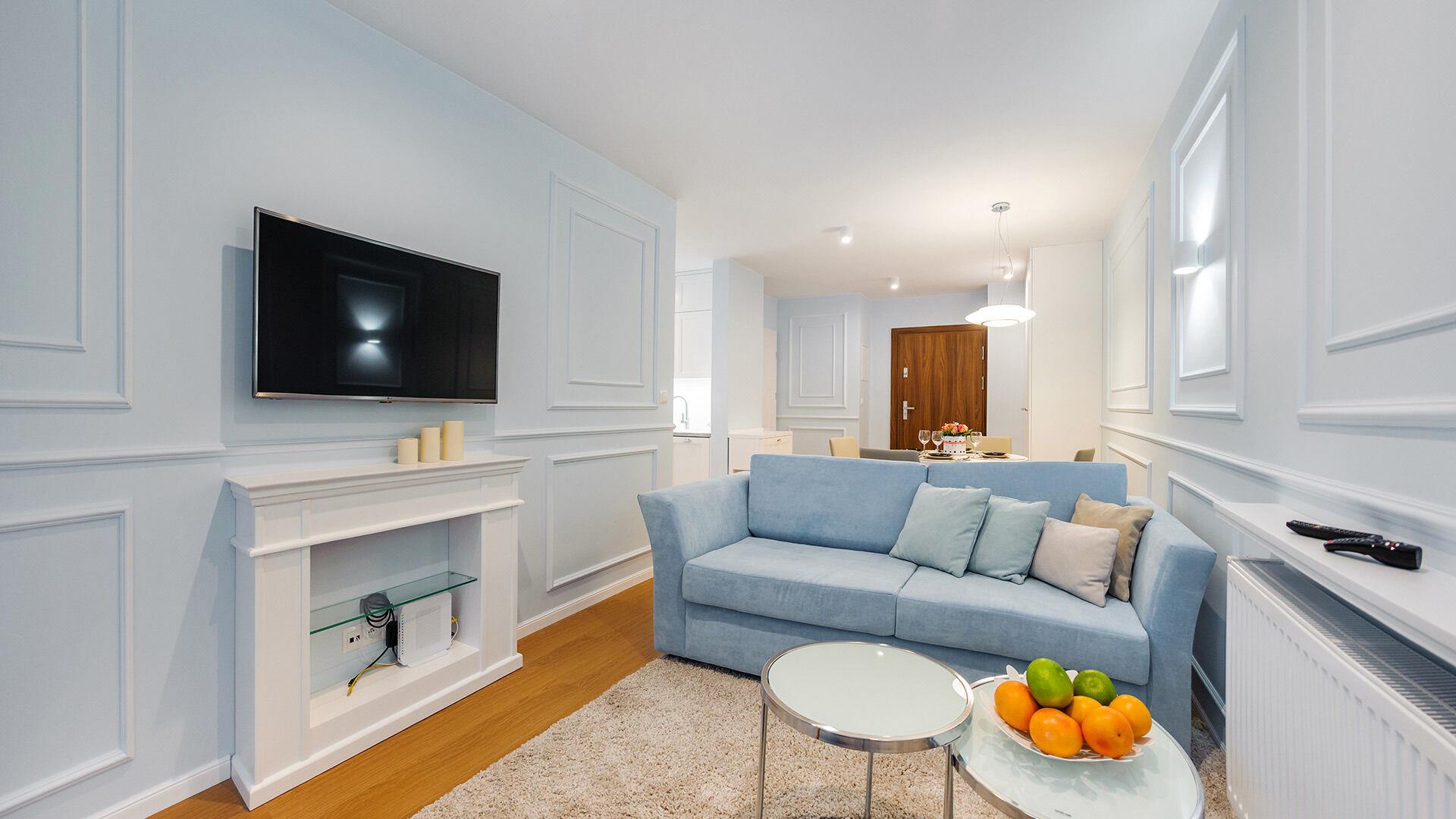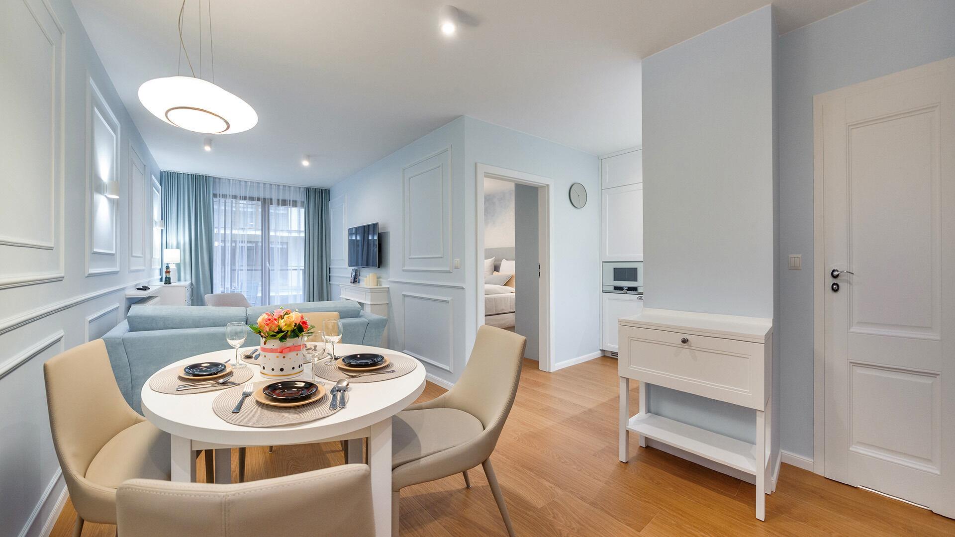 • Haustiere sind in der ausgewählten Wohnung erlaubt. Die Kosten für den Aufenthalt mit einem Haustier betragen 40 PLN pro Tag.